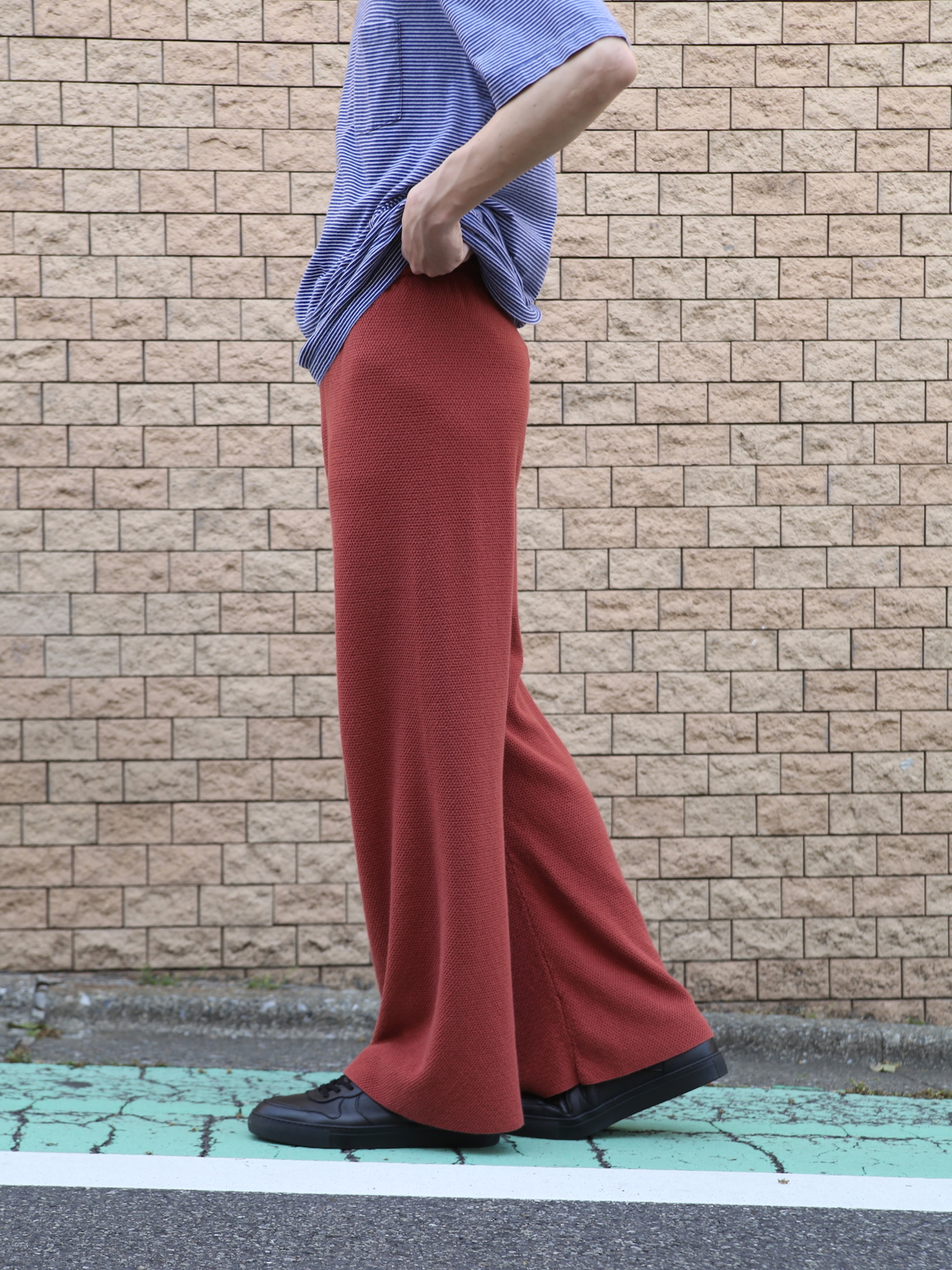 <4.22 UP> 2000s "unknown" cotton / acrylic kanoko knit pants -TERRACOTTA-