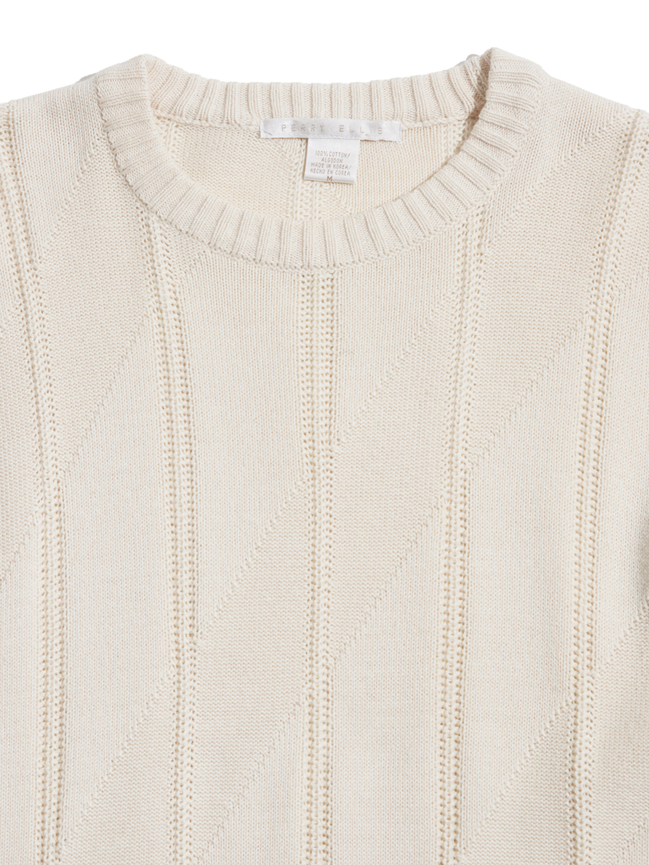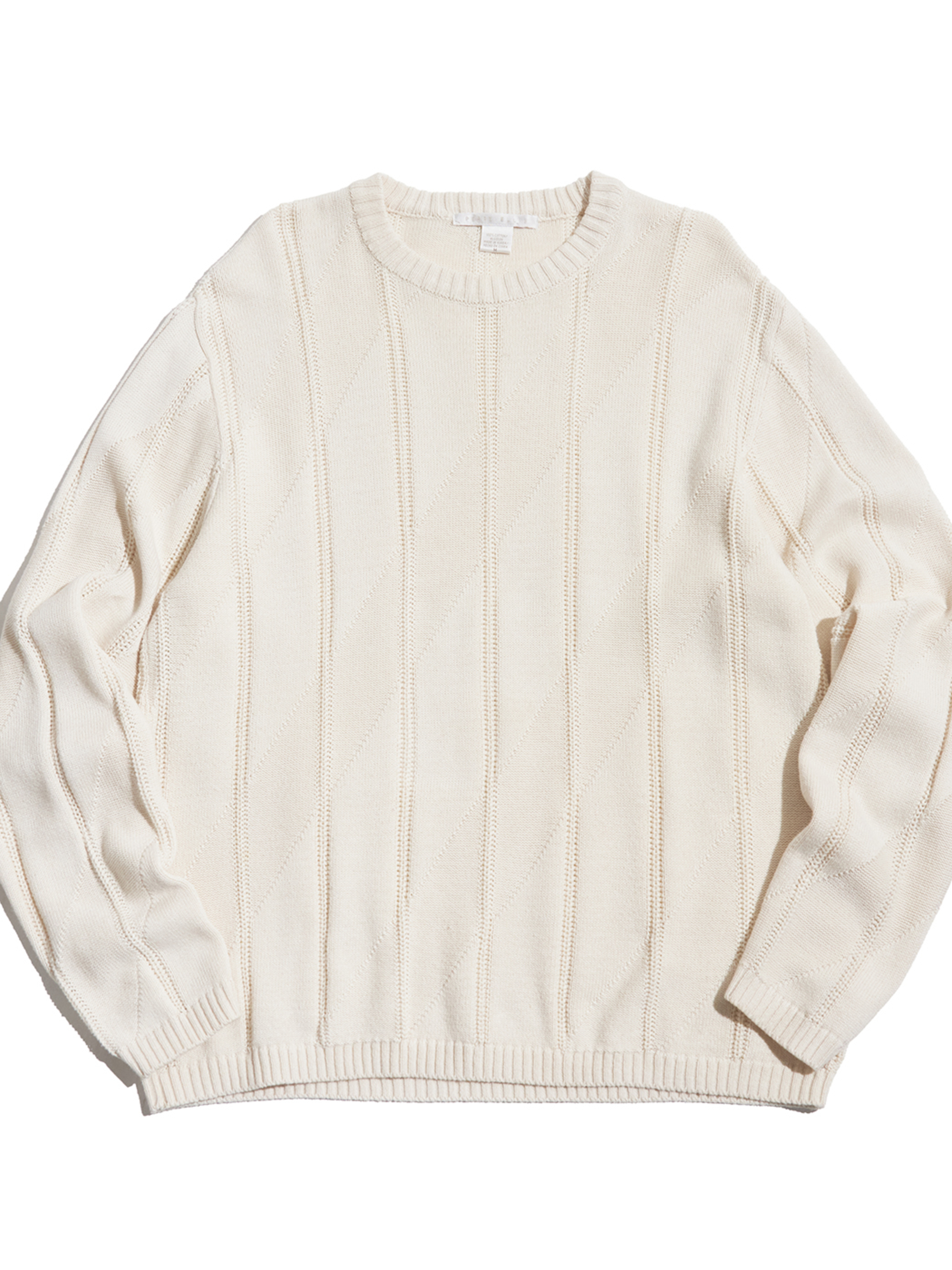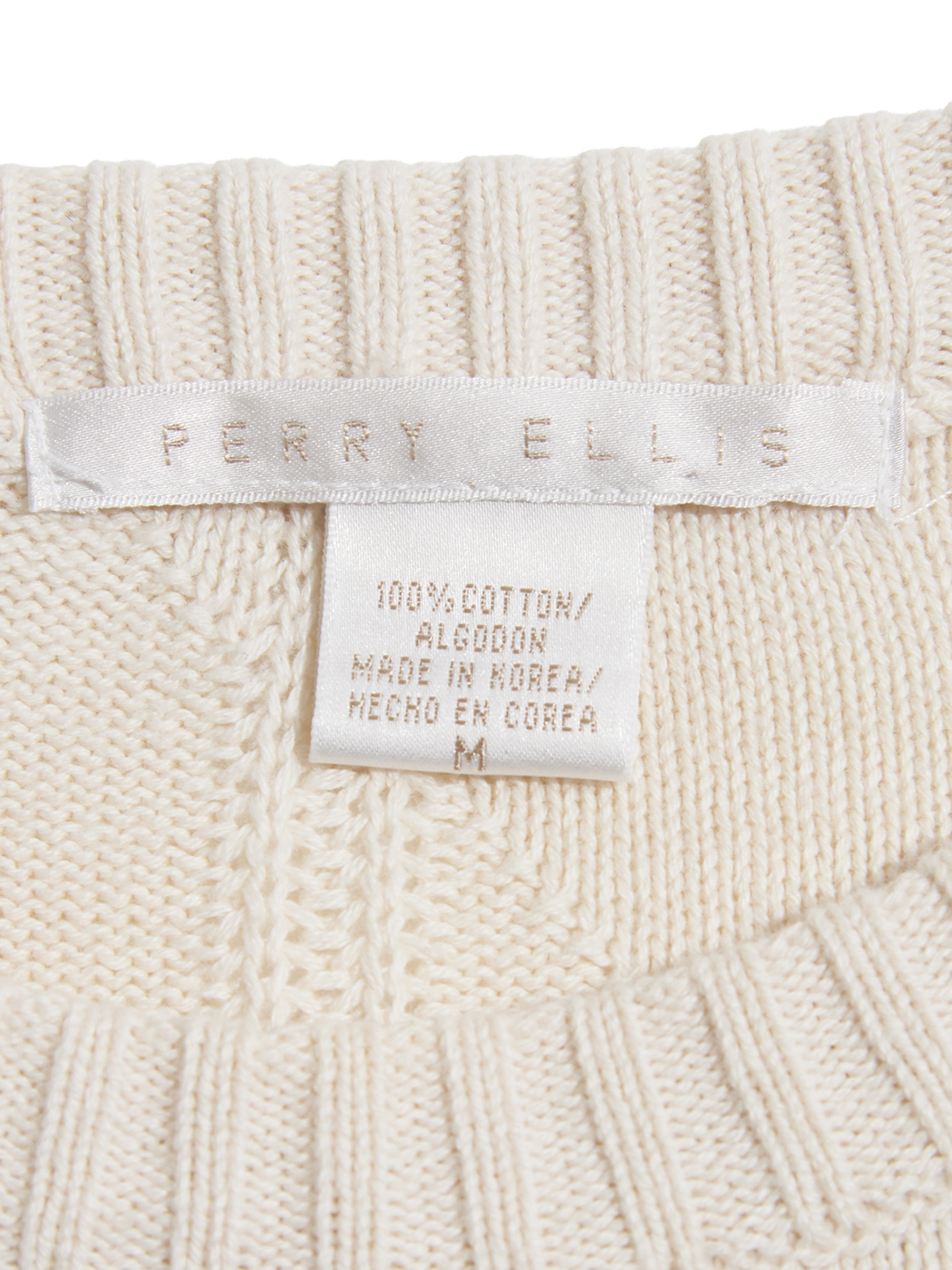 <4.24 UP> 2000s "PERRY ELLIS" cotton crew neck cable knit sweater -IVORY-