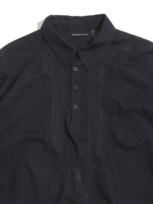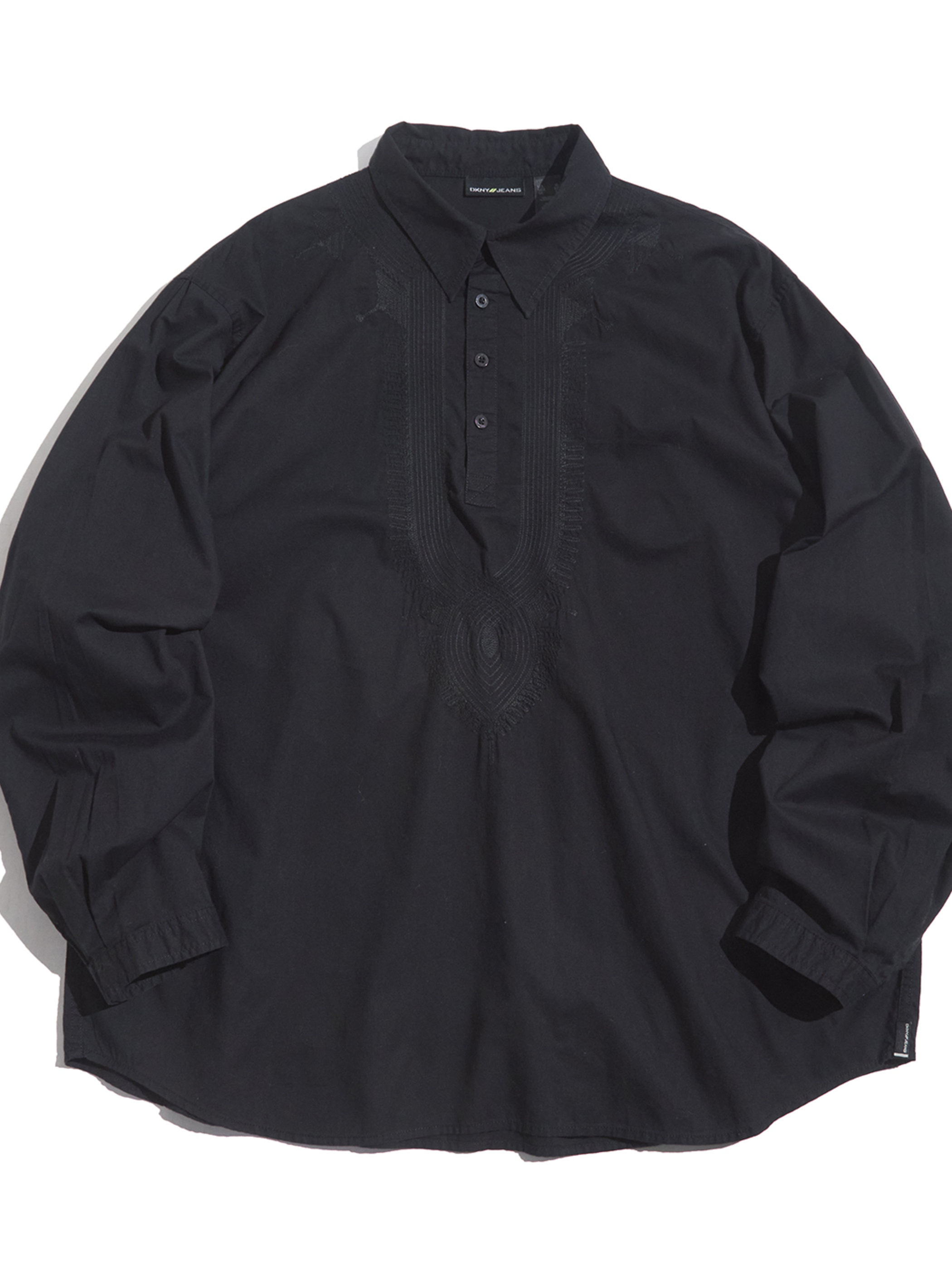 <4.24 UP> 2000s "DKNY JEANS" embroidery design cotton pullover shirt -BLACK-