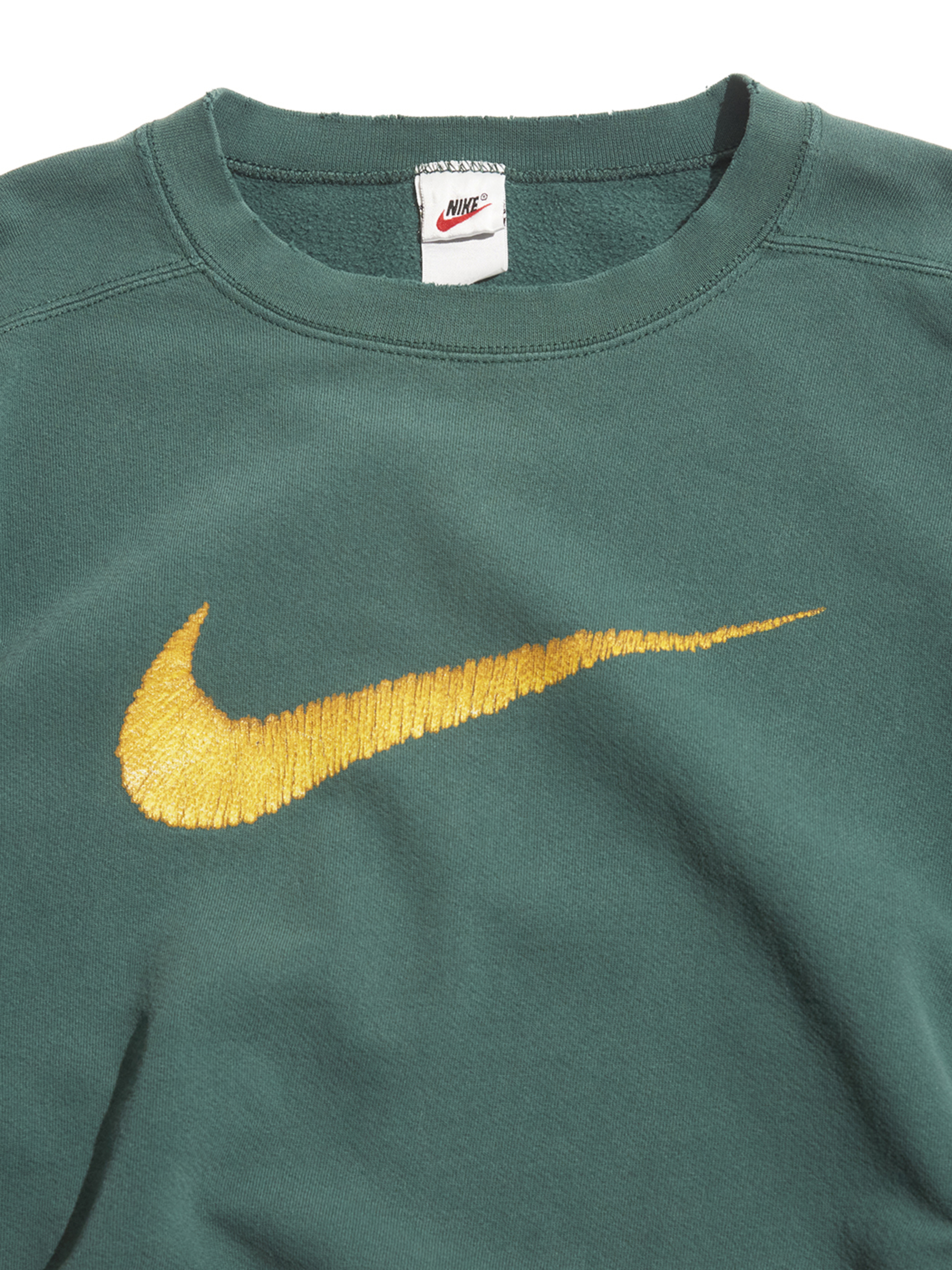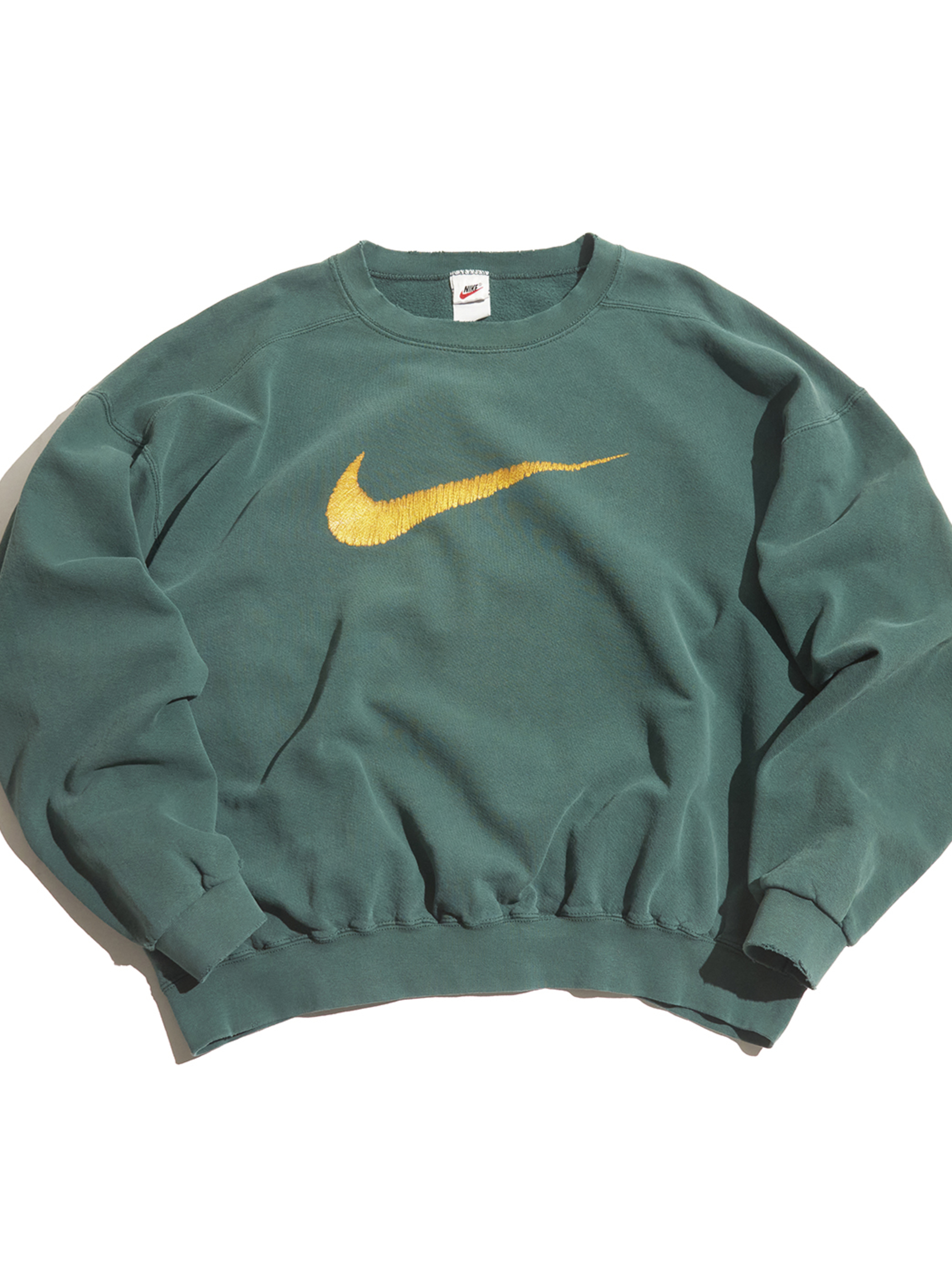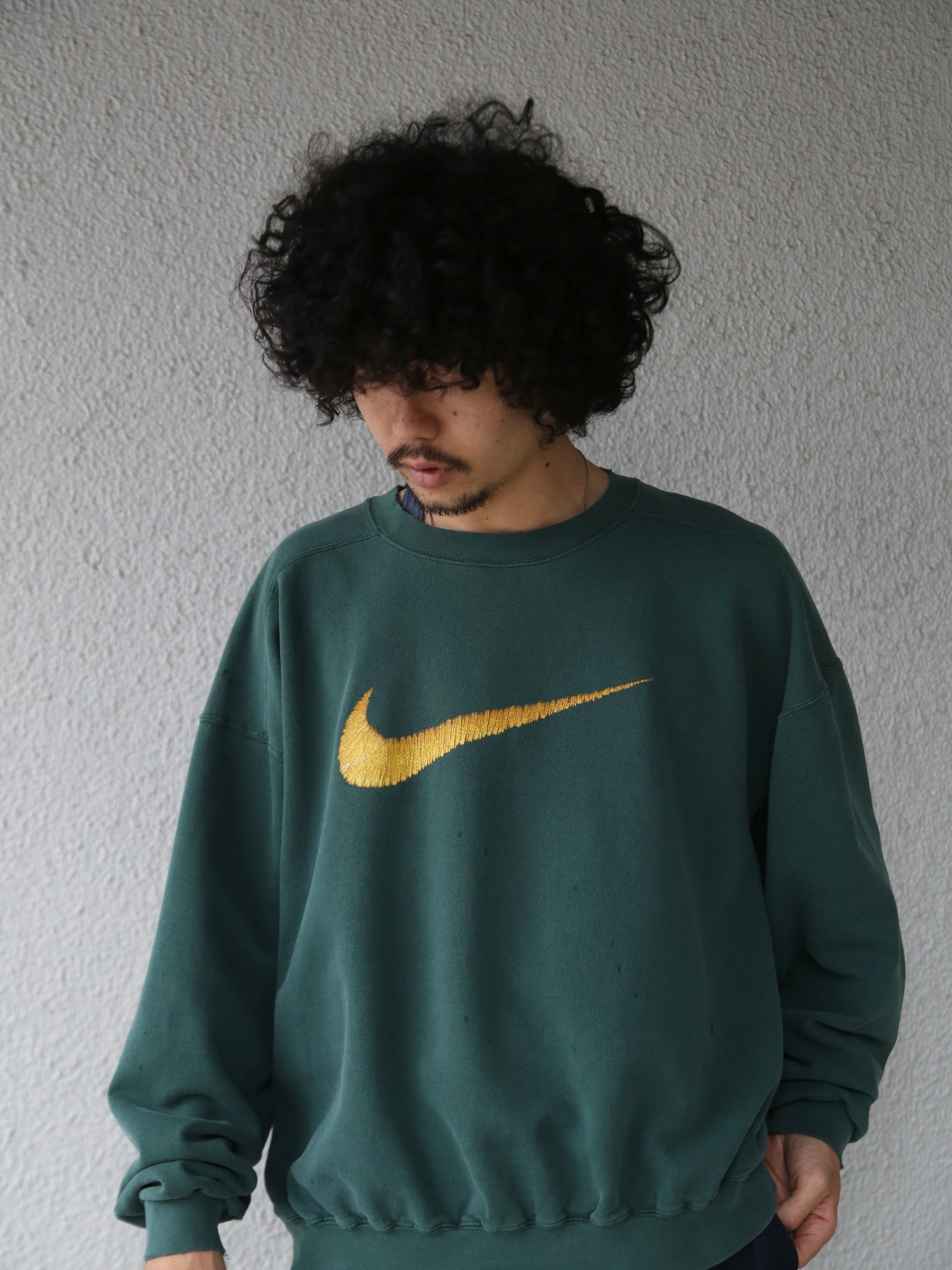 全体的にフェード感があり、ネックリブ、袖リブ、袖口付近にスレによる小穴などダメージがございます。