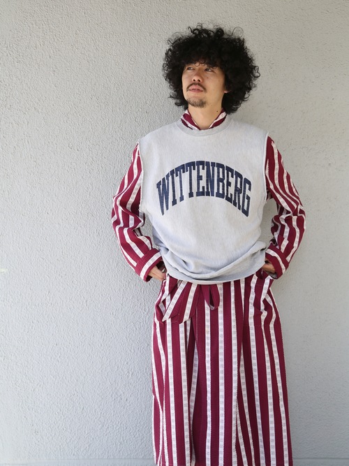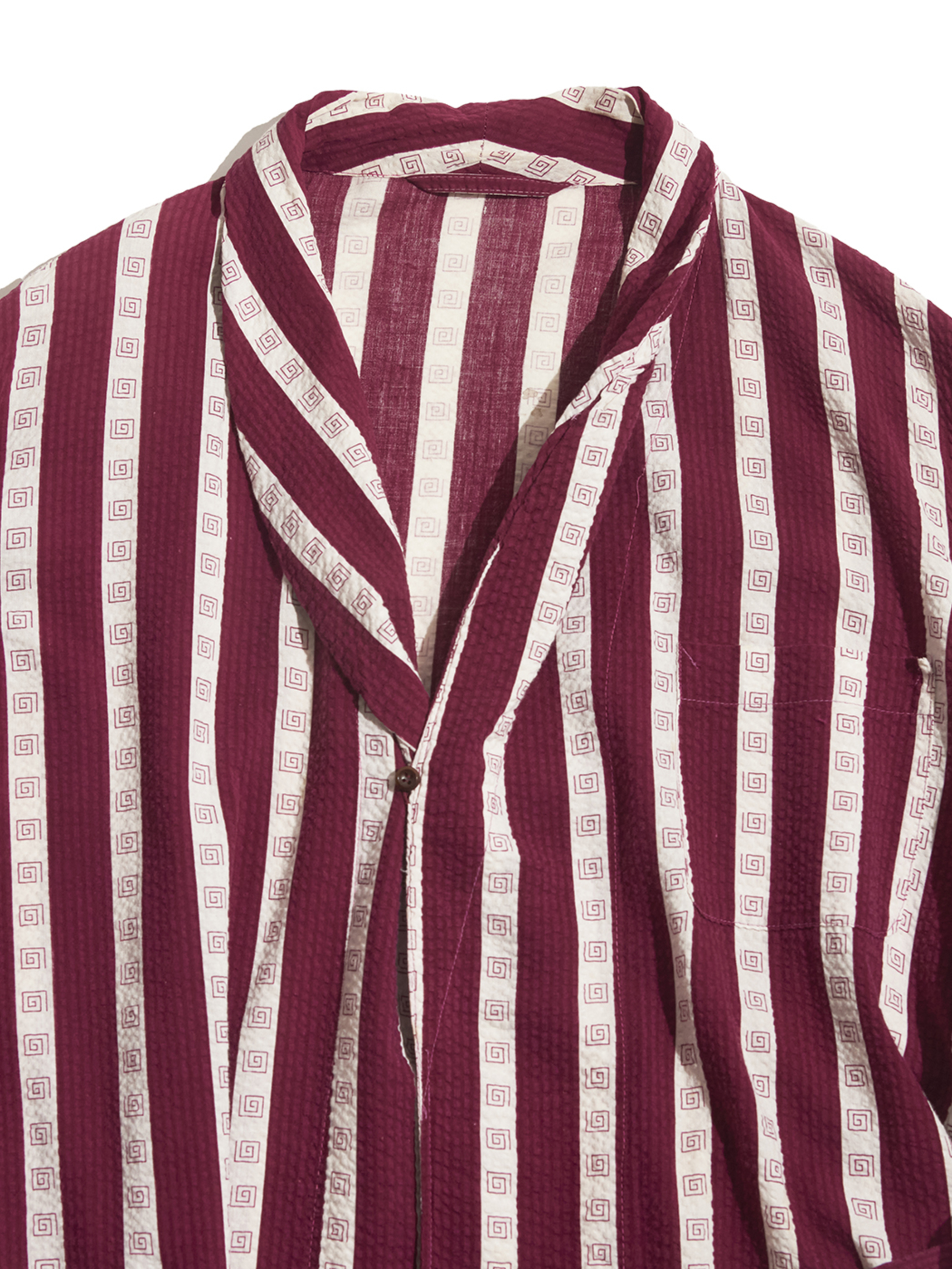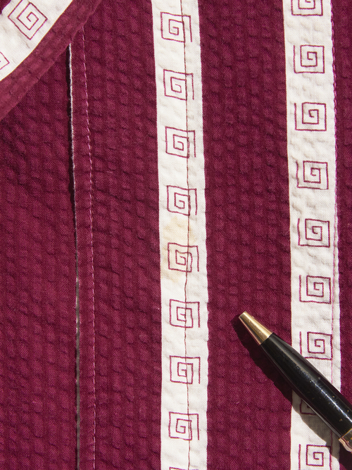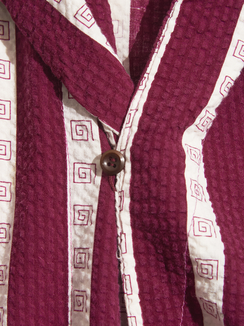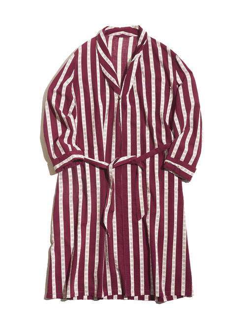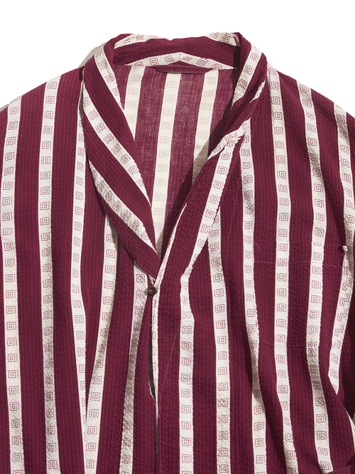 <Re-make> 1940s "unknown" customized cotton seersucker pullover gown -BURGUNDY/WHITE-