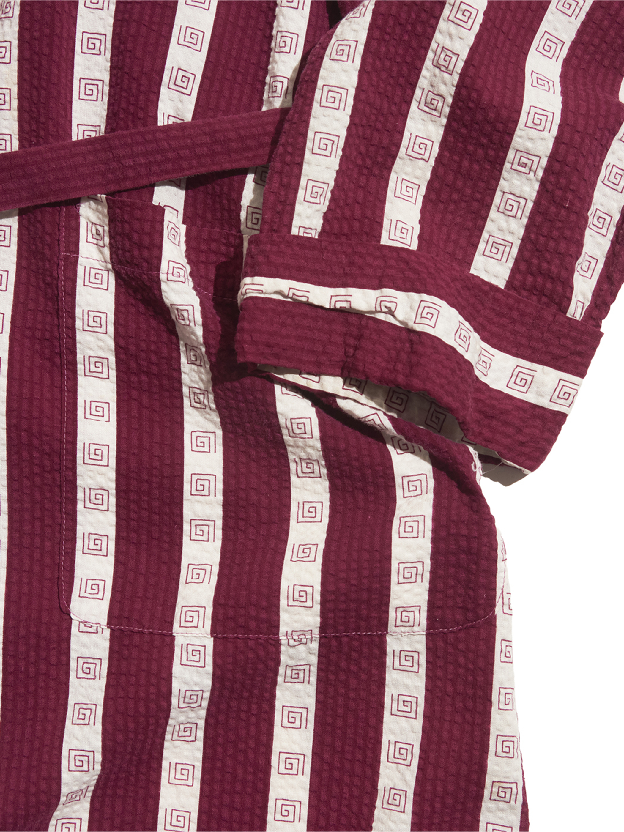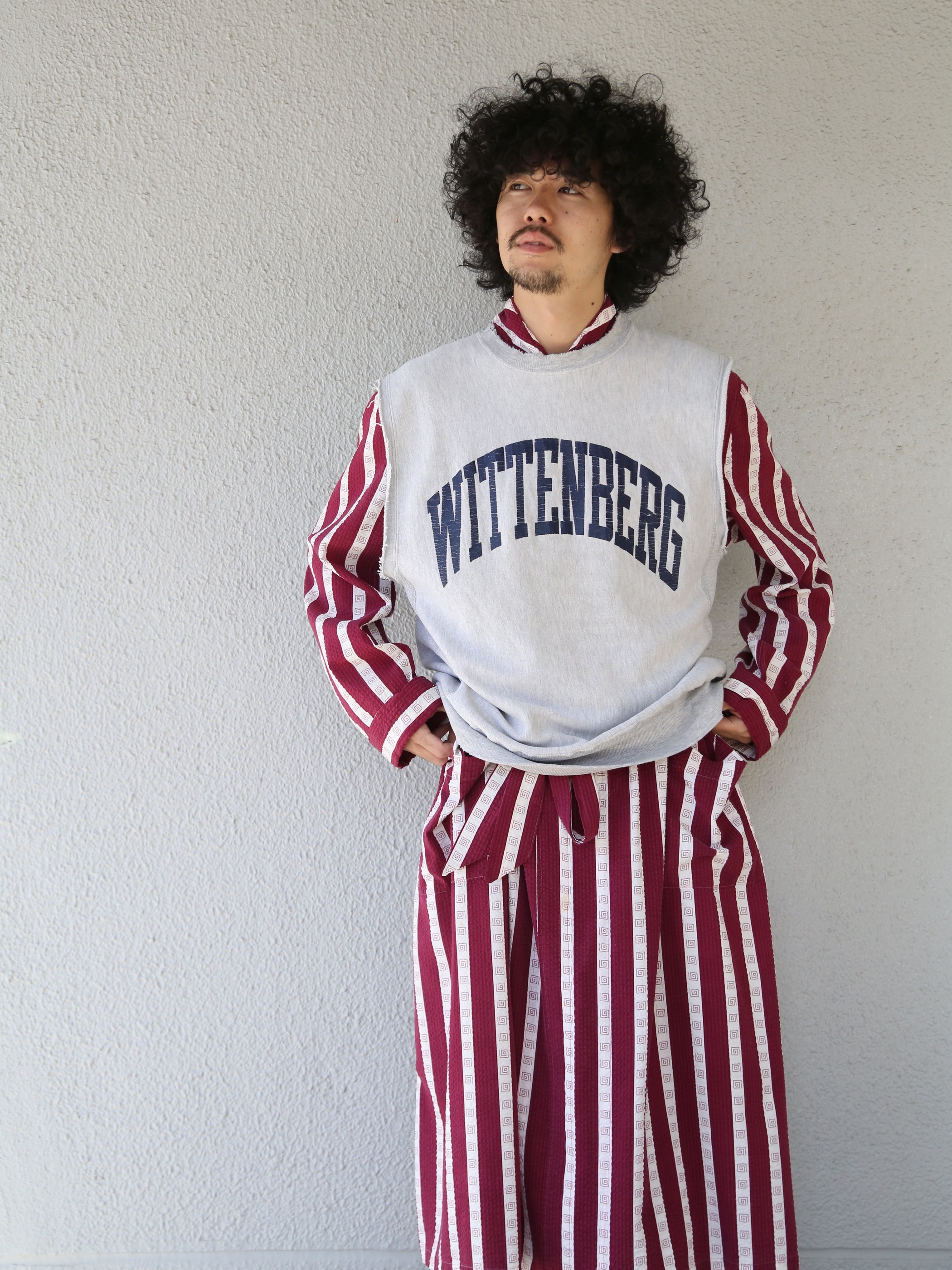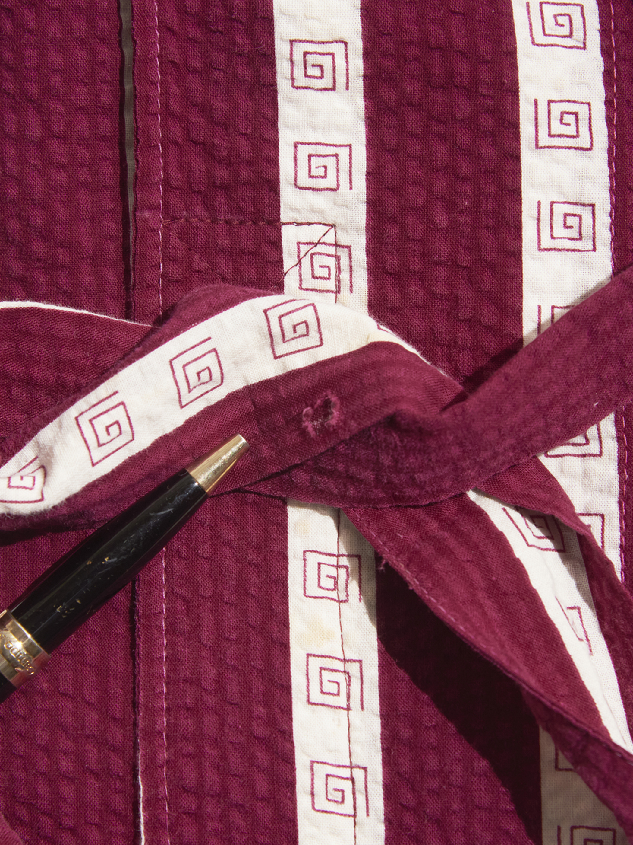 <Re-make> 1940s "unknown" customized cotton seersucker pullover gown -BURGUNDY/WHITE-