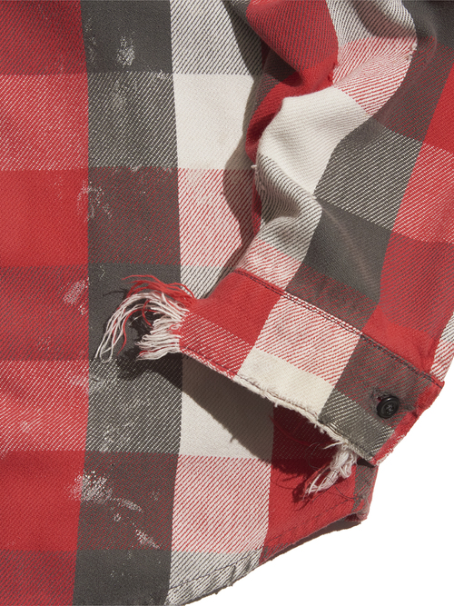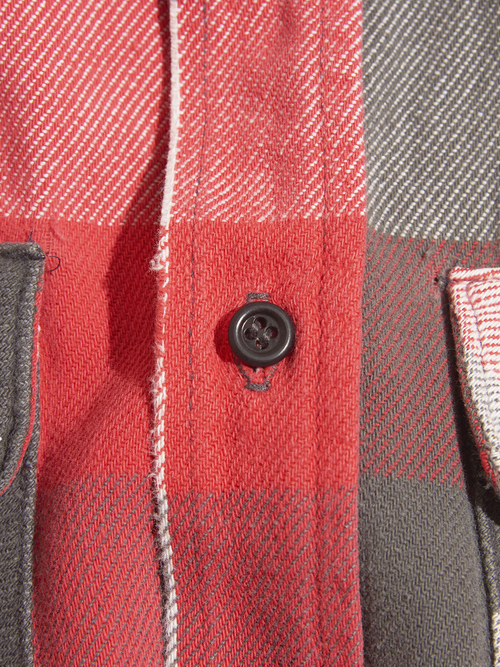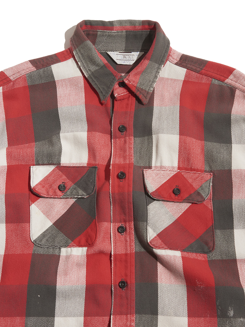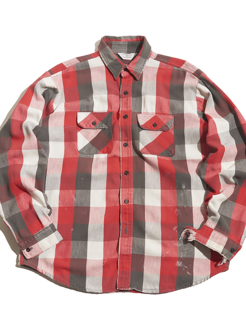 <Coming Soon> 1980s "FIVE BROTHER" distressed cotton flannel check shirt -RED/GREY-