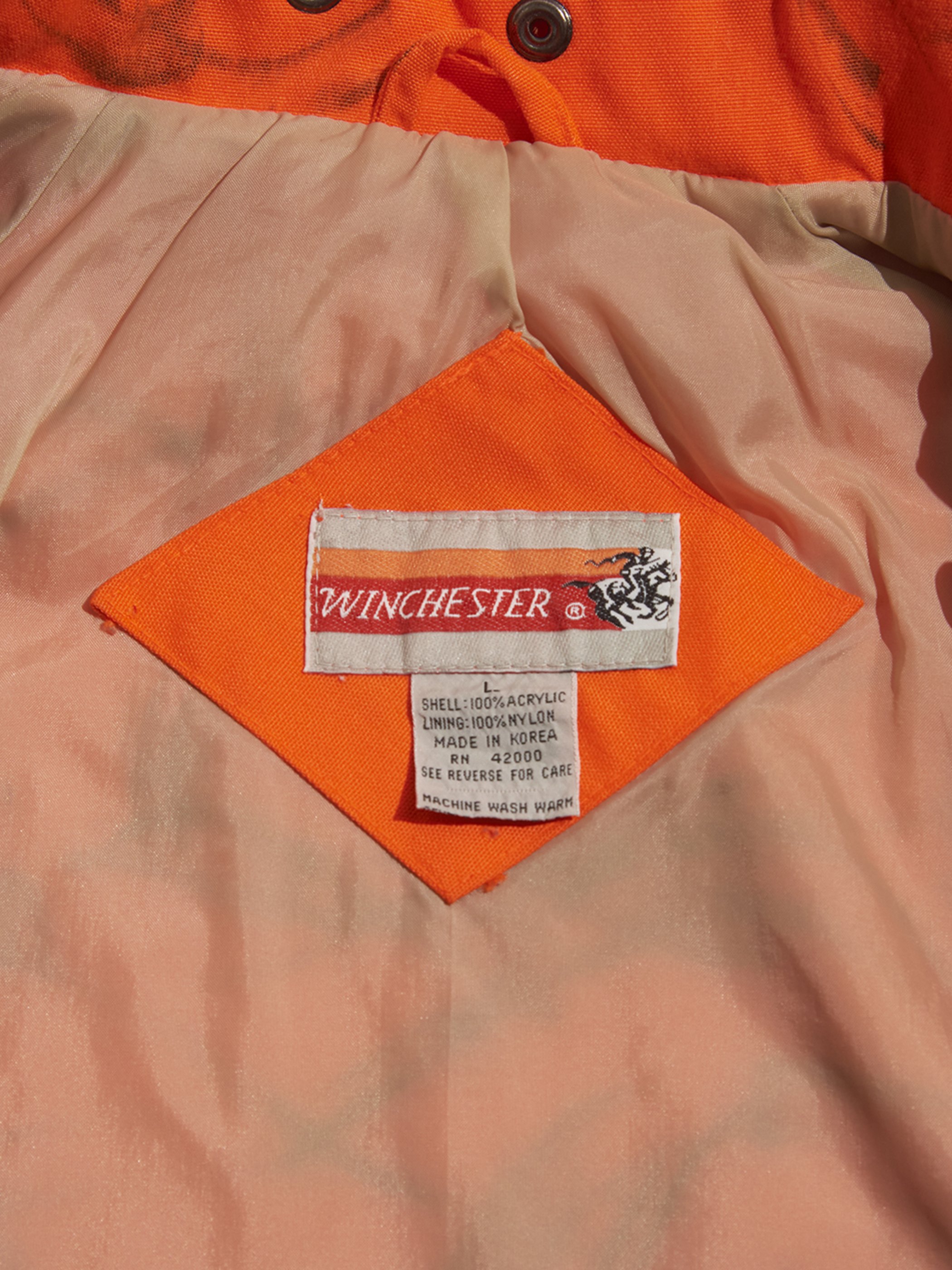 <Coming Soon> 1990s "WINCHESTER" hand painted? acrylic hunting jacket -NEON ORANGE-