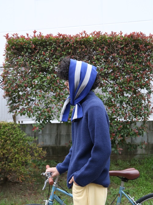 <Coming Soon> 1970-80s "unknown" UK school striped short muffler -BLUE/LIGHT GREY-