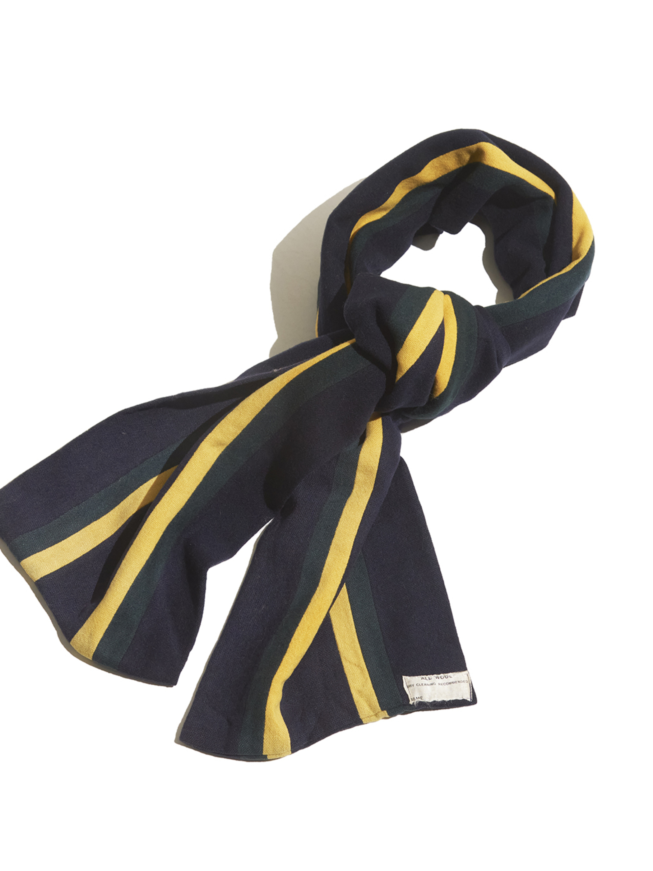 <Coming Soon> 1980s "unknown" UK school striped muffler -DARK NAVY/GREEN/YELLOW-