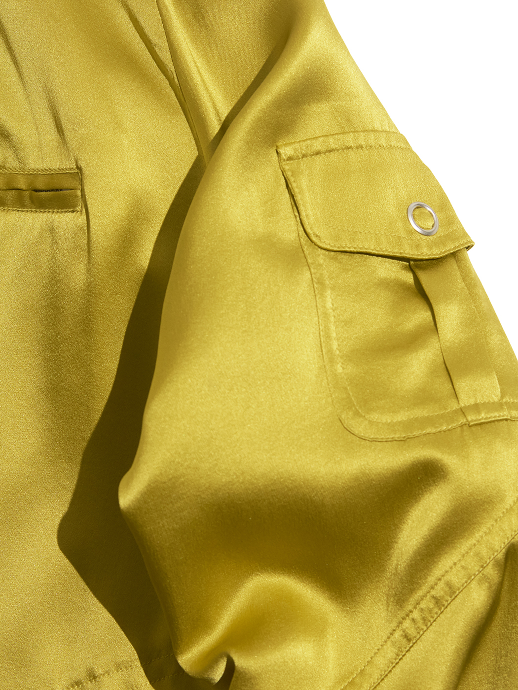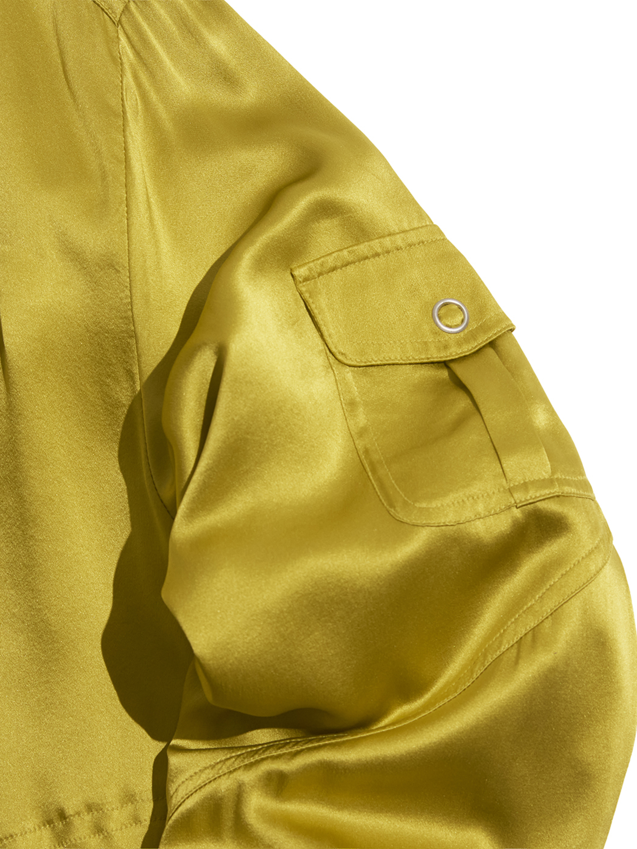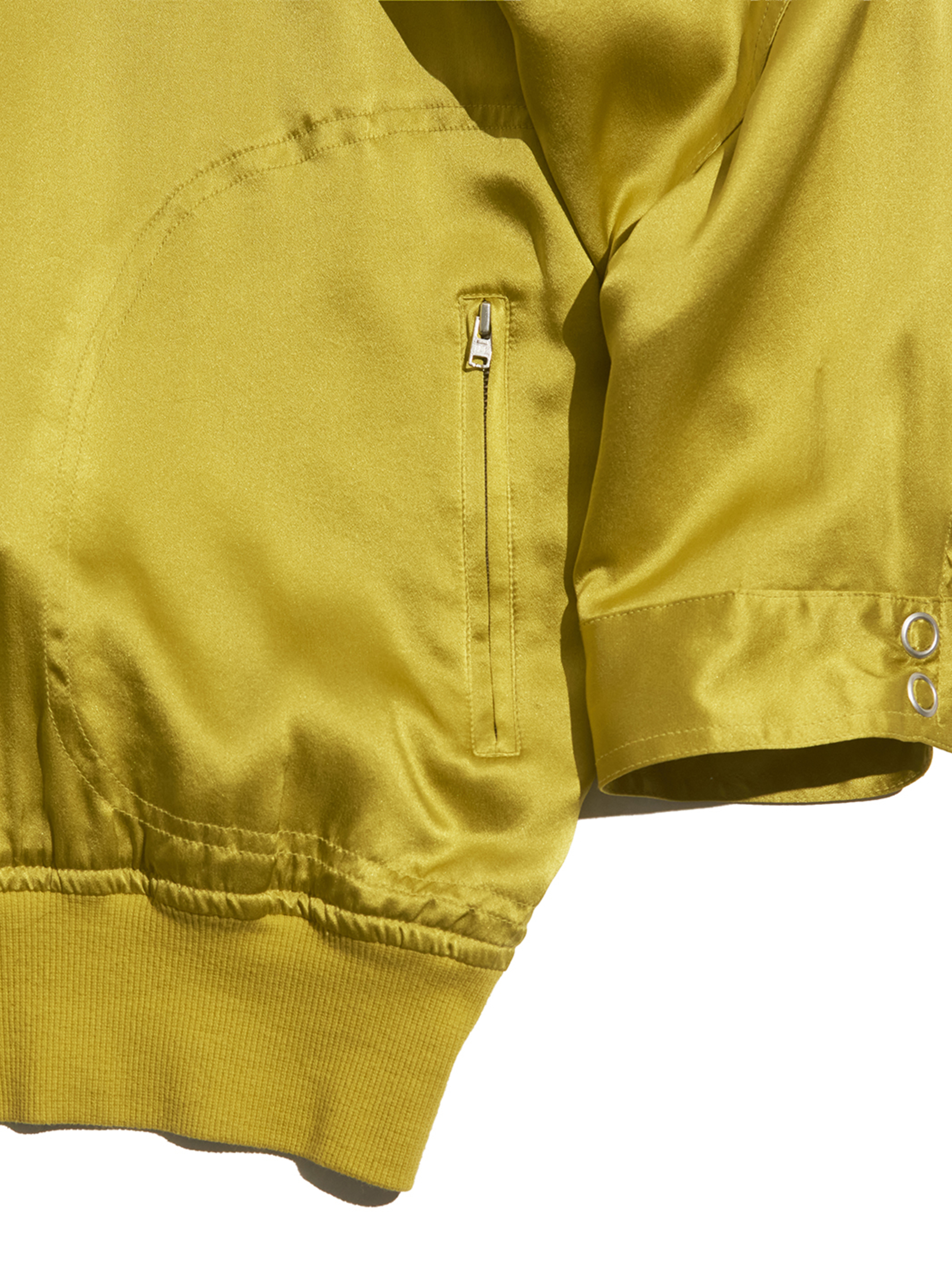 光沢感が魅力のシルクサテン生地を使用したライトブルゾン。
