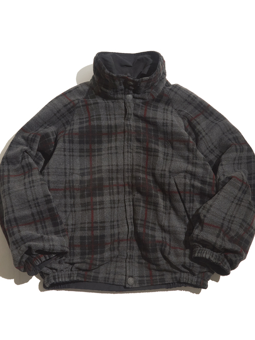 <11.5up> 1990s "NAUTICA" cotton / nylon × fleece reversible jacket -BLACK/CHARCOAL-