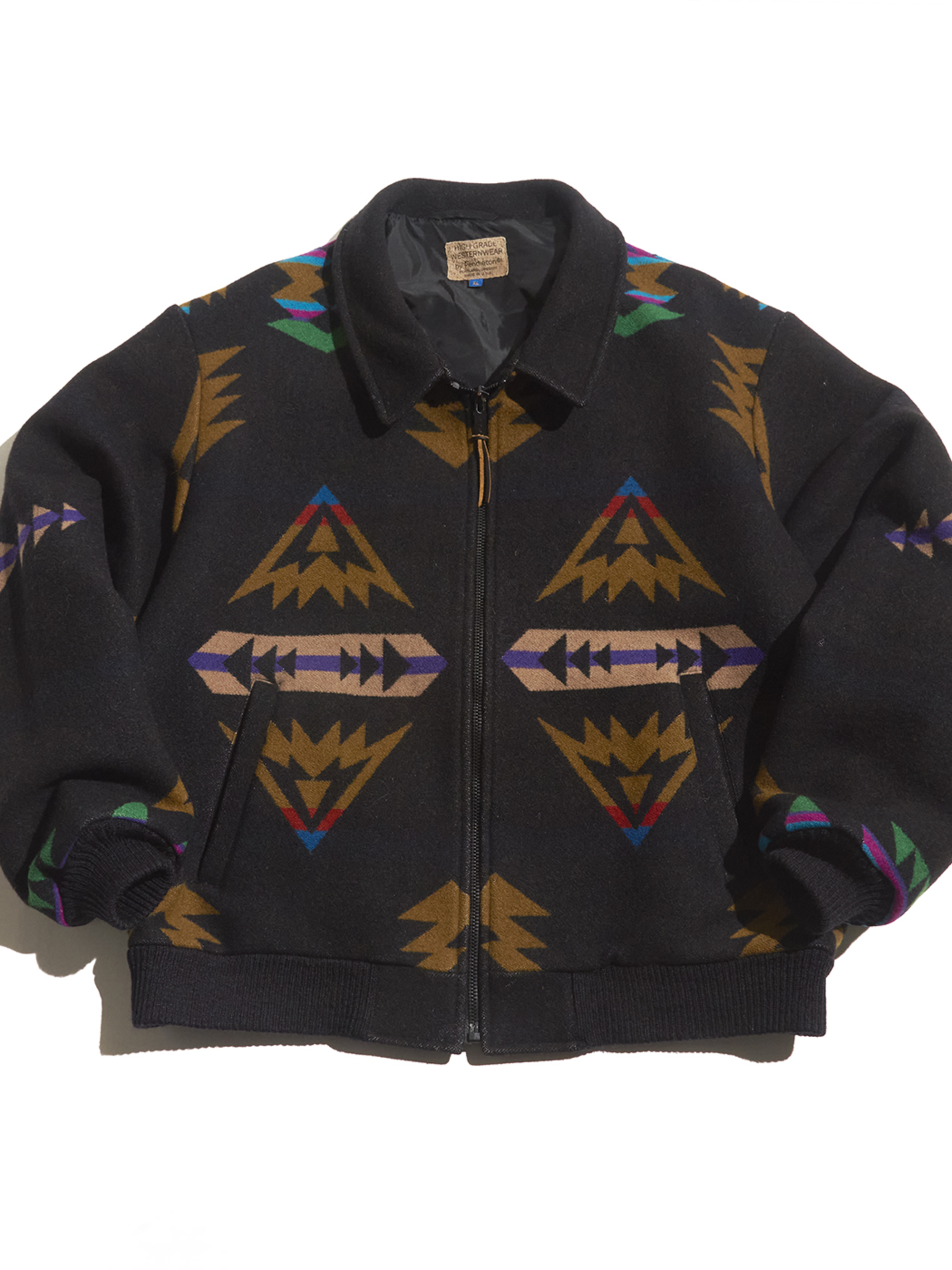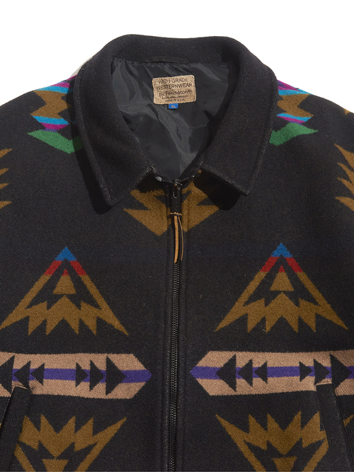 <SOLD OUT> 1980s "PENDLETON" wool melton native pattern zip up blouson -BLACK-
