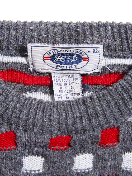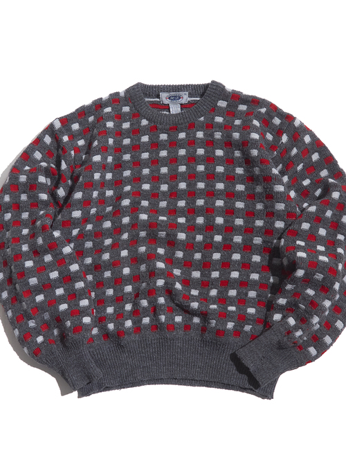 <11.19 up> 1990s "HEMING WAY" acrylic / polyester waffle knit sweater -MIX GREY-