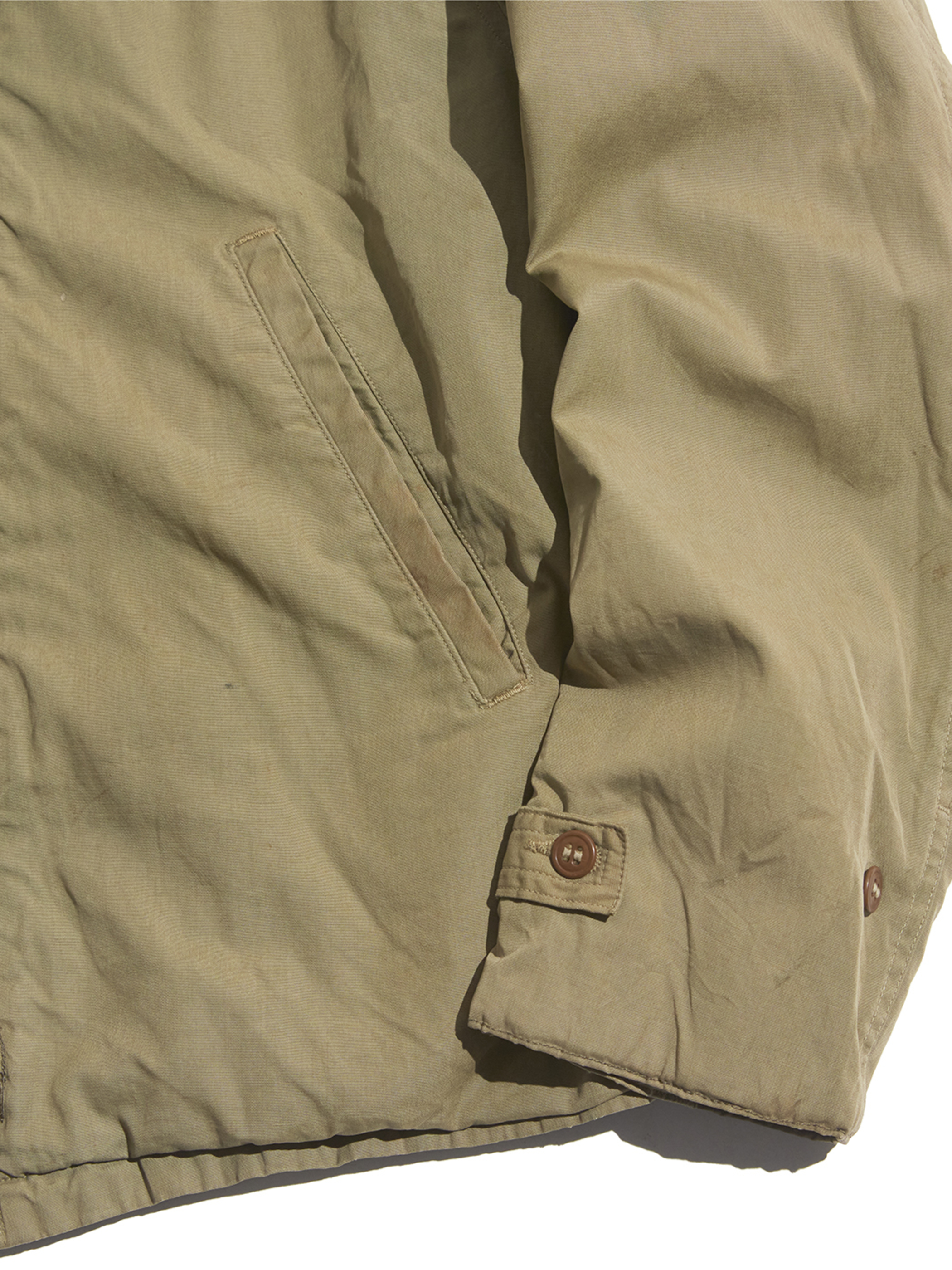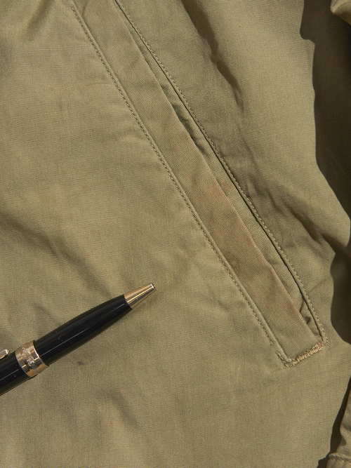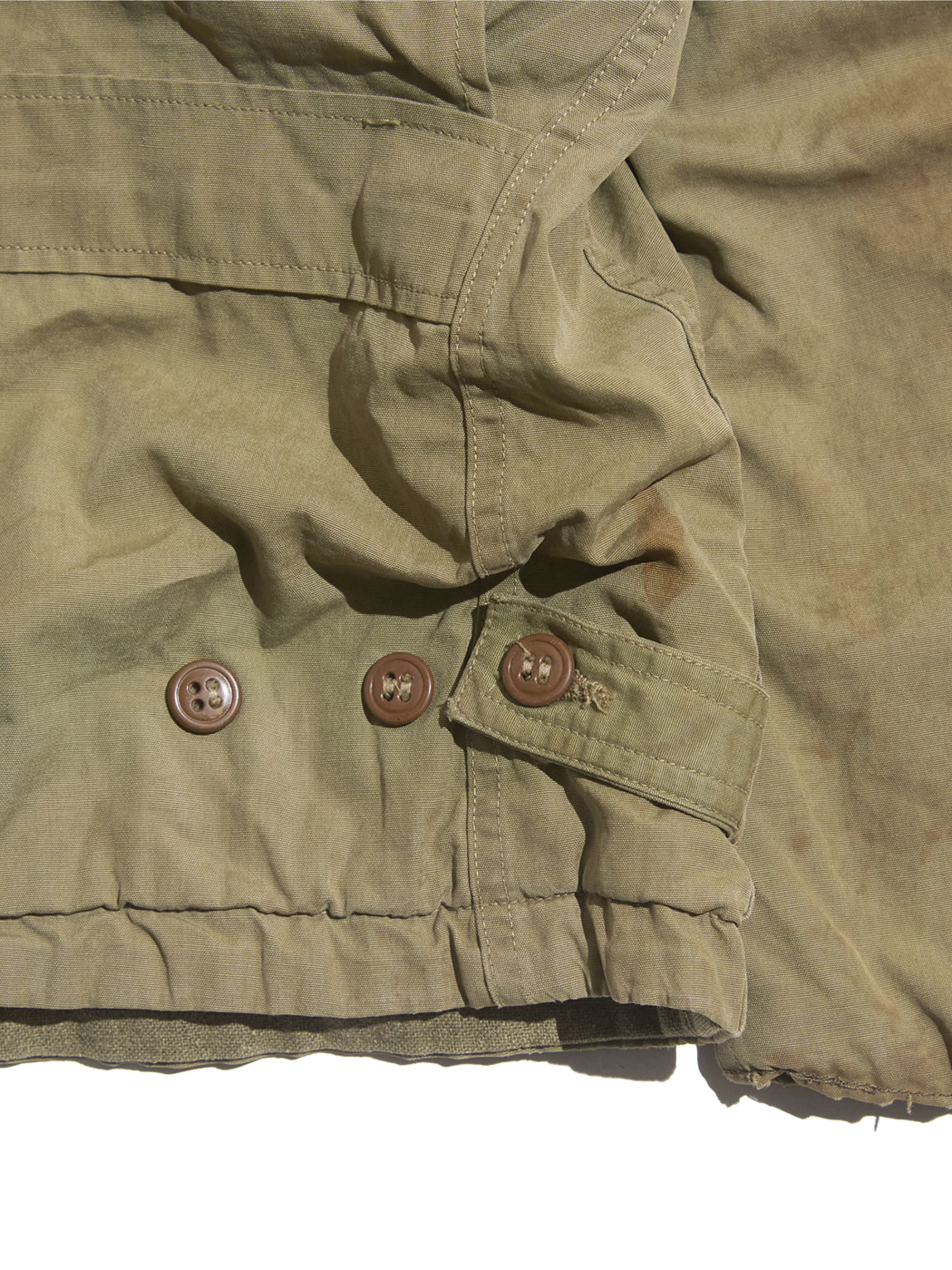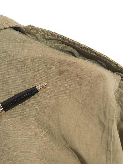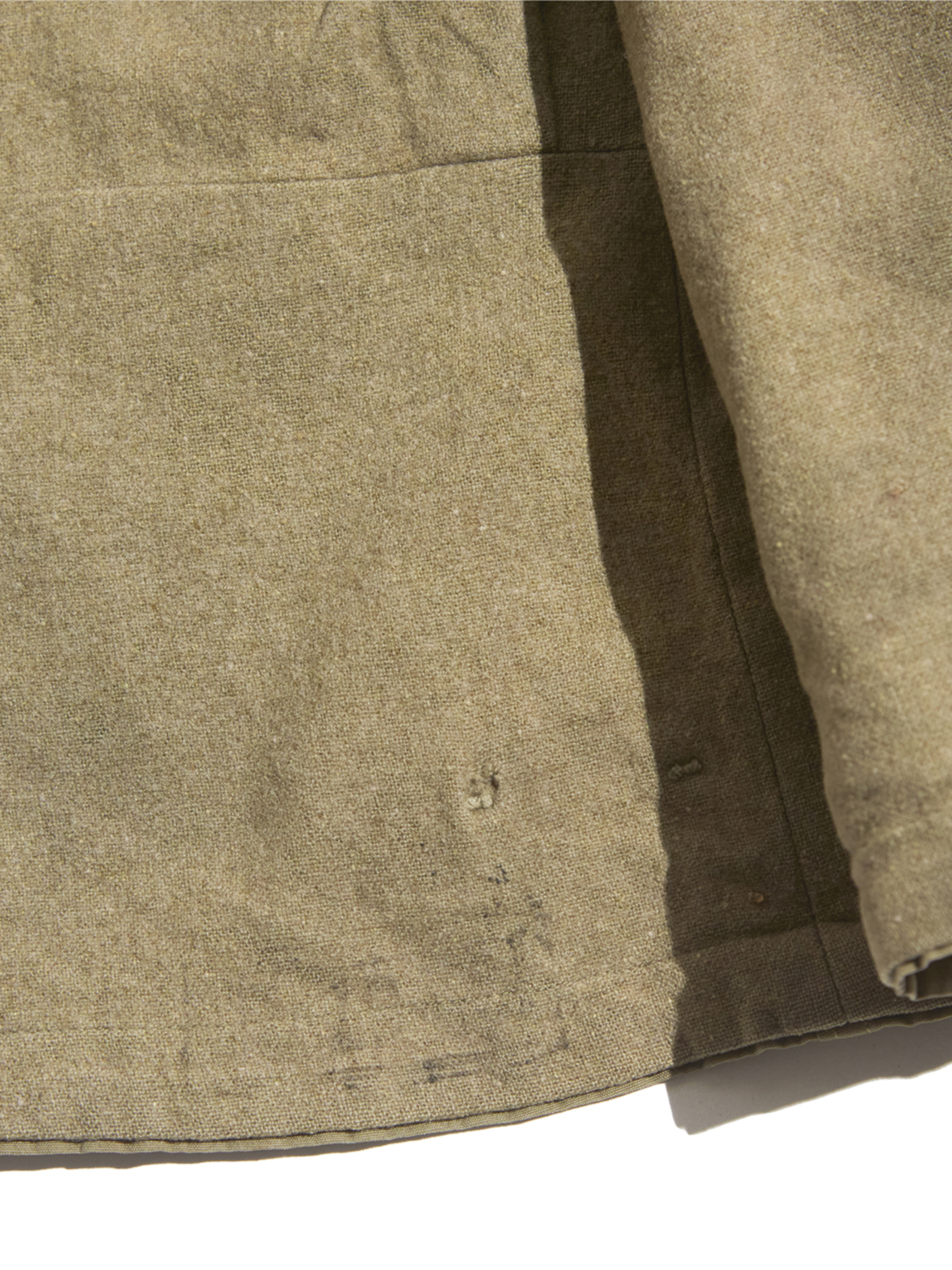 右肘付近に生地の裂けが見られます。