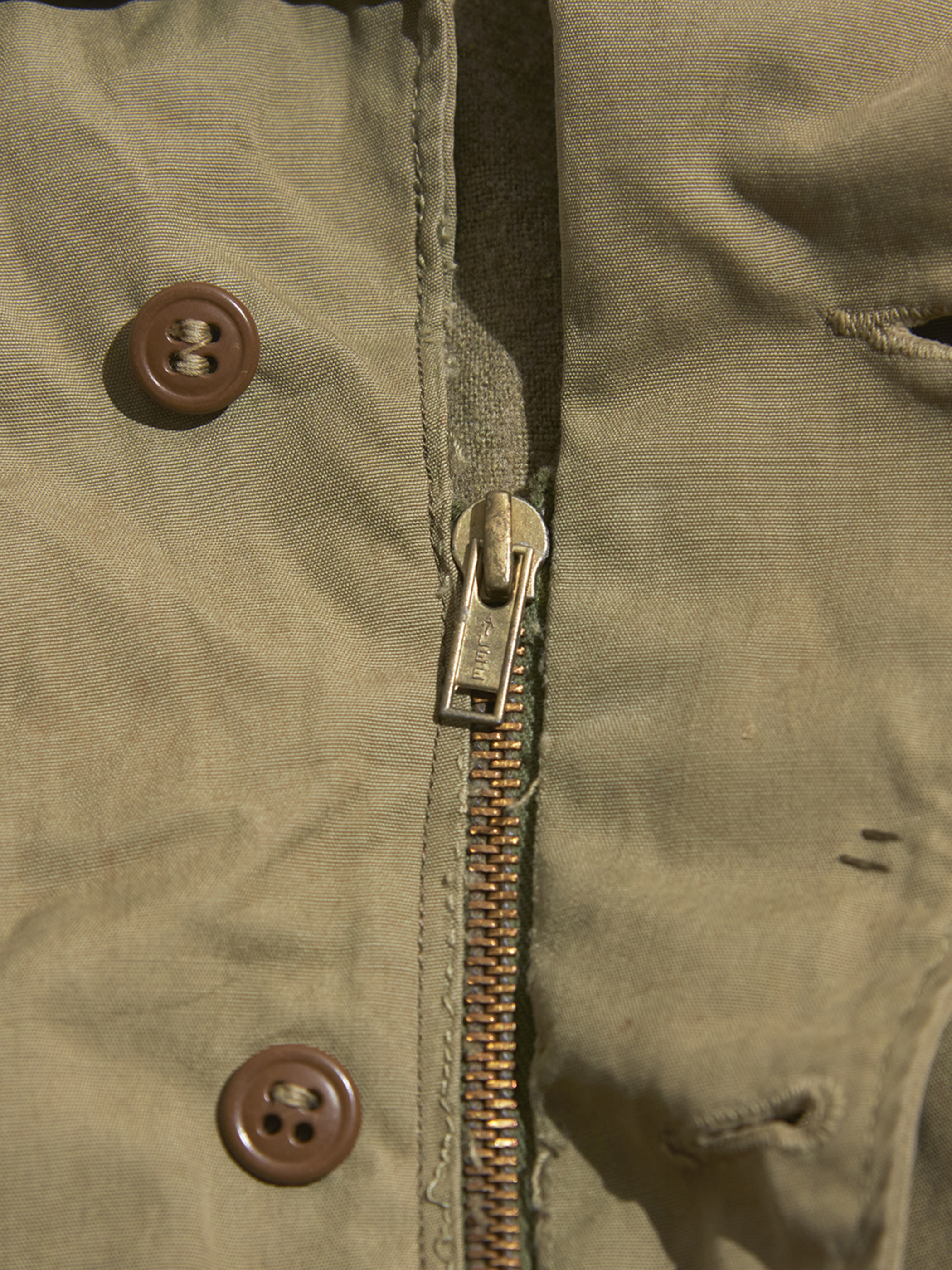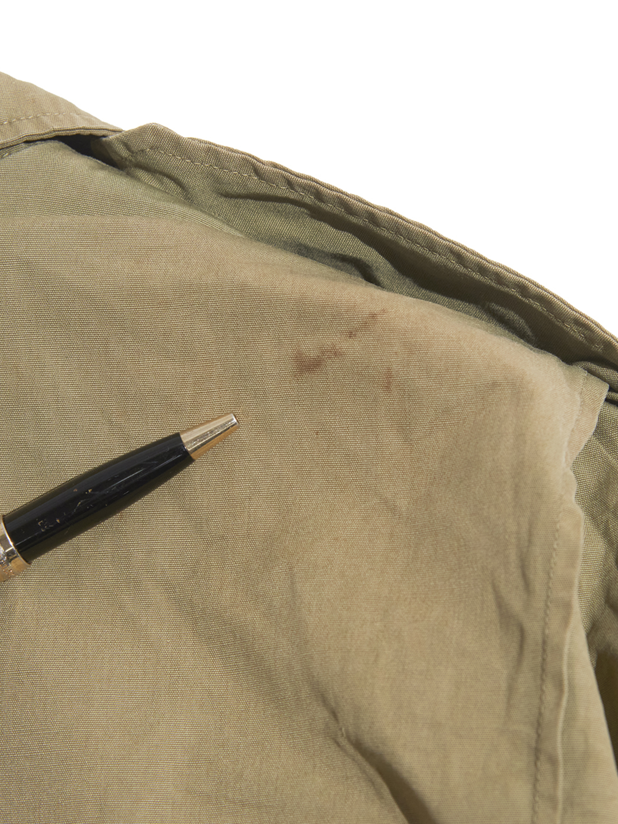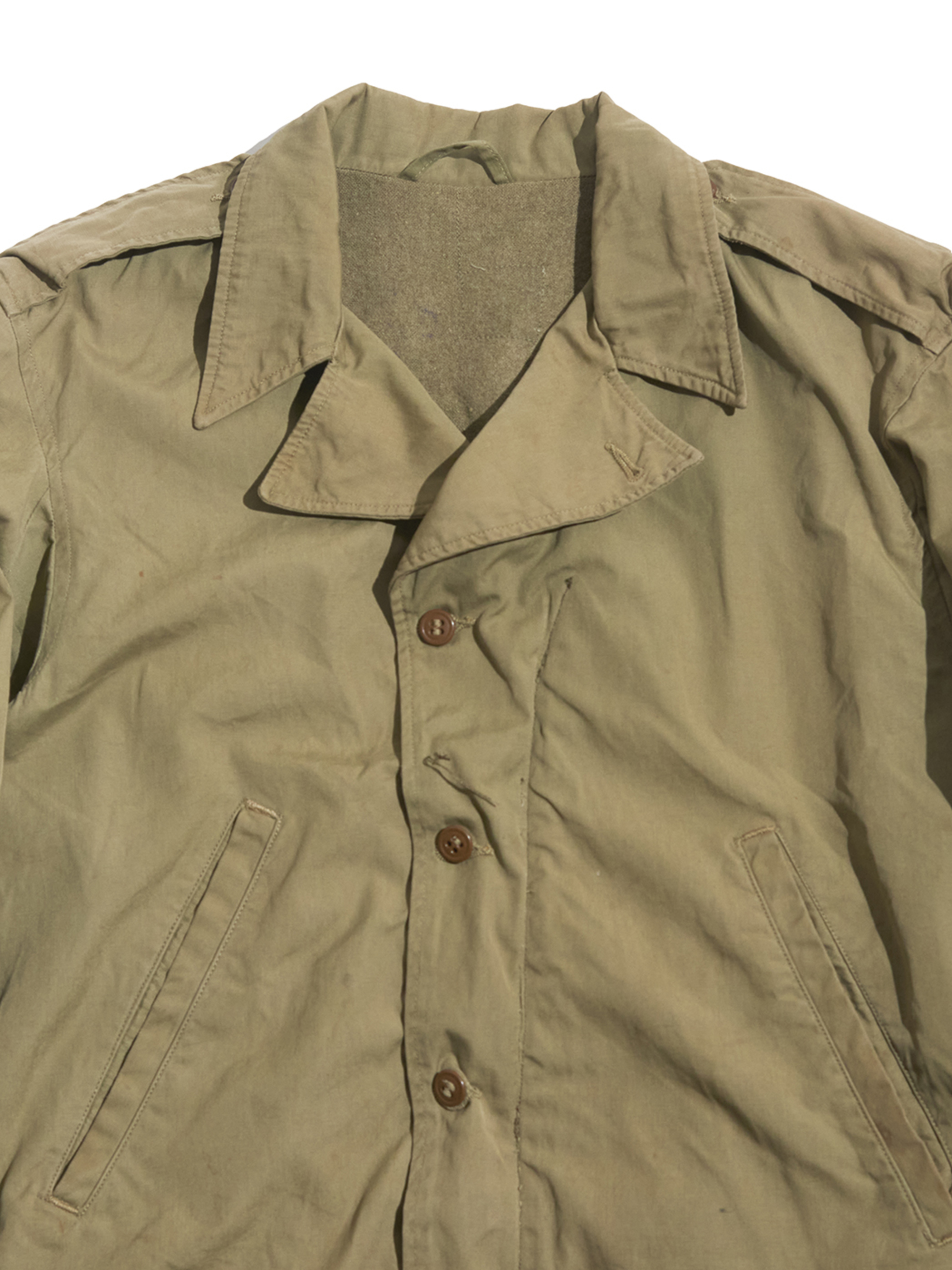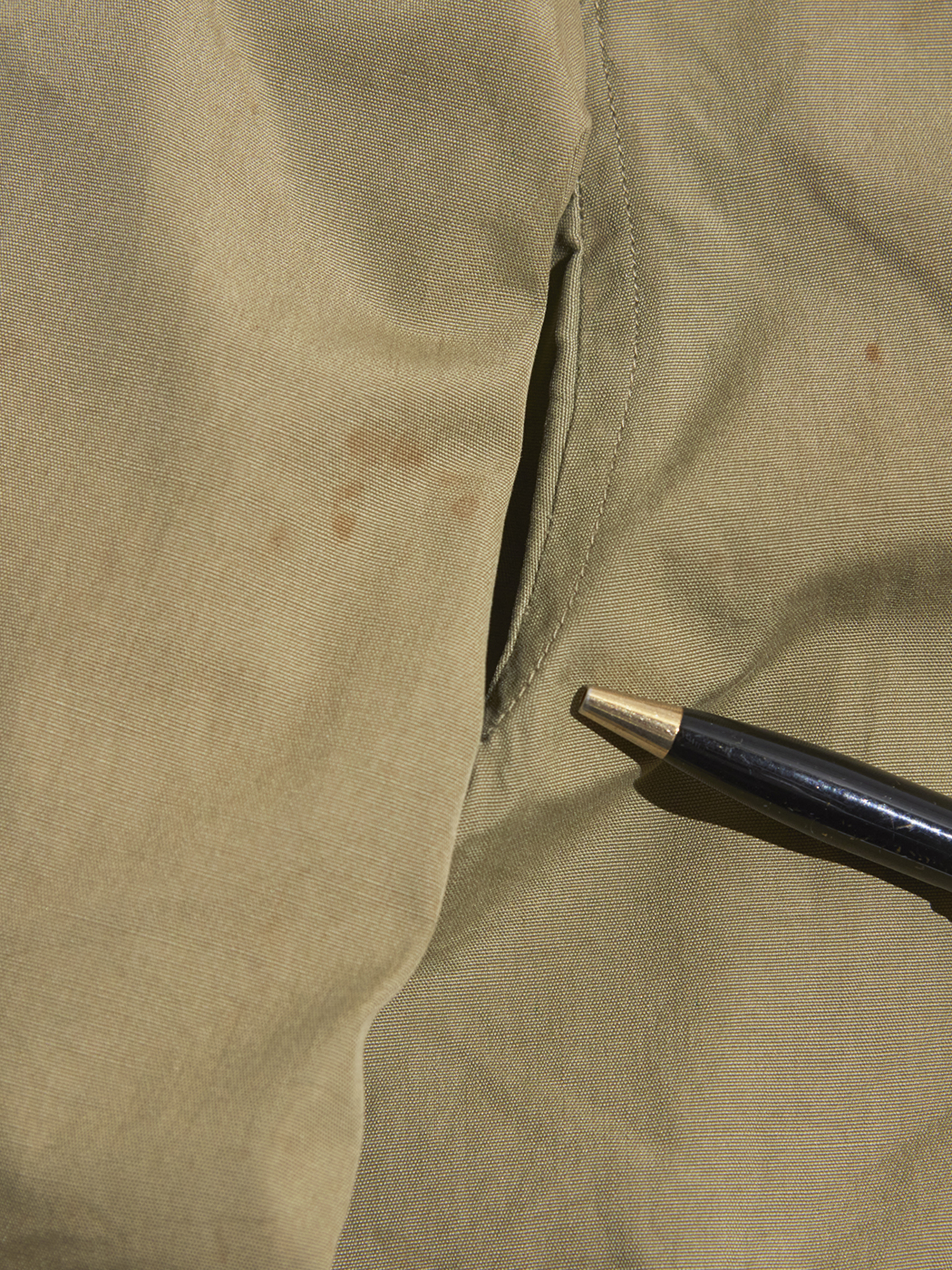 右肘付近に生地の裂けが見られます。