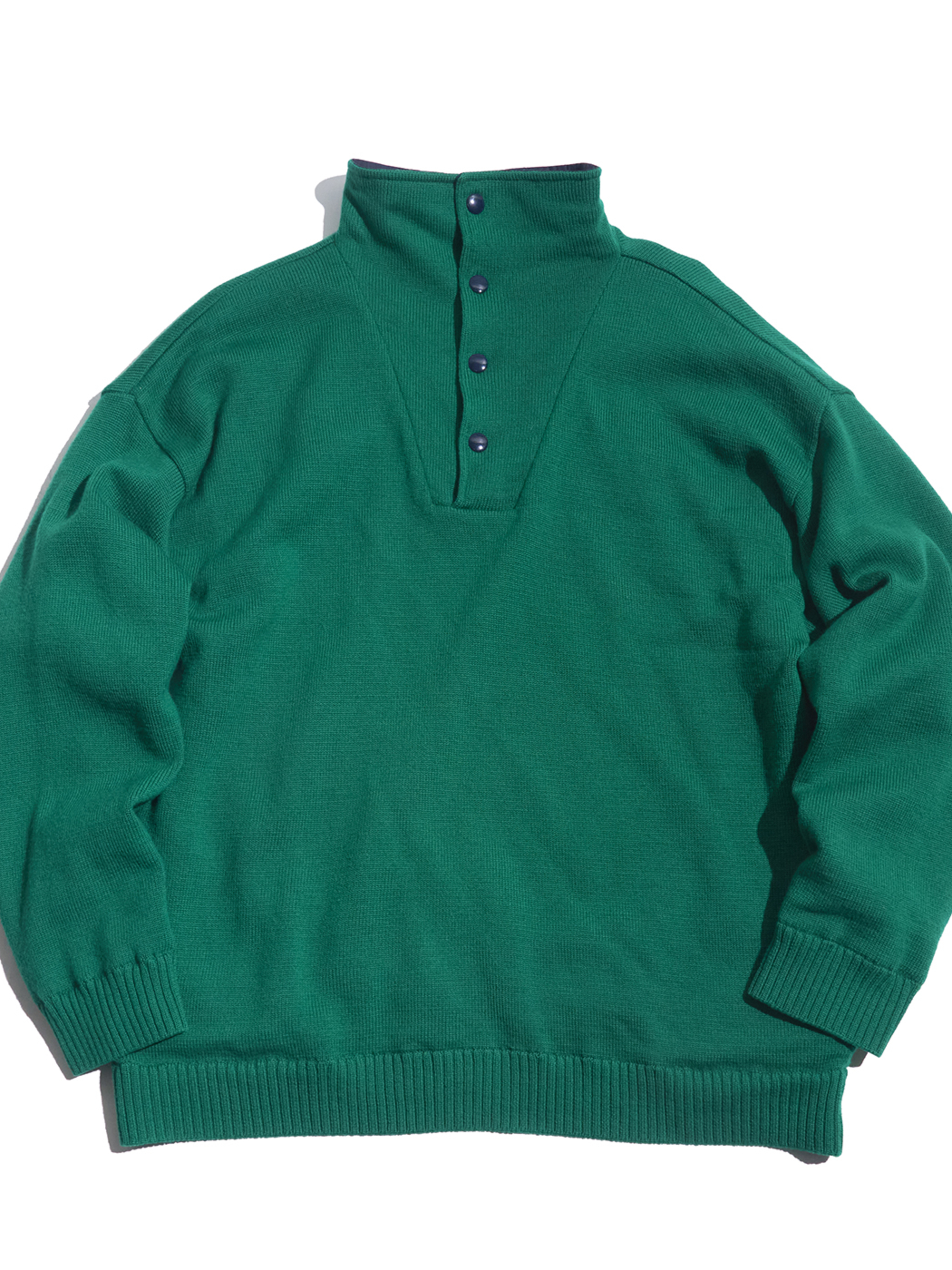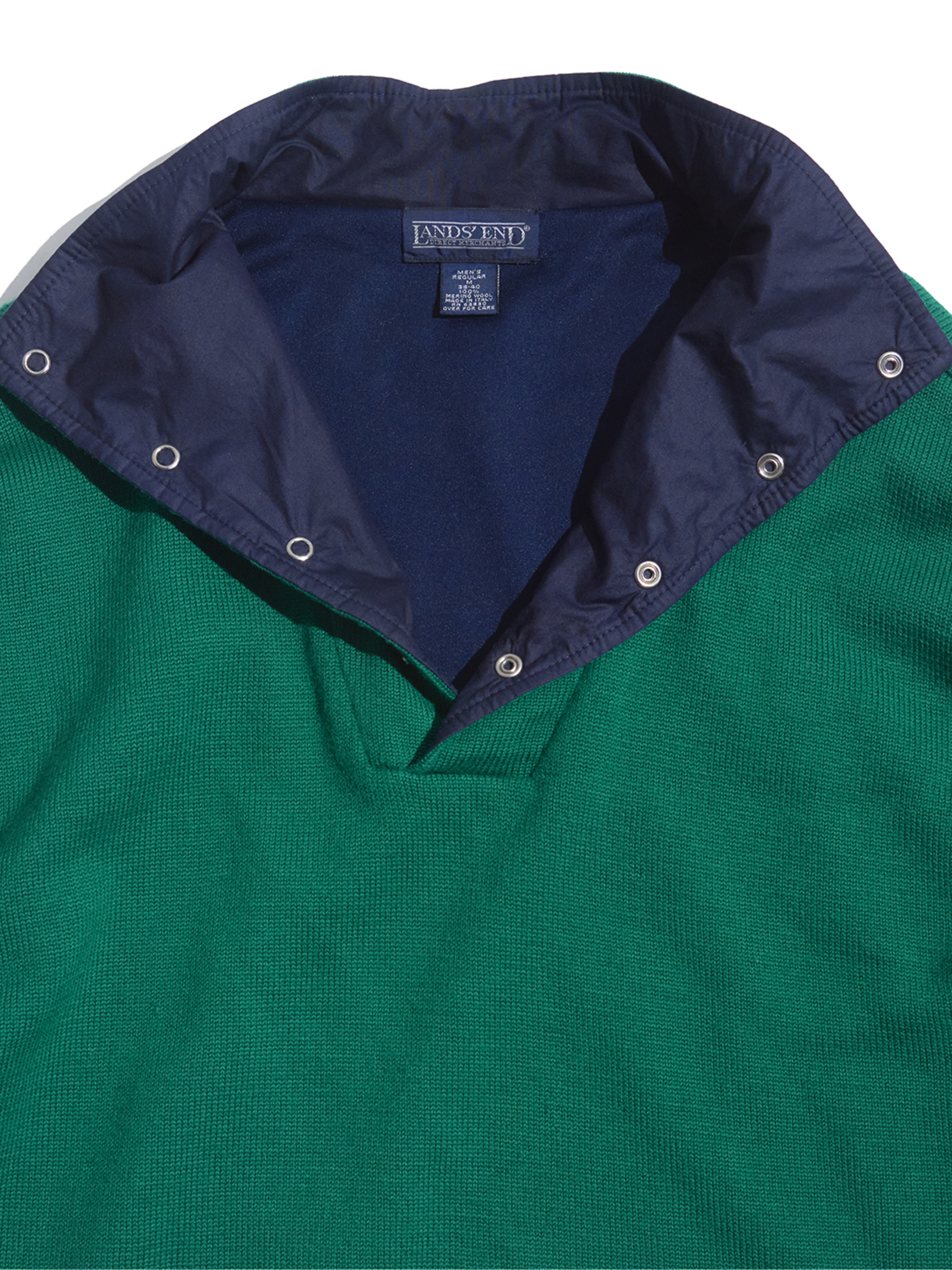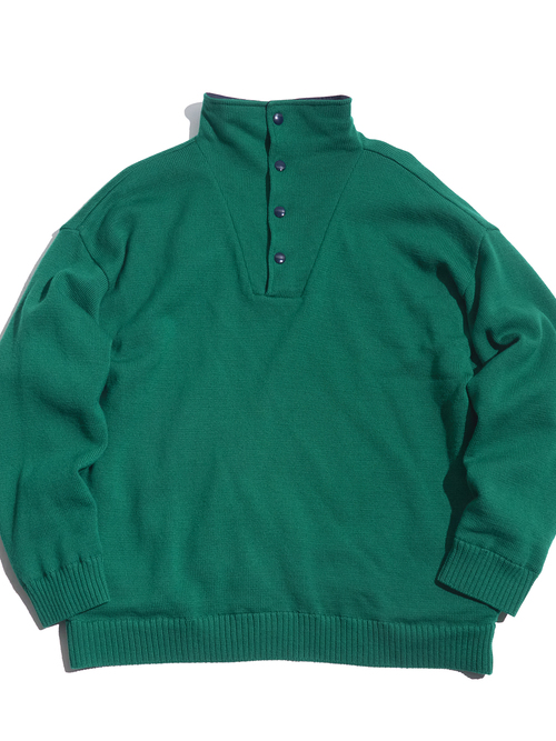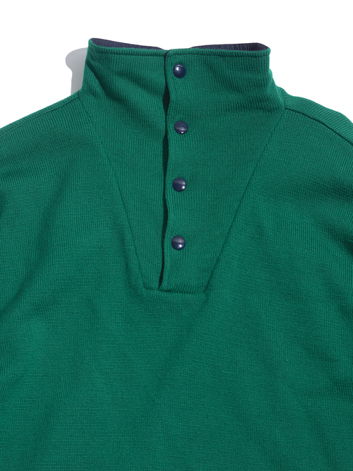 <SOLD OUT> 1990s "LAND'S END" merino wool mock neck knit with lining -GREEN-