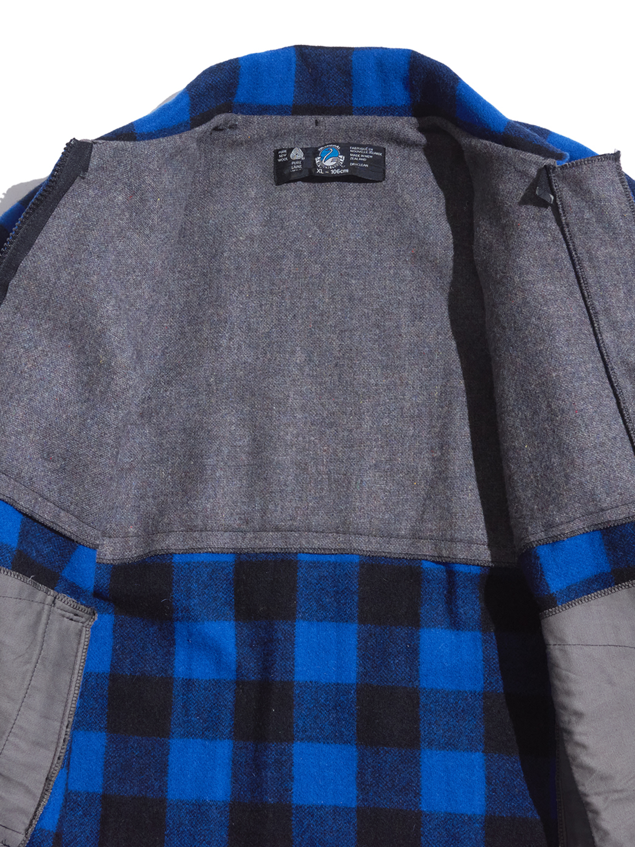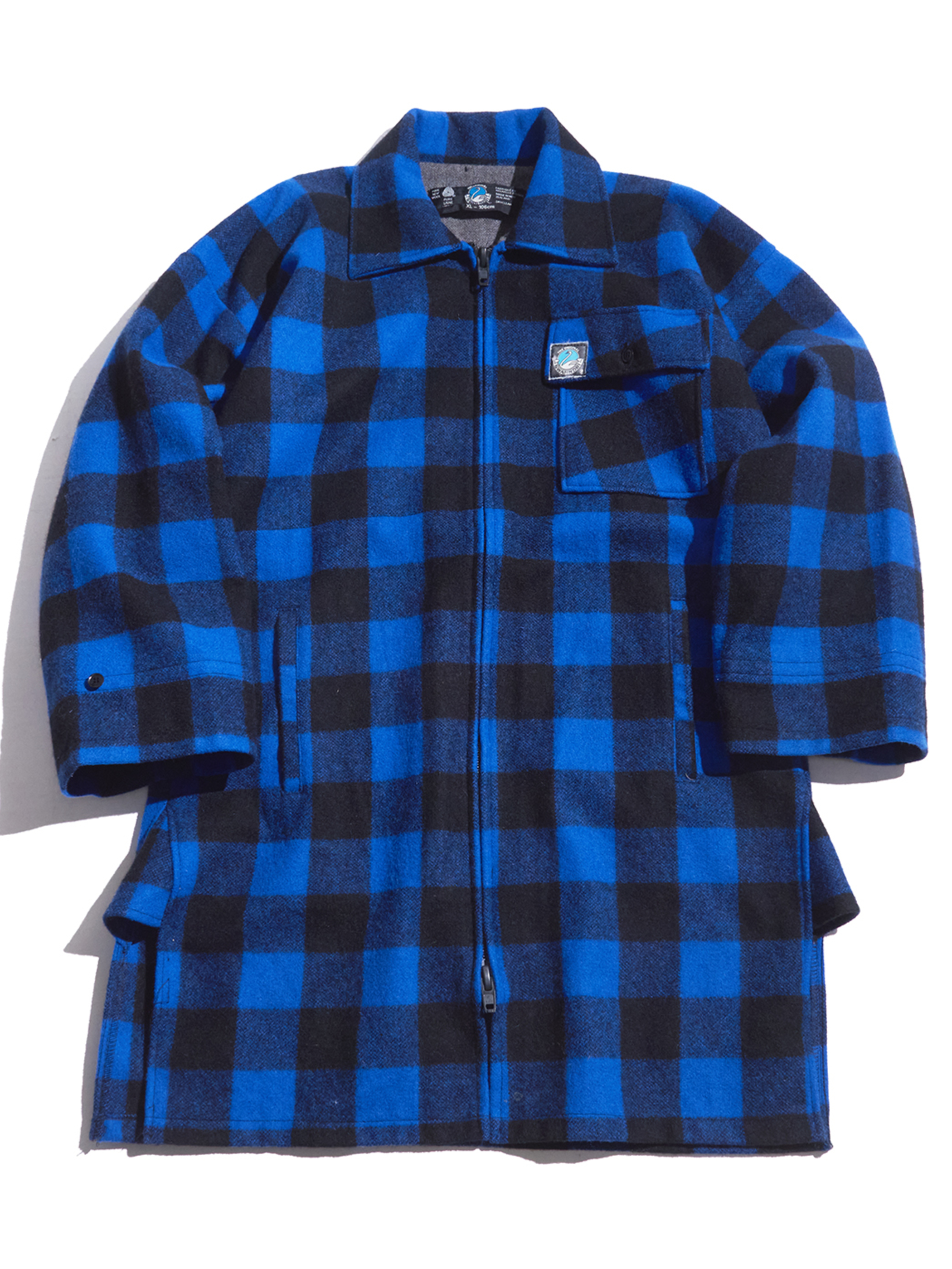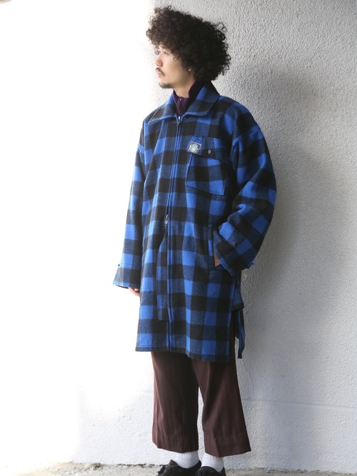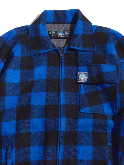 <12.17 UP> 1980s "SWANDRI" wool melton baffalo check cruiser coat -BLUE-