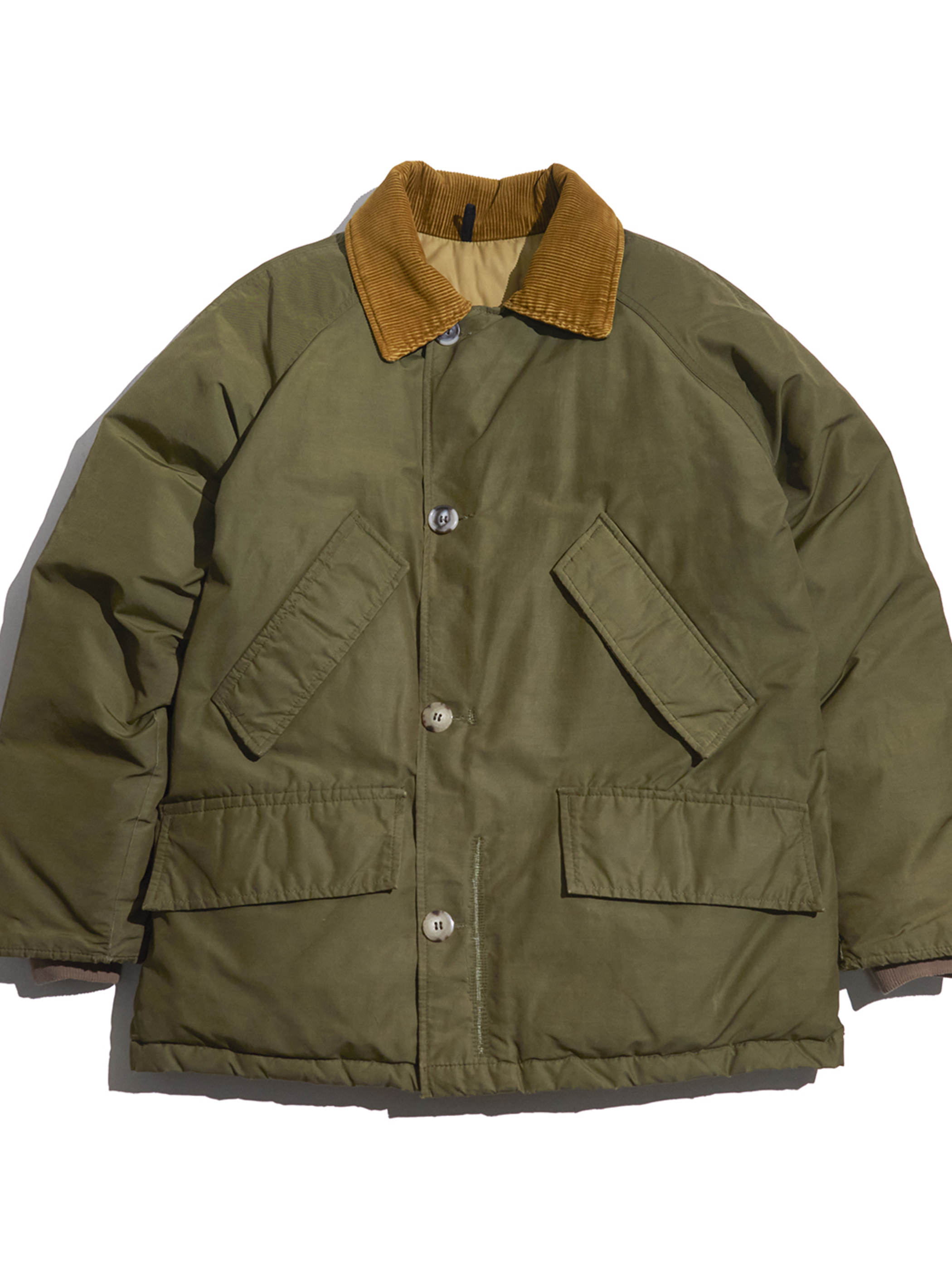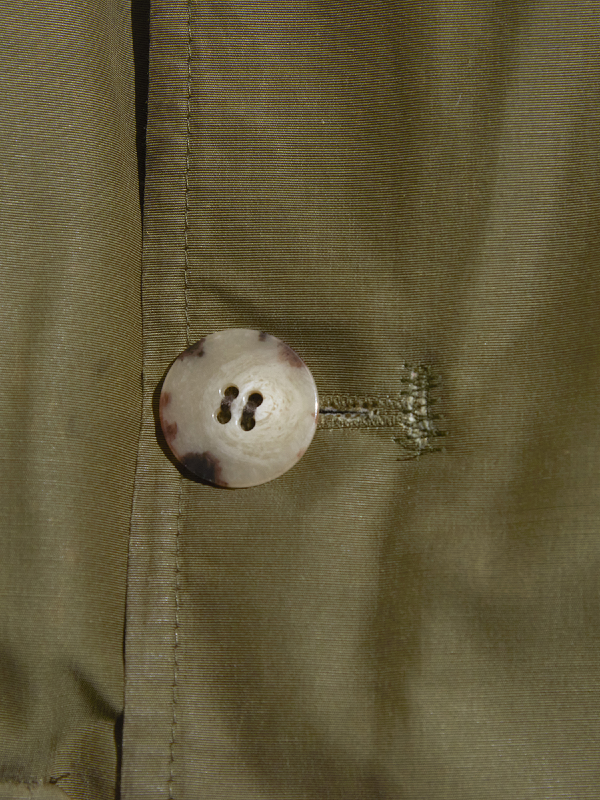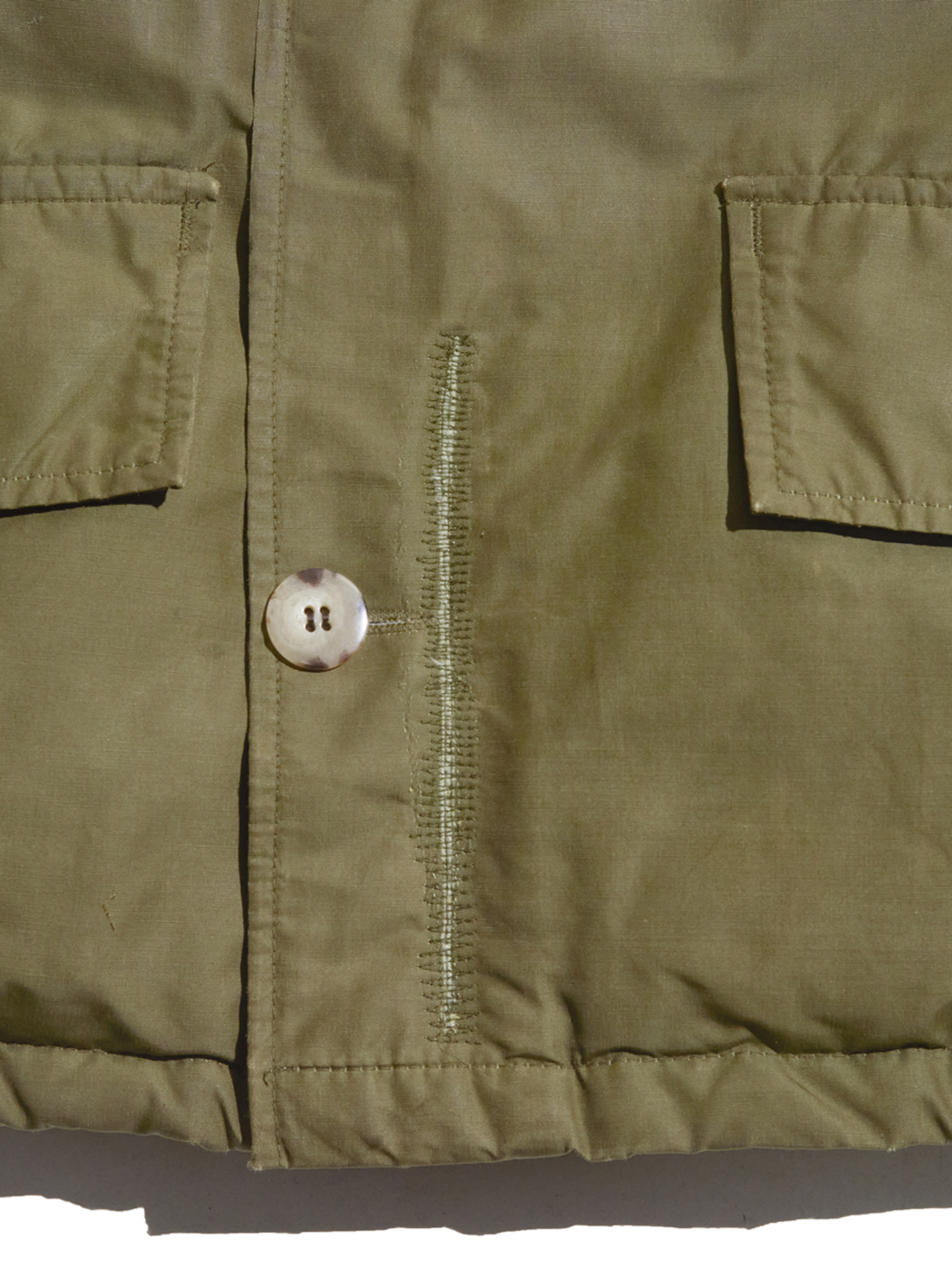 前身頃最下部ボタン付近から裾に掛けて、大きなリペア箇所がございます。