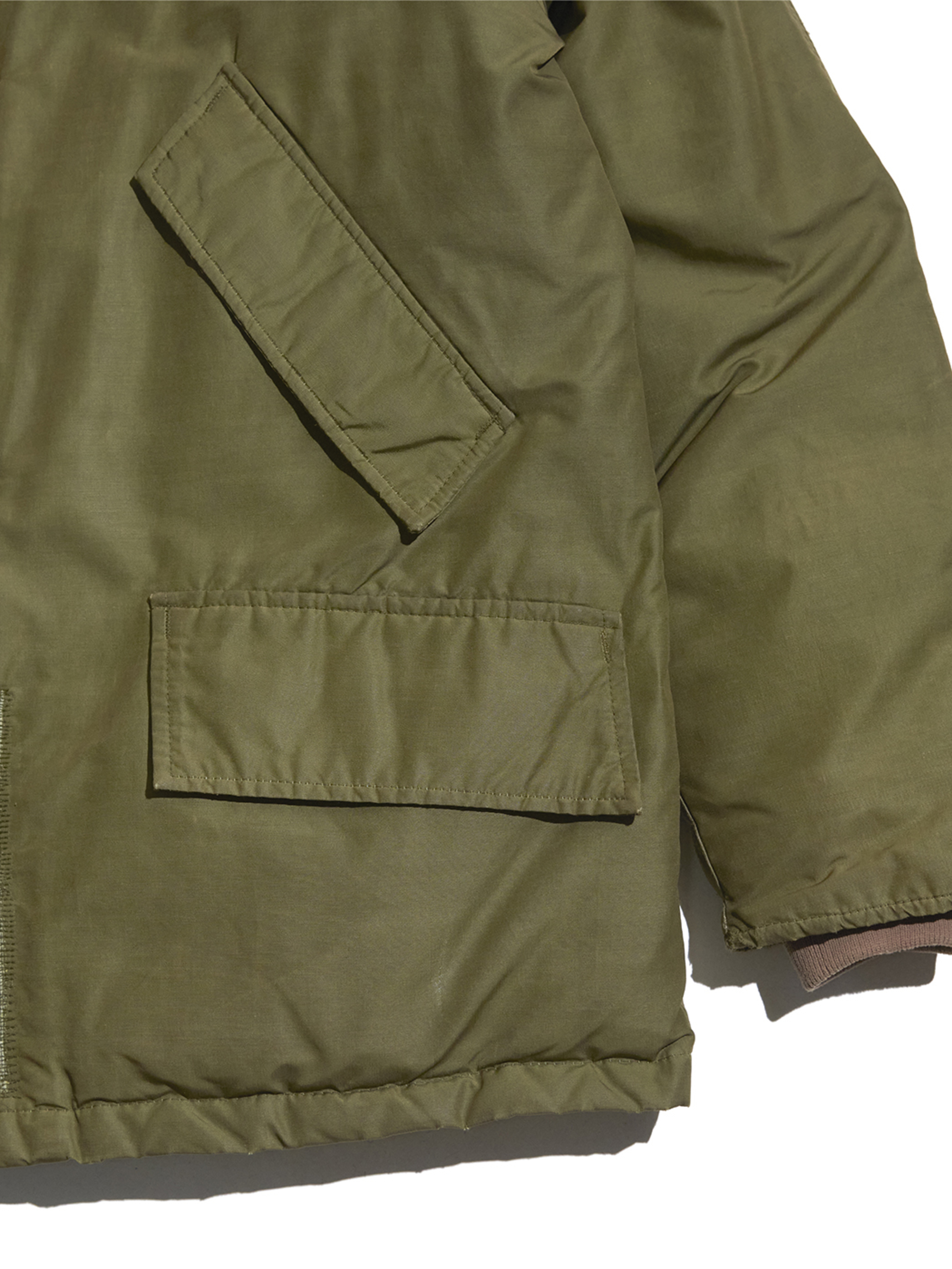 着脱可能なフードやウエストのドローコード(内側)が欠損しております。