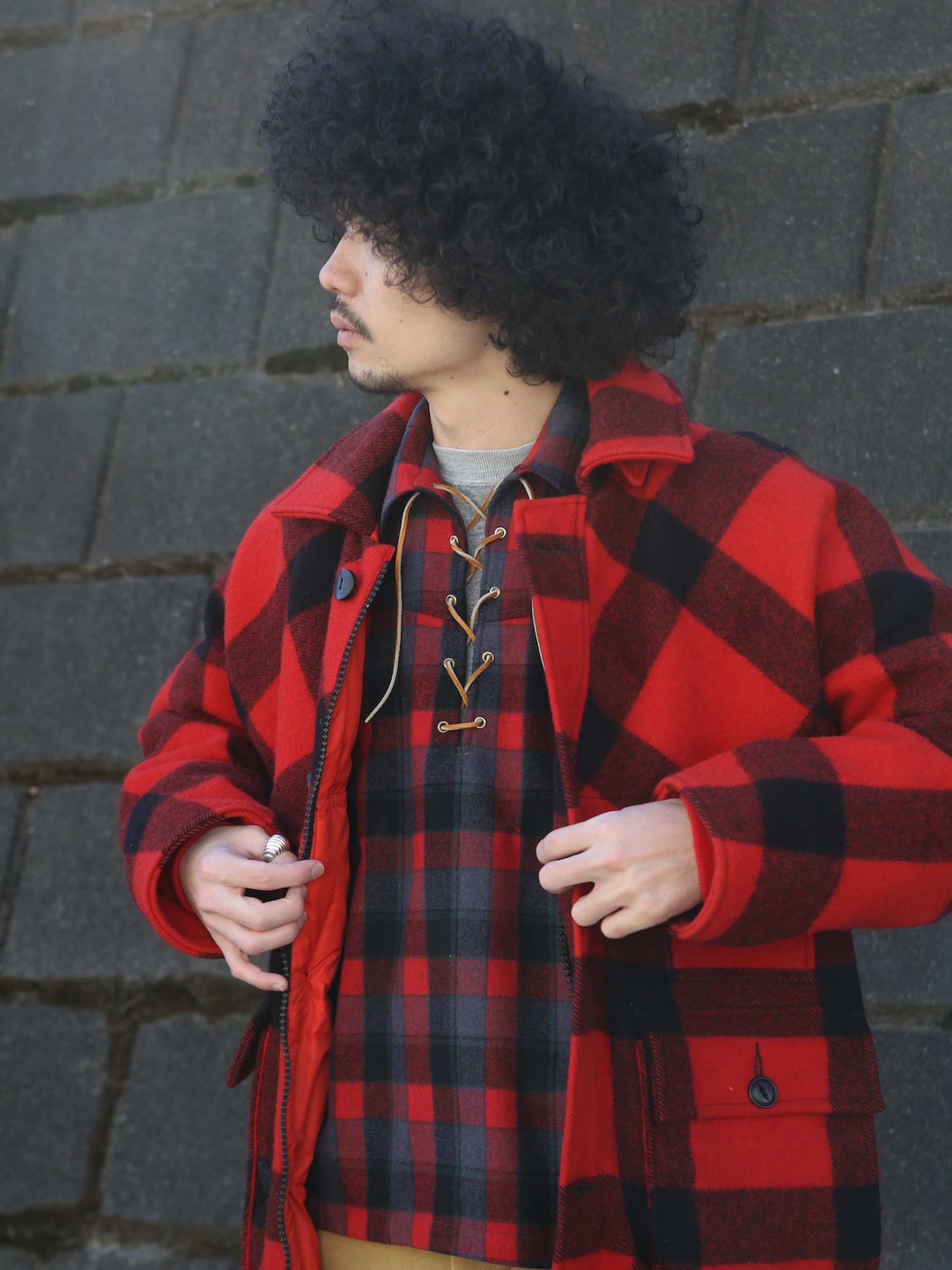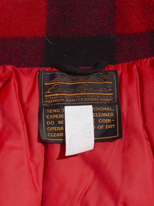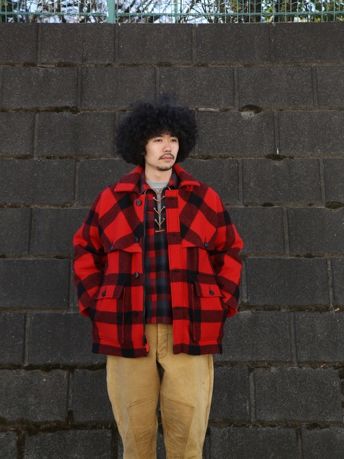 <1.14 UP> 1970s "Eddie Bauer" wool melton double mackinaw jacket w/down liner -BUFFALO CHECK-