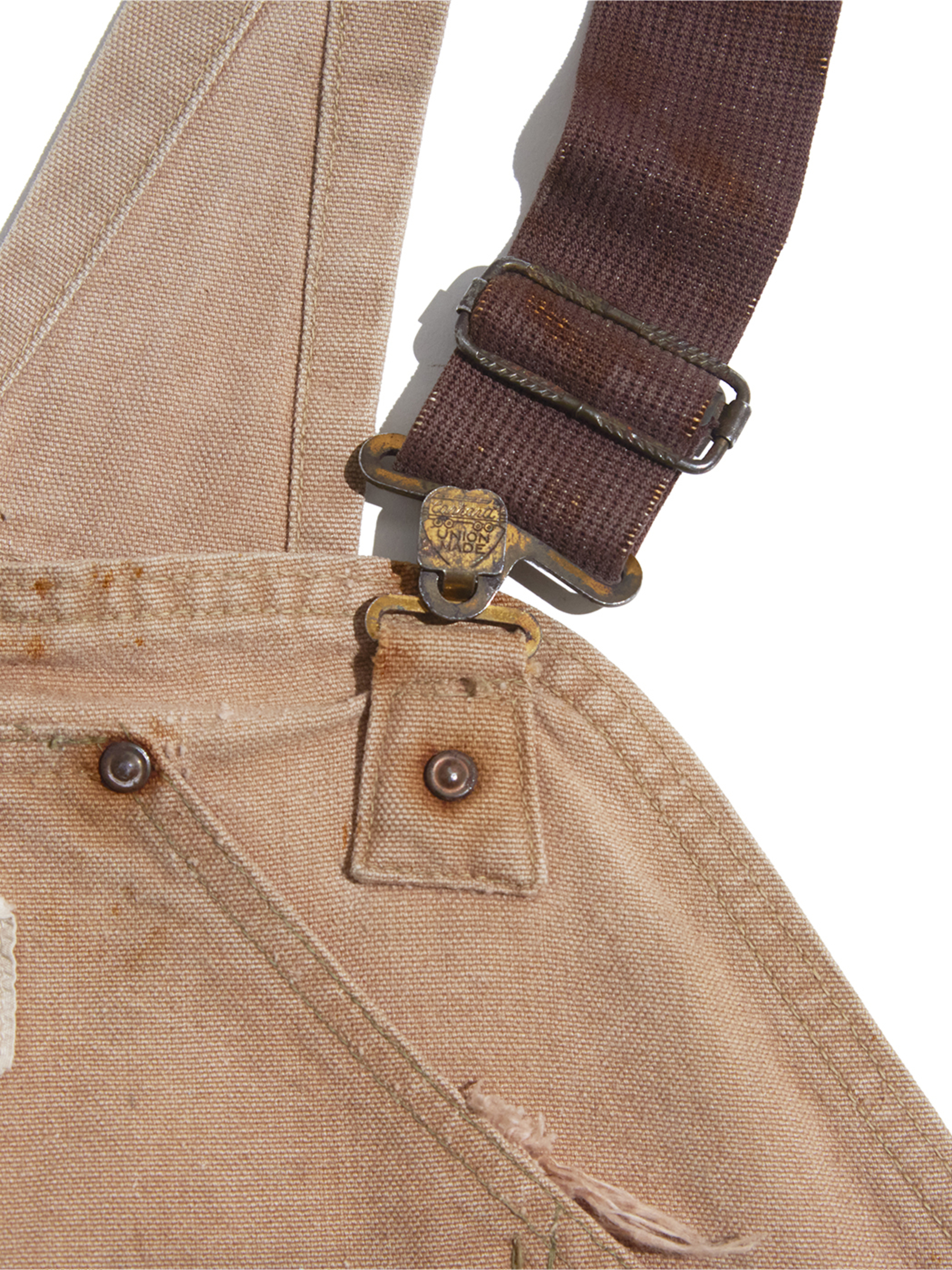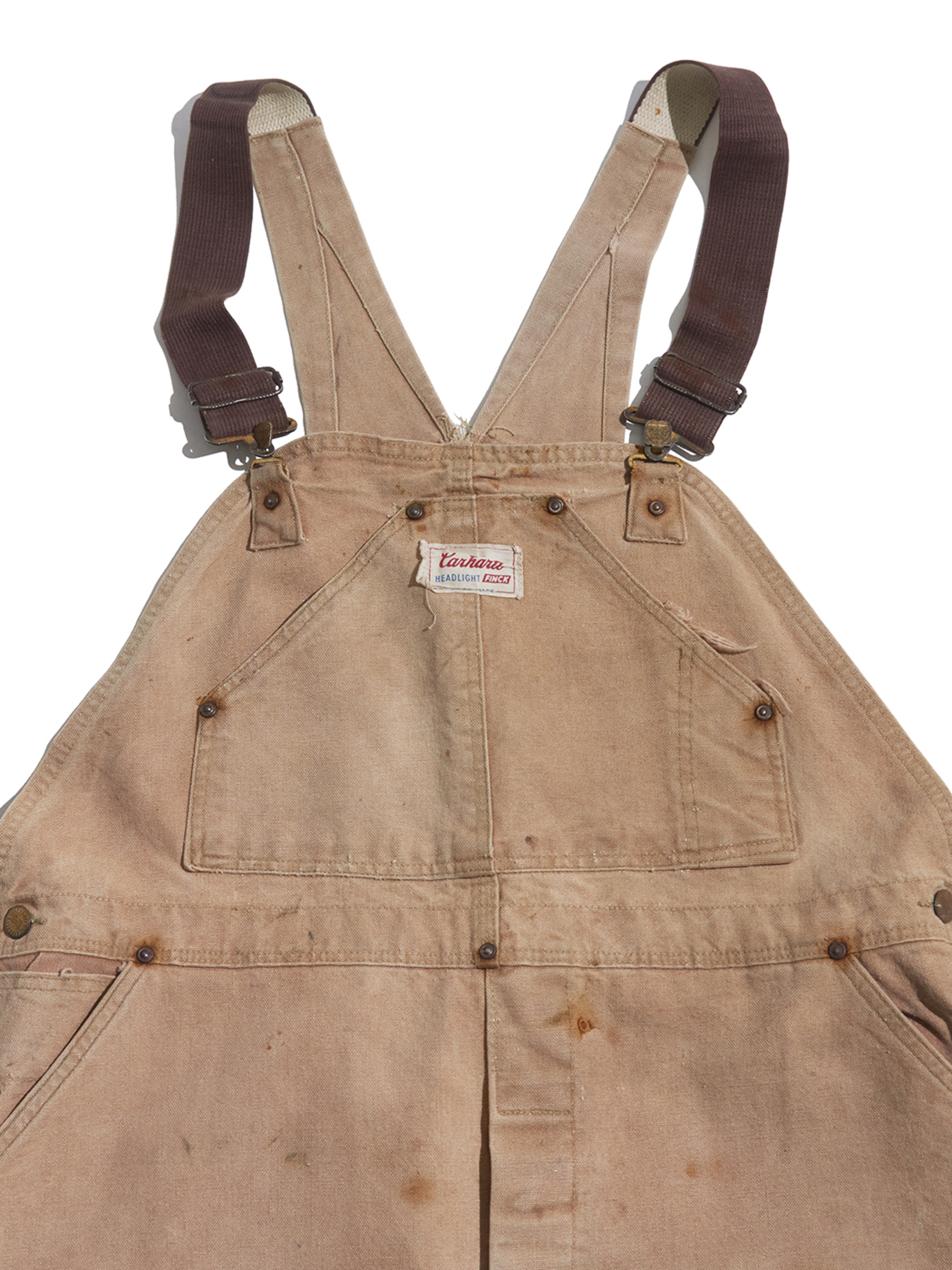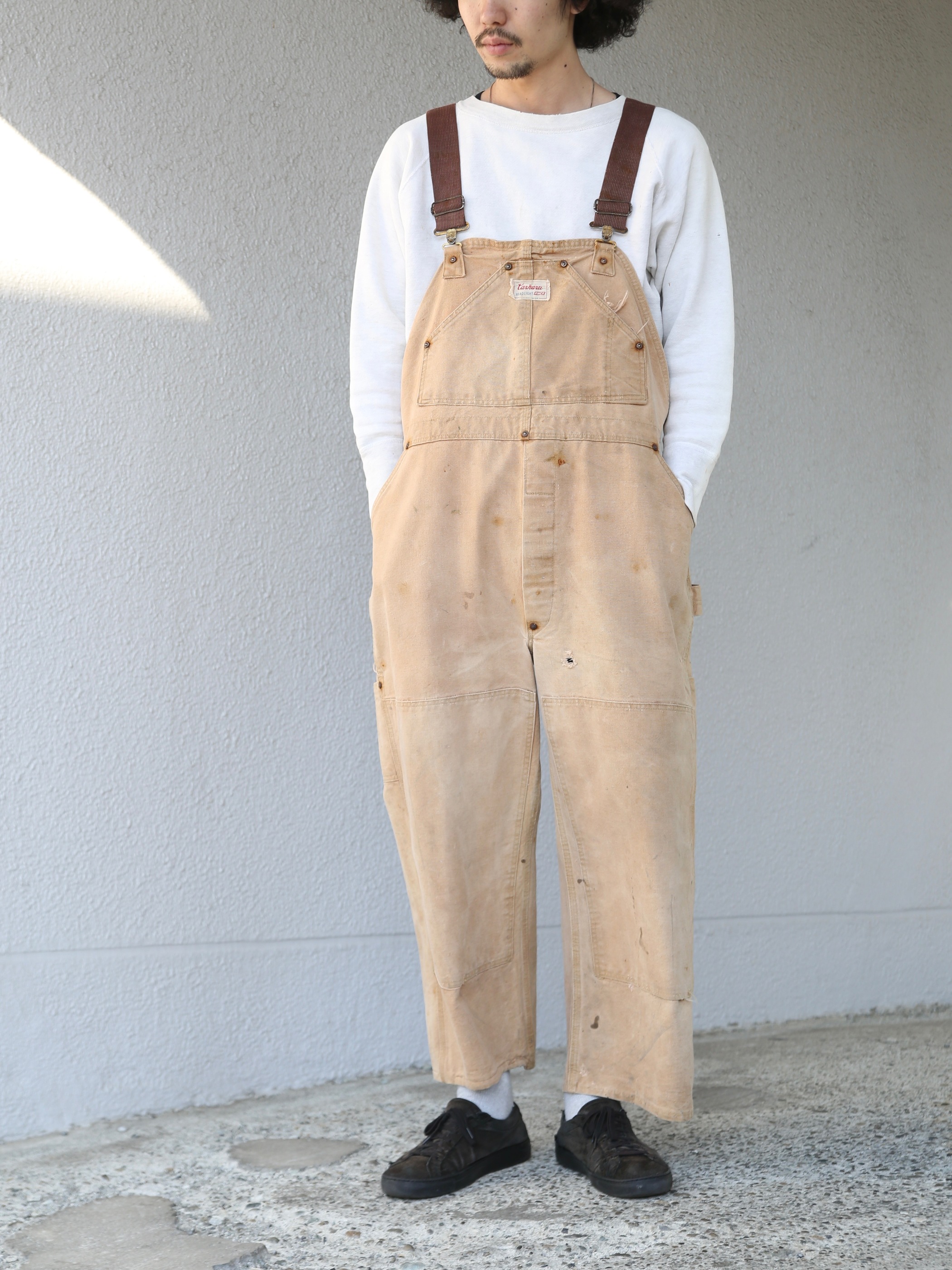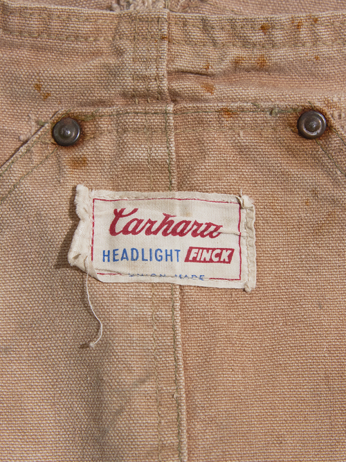 <1.14 UP> 1960s "Carhartt / HEADLIGHT / FINCK" double knee duck overalls -BROWN-