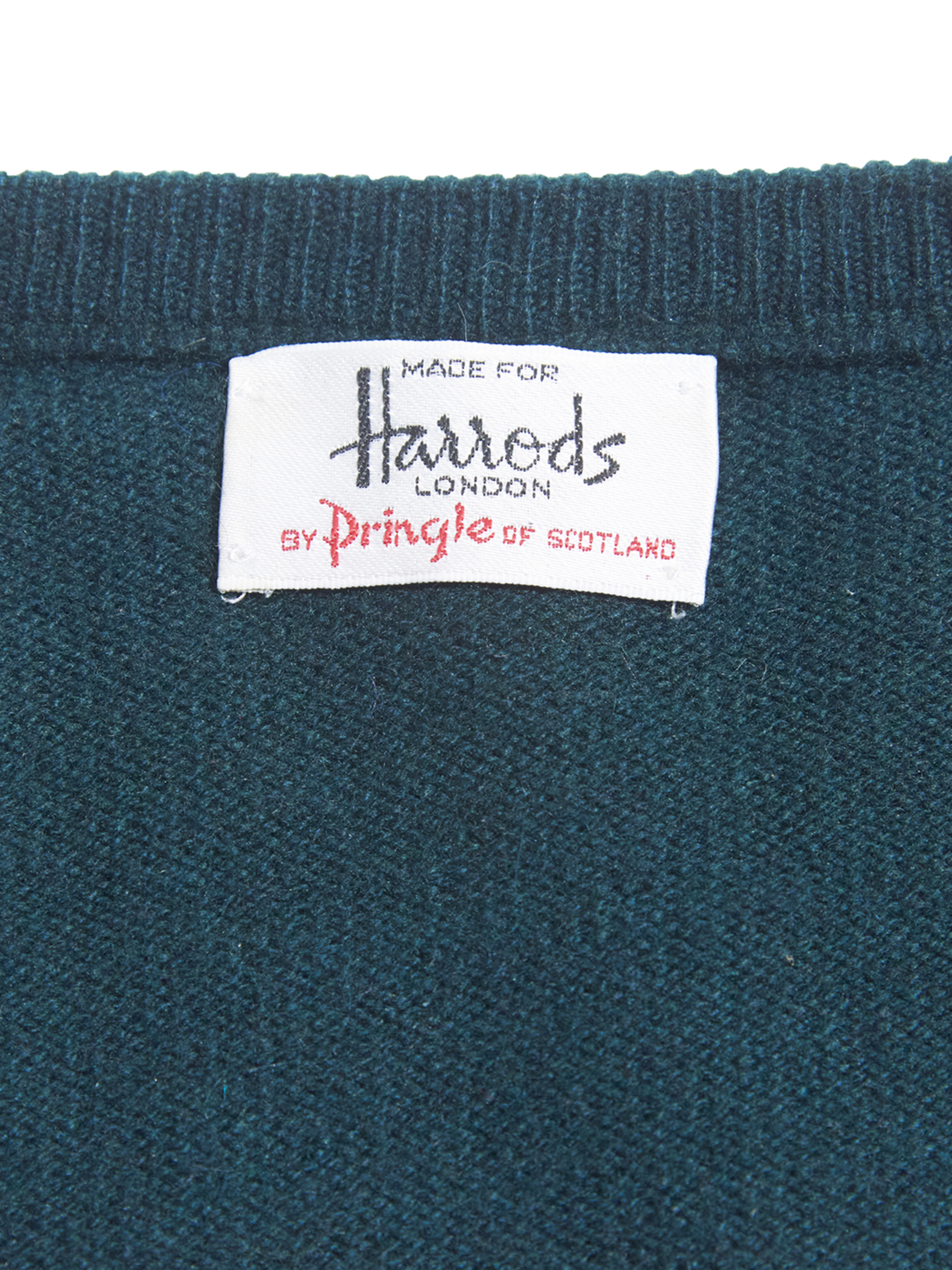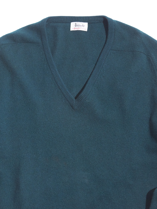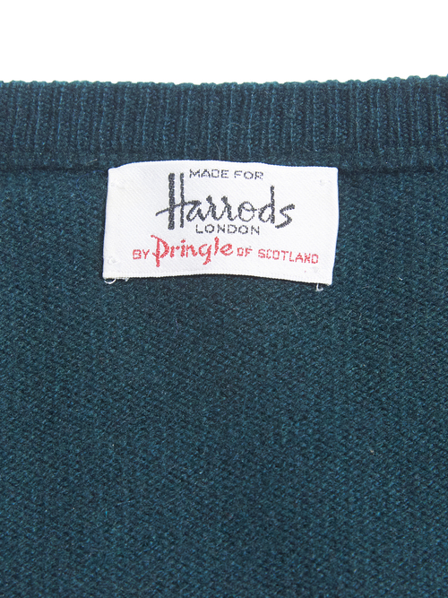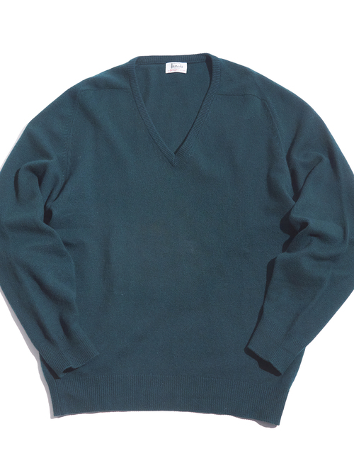 <1.21 UP> 1970-80s "Harrods by Pringle" cashmere V-neck knit sweater -GREEN-