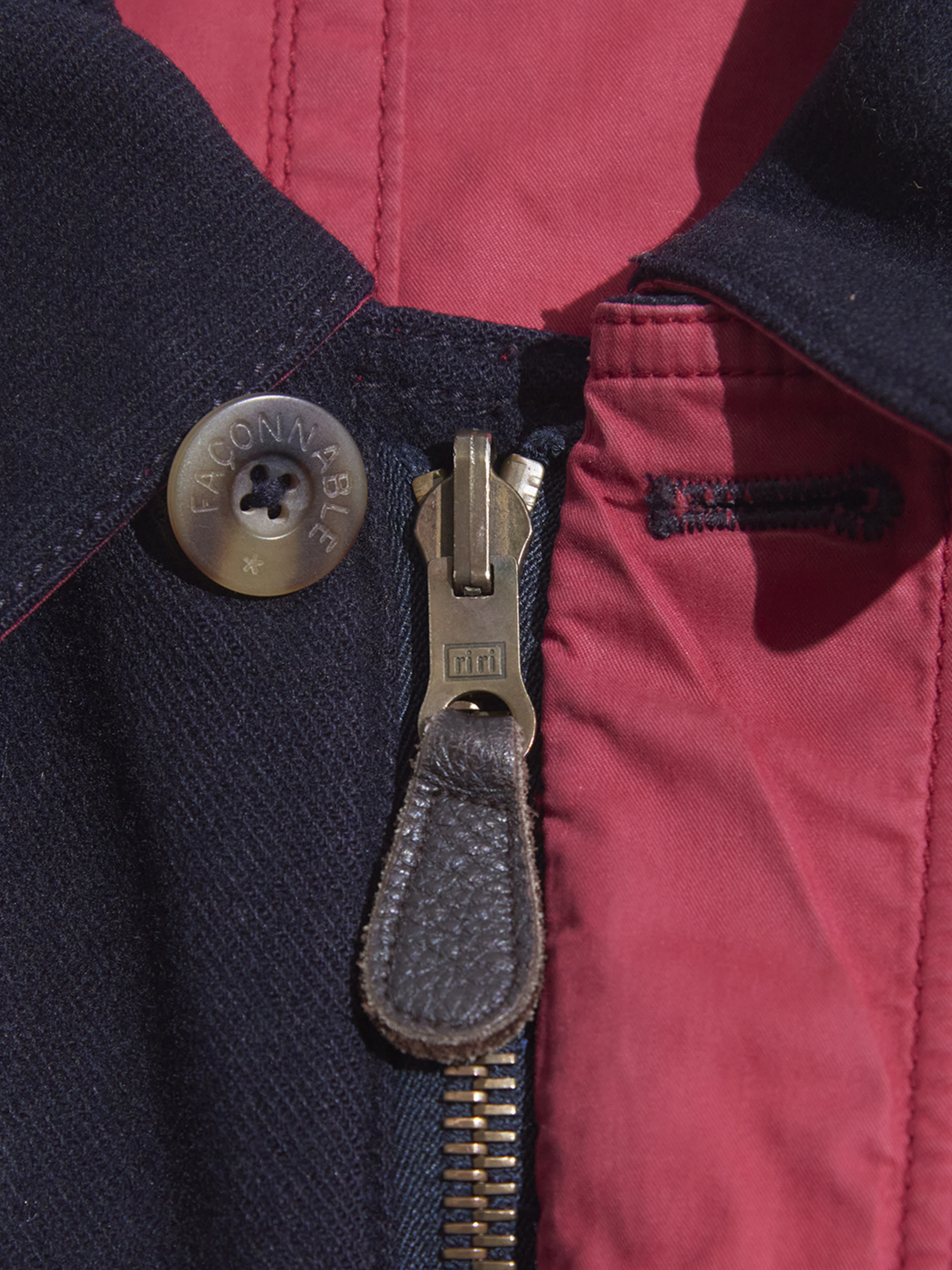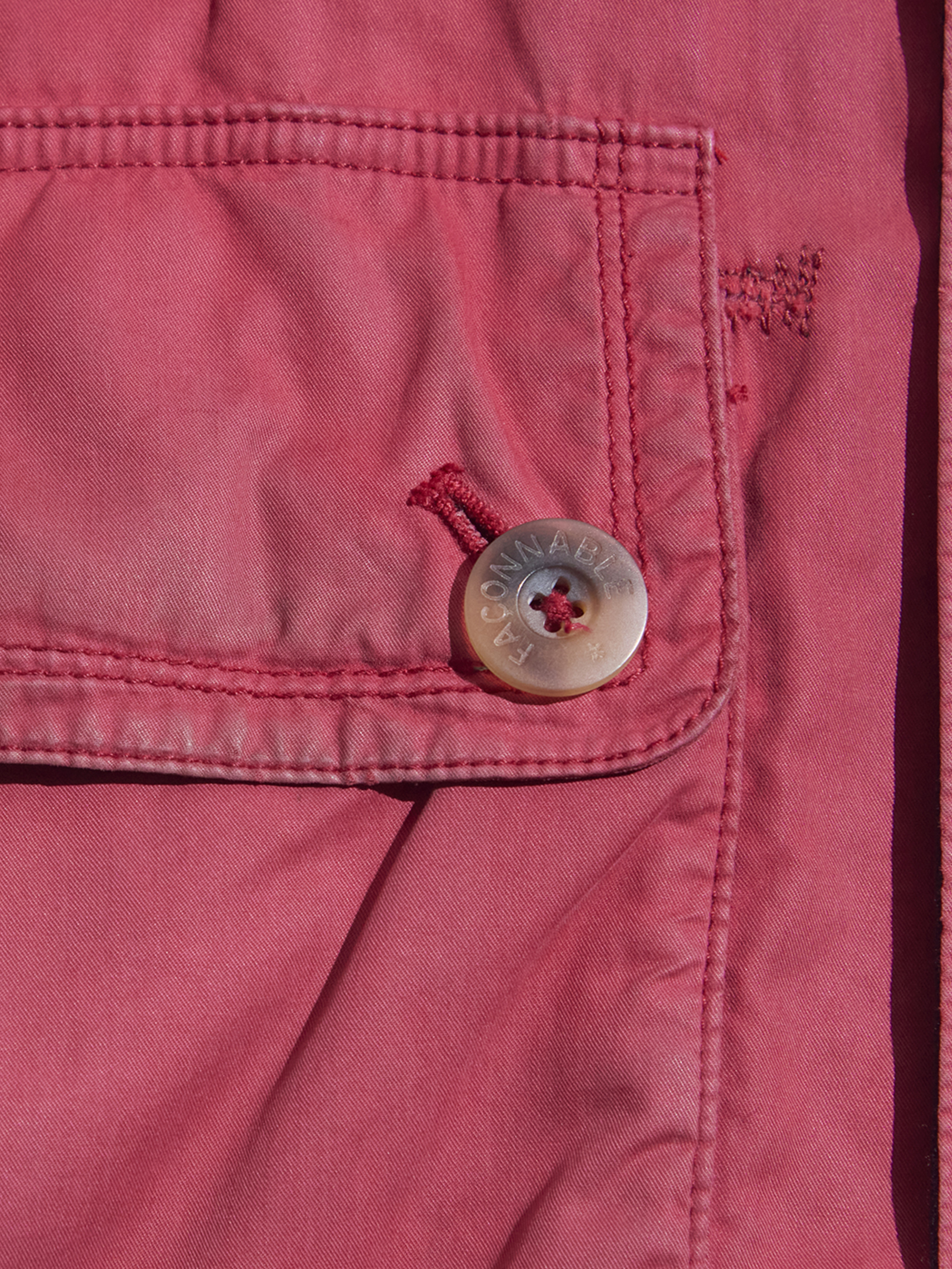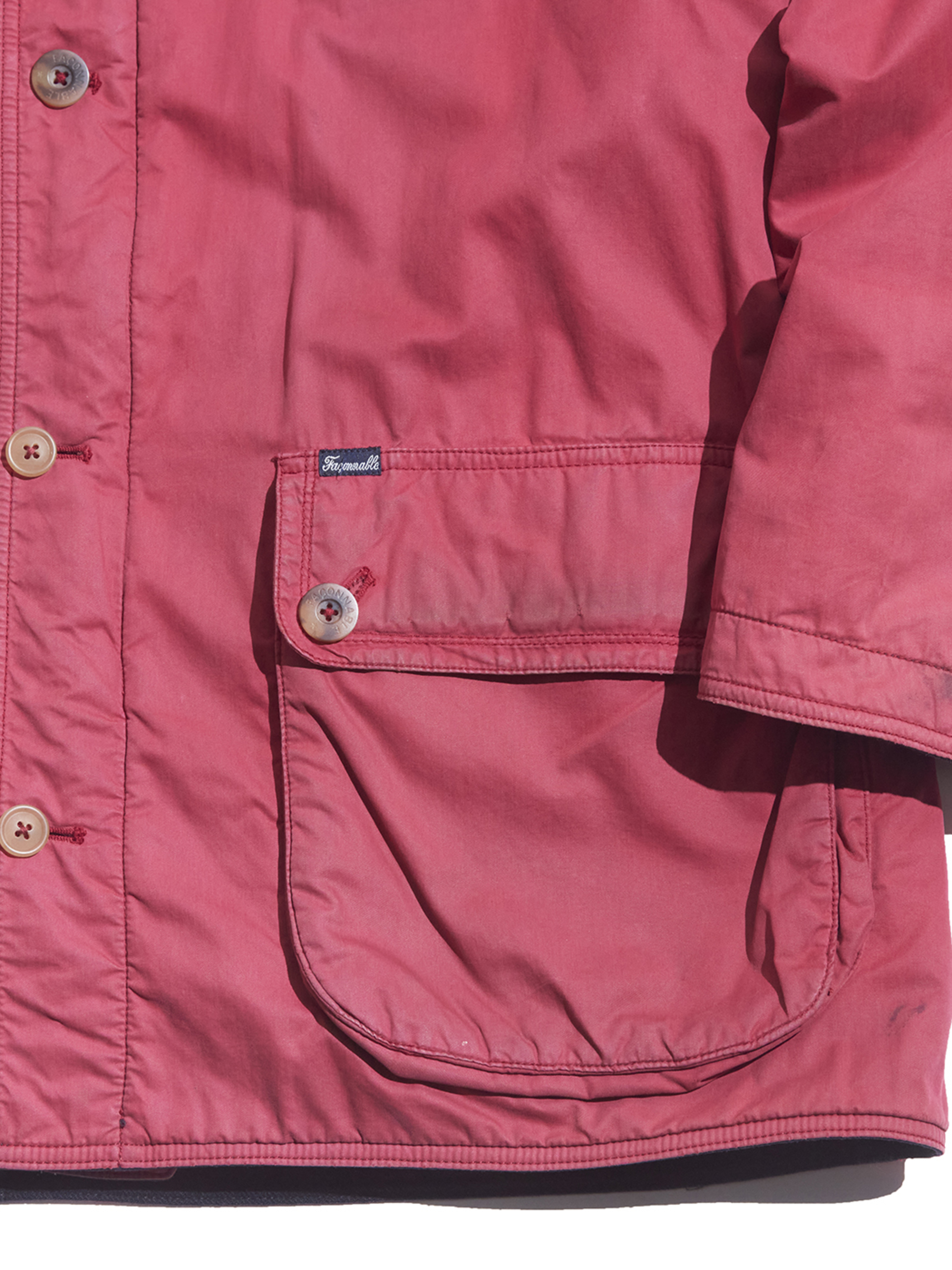 side B(RED)面の右下ポケットの左上&前立てにリペア箇所がございます。