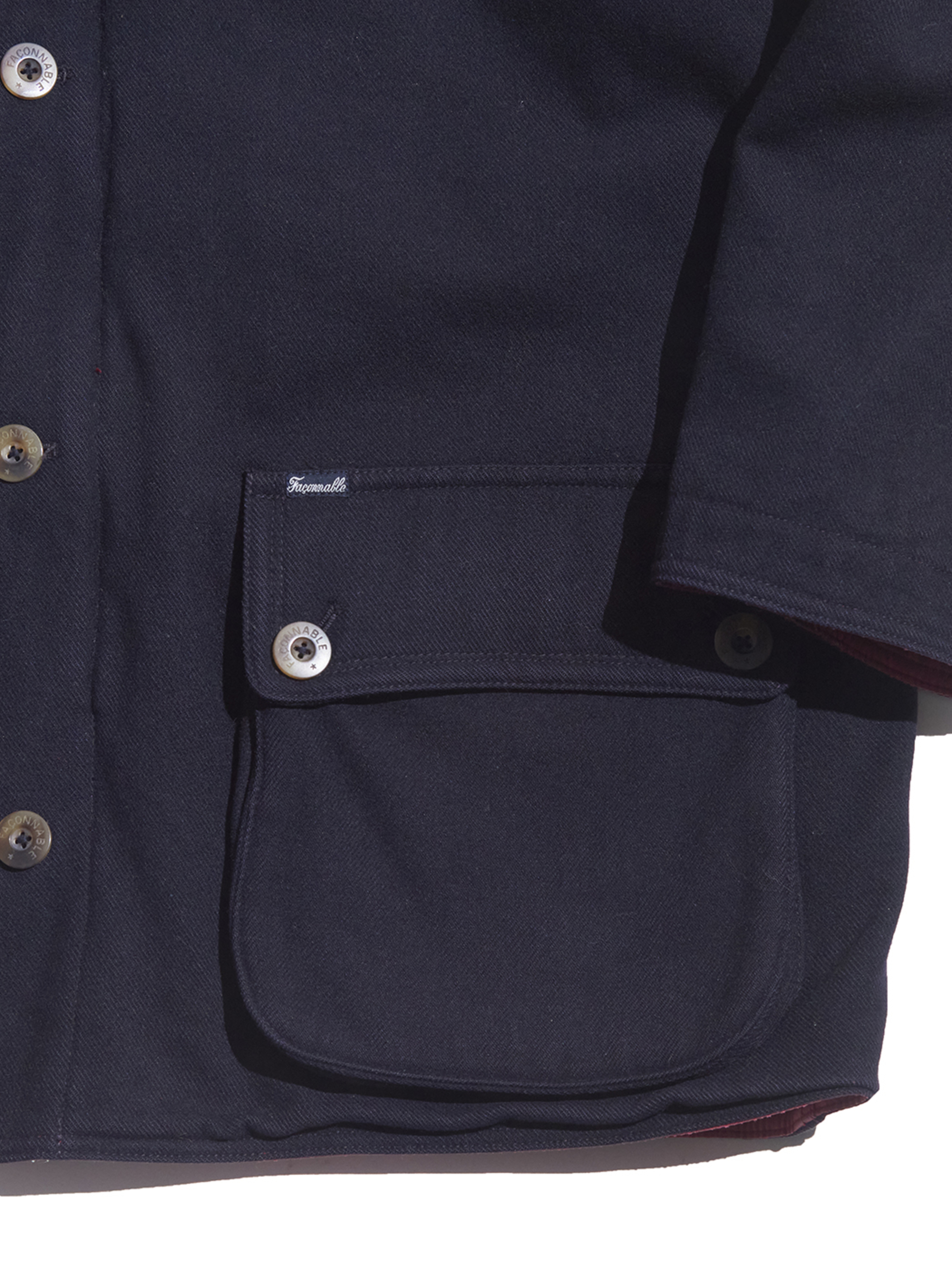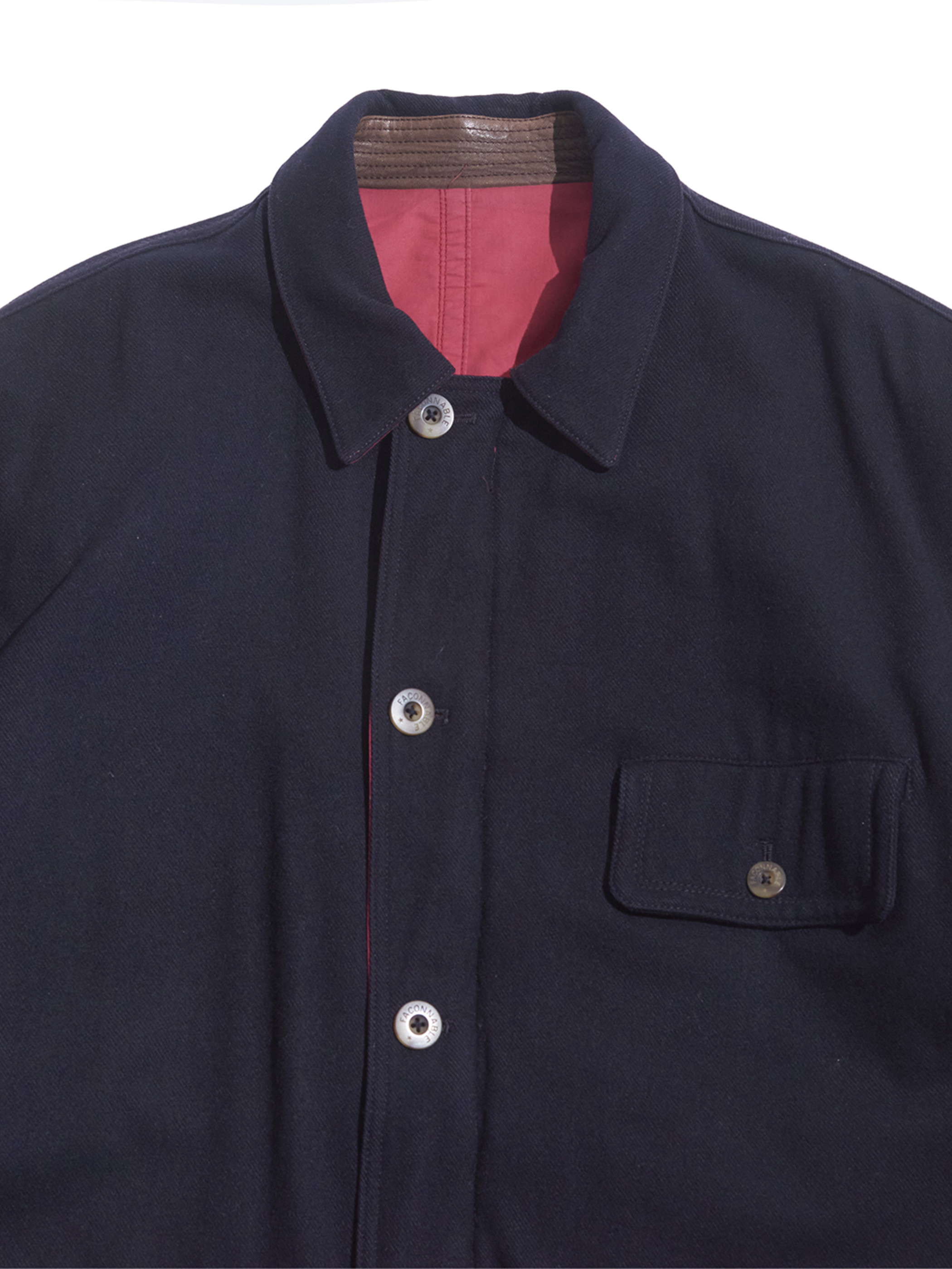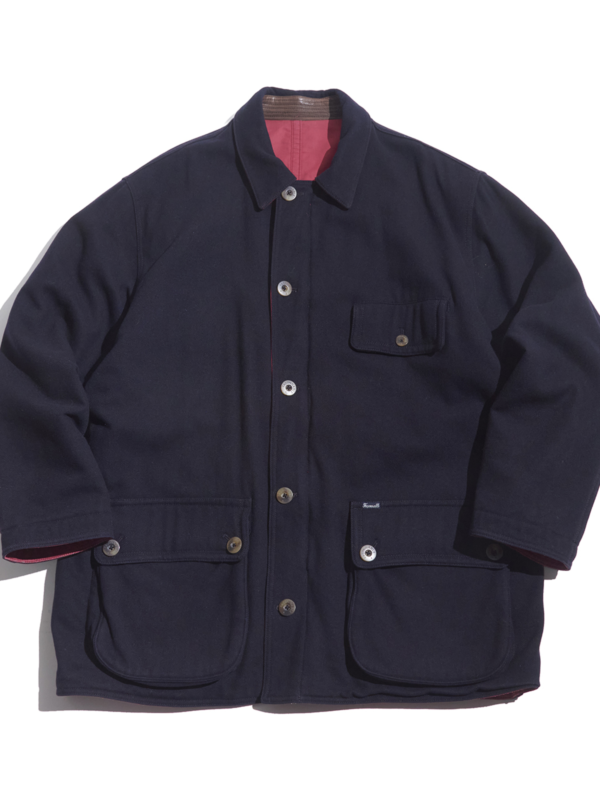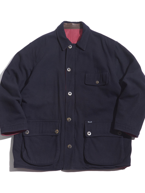 <1.21 UP> 1990s "FACONNABLE" wool × cotton reversible padding jacket -NAVY/RED-