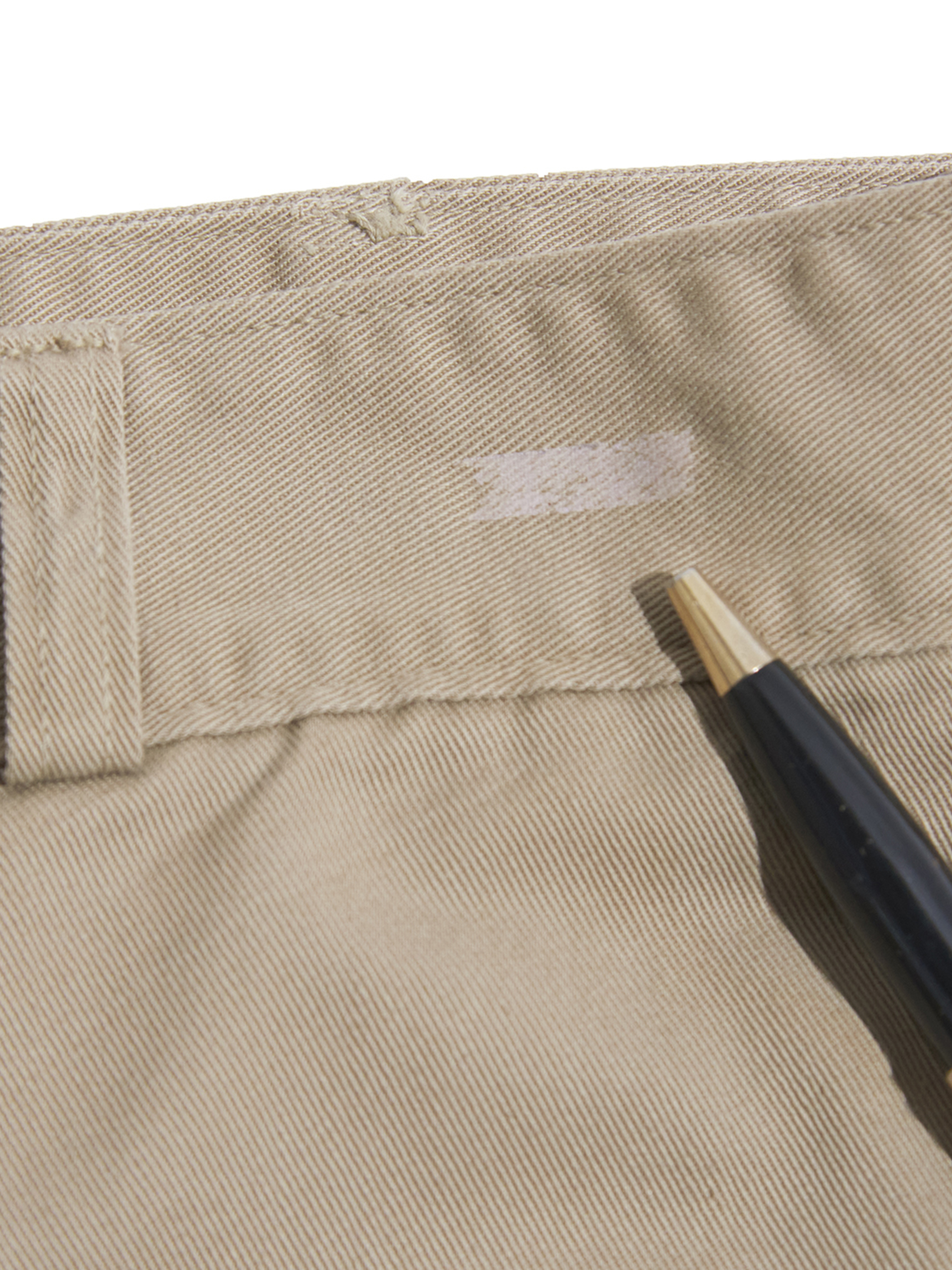 左膝付近に焼けのような汚れ箇所が見られます。