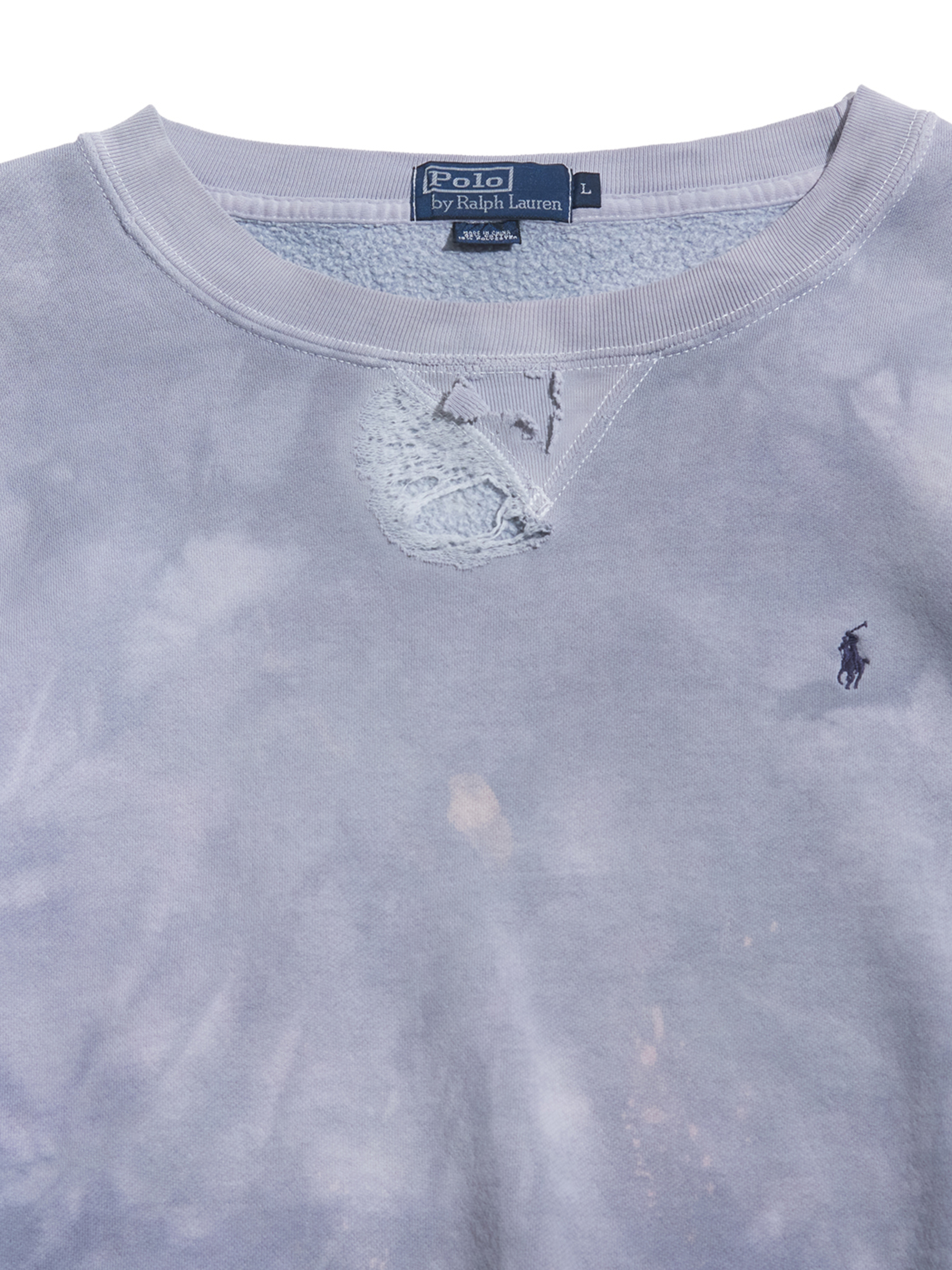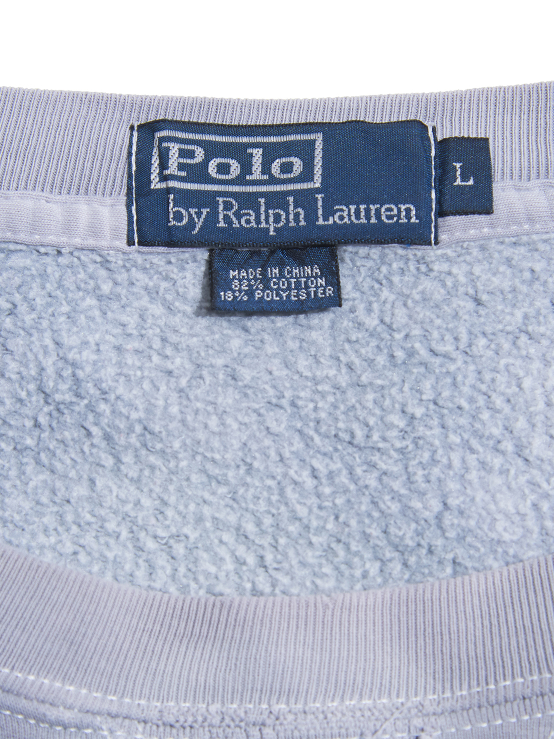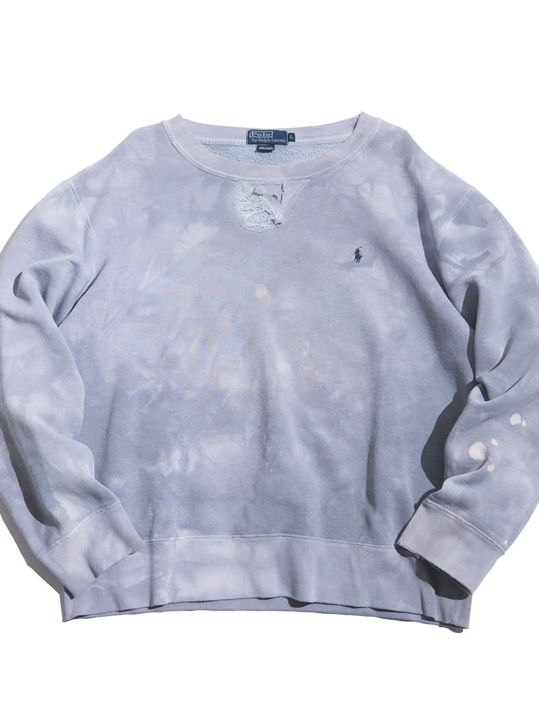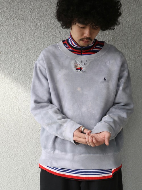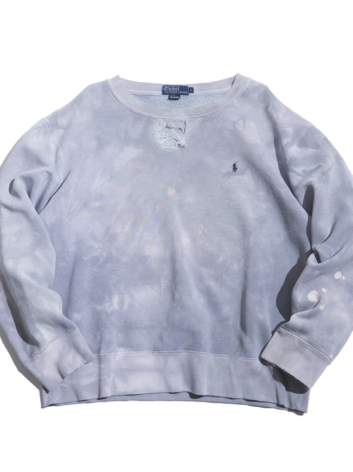 <1.21 UP> 1990s "Polo by Ralph Lauren" cotton crew neck sweat boro -FADE BLUE GREY-