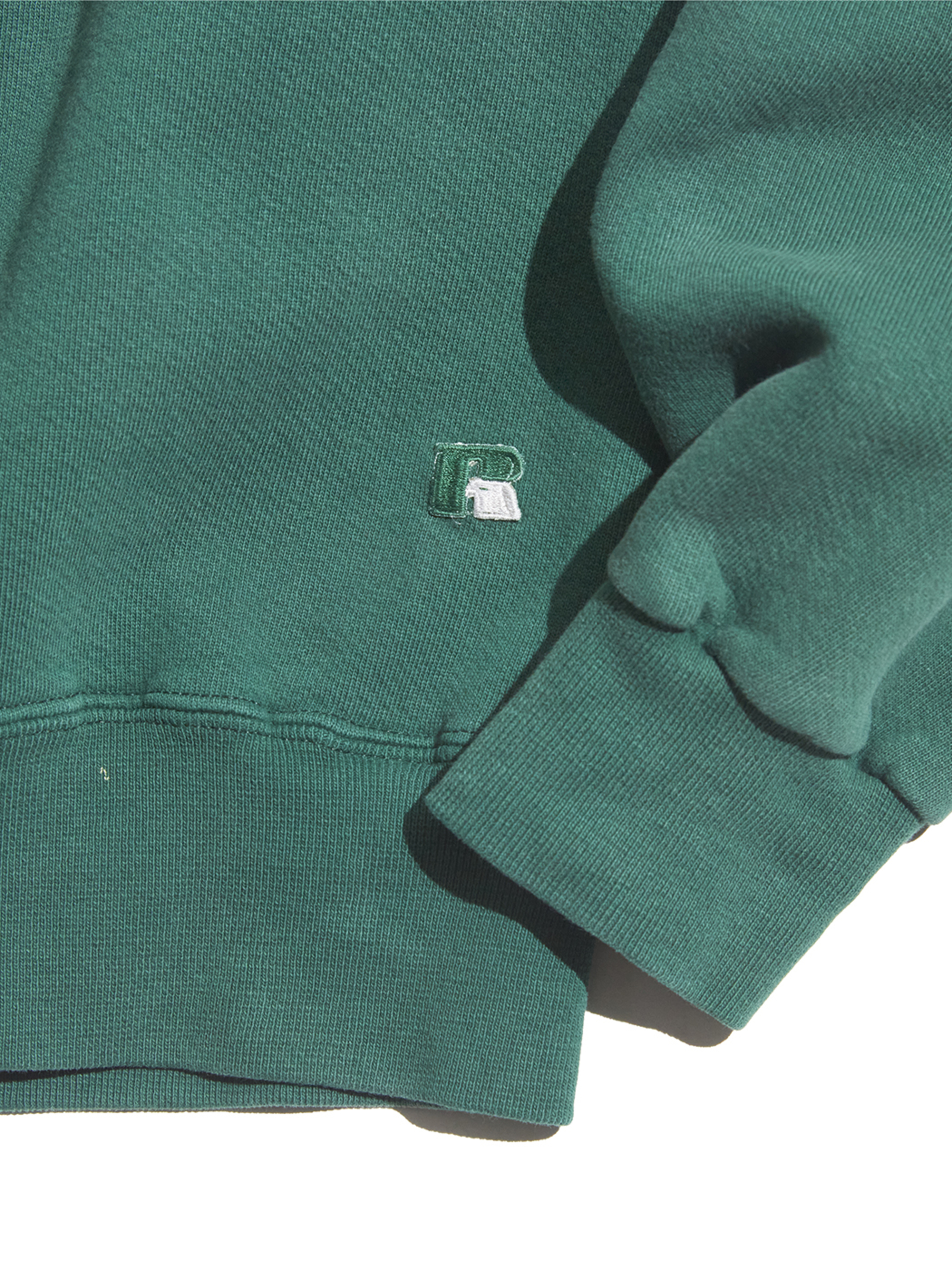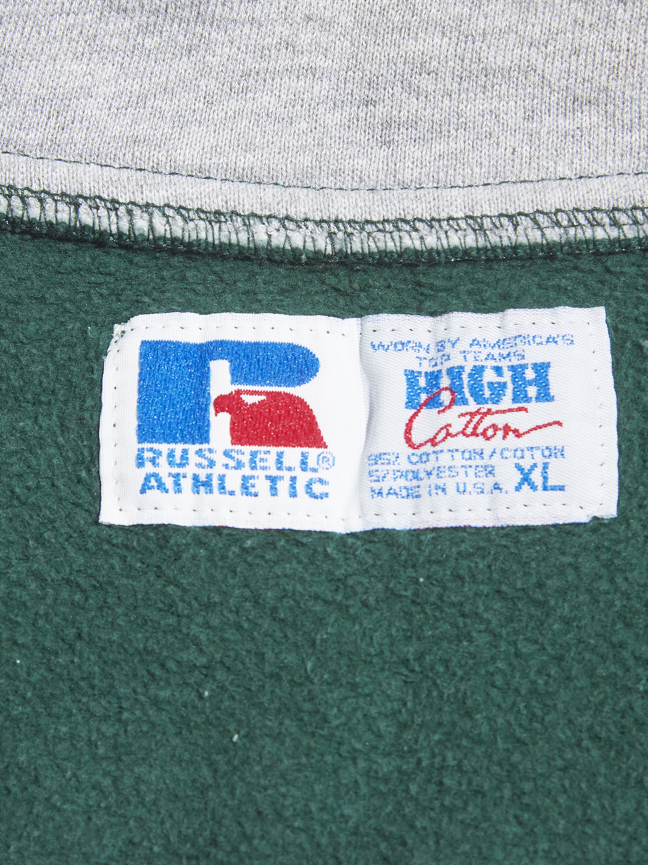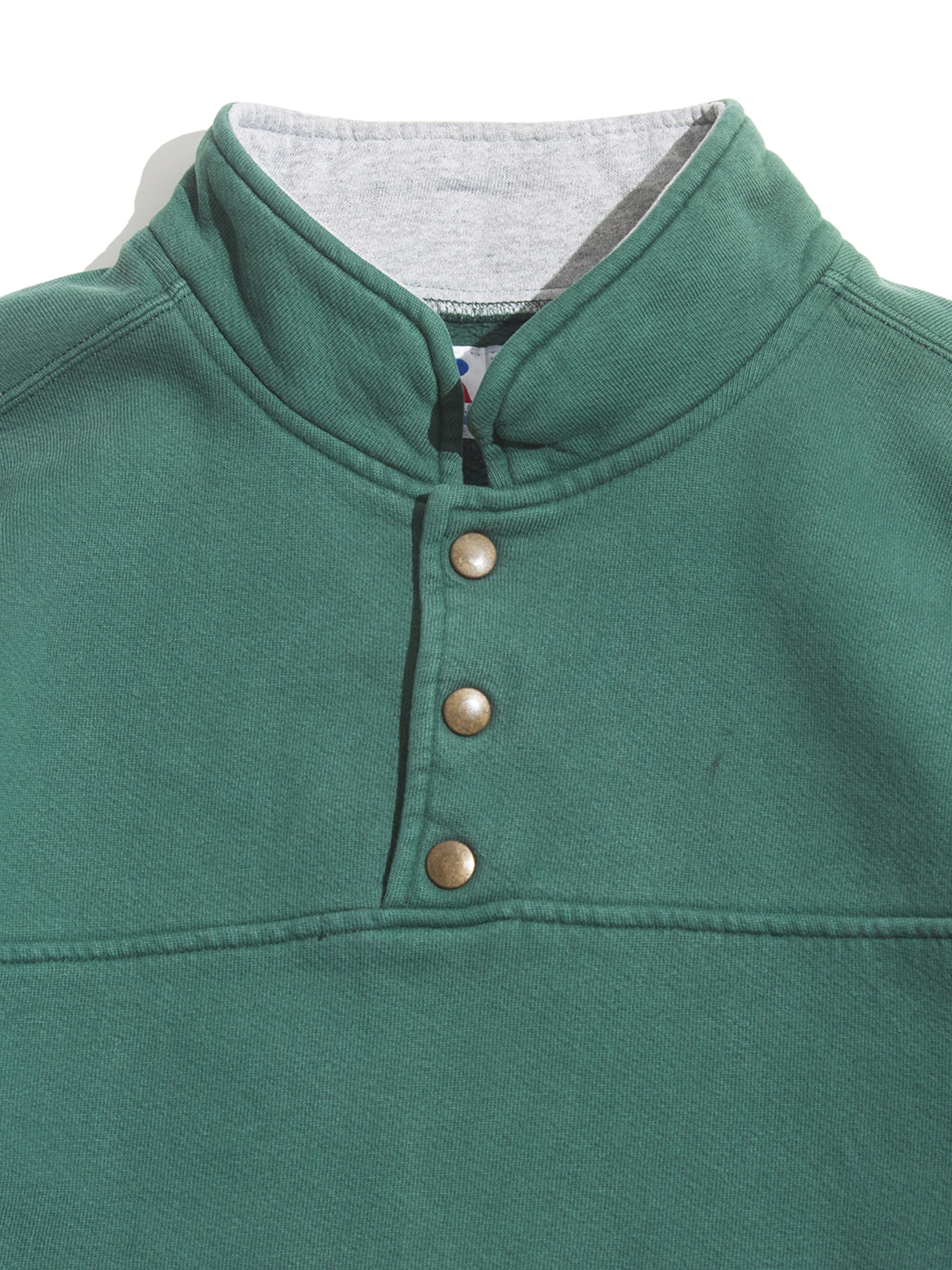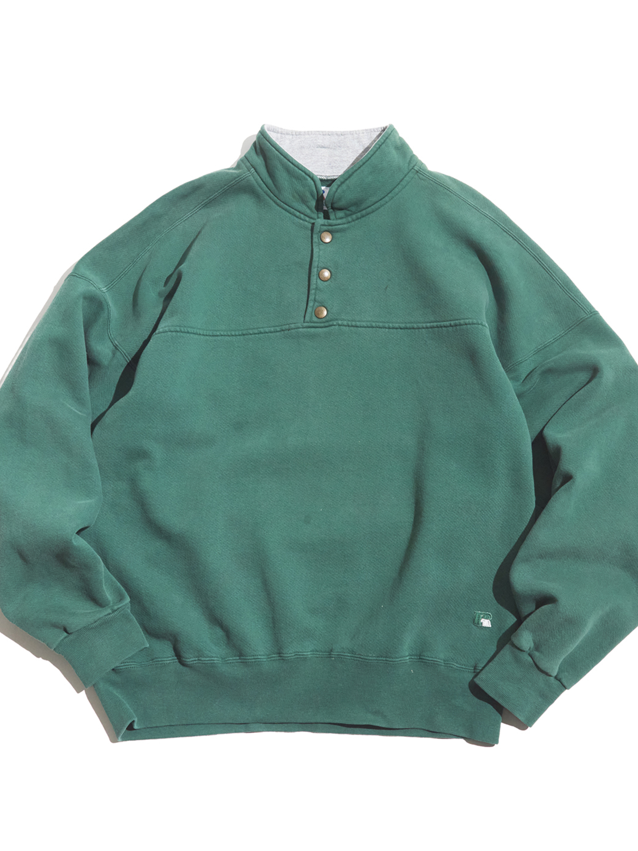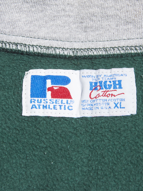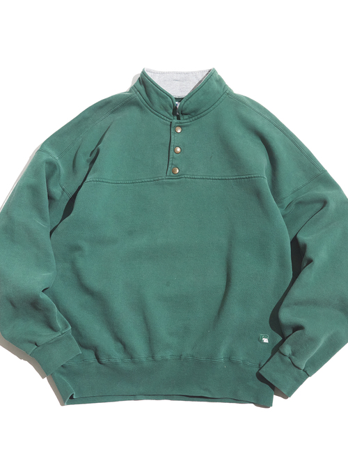 <3.4 UP> 1990s "RUSSELL ATHLETIC" HIGH Cotton half snap up pullover sweat -GREEN-