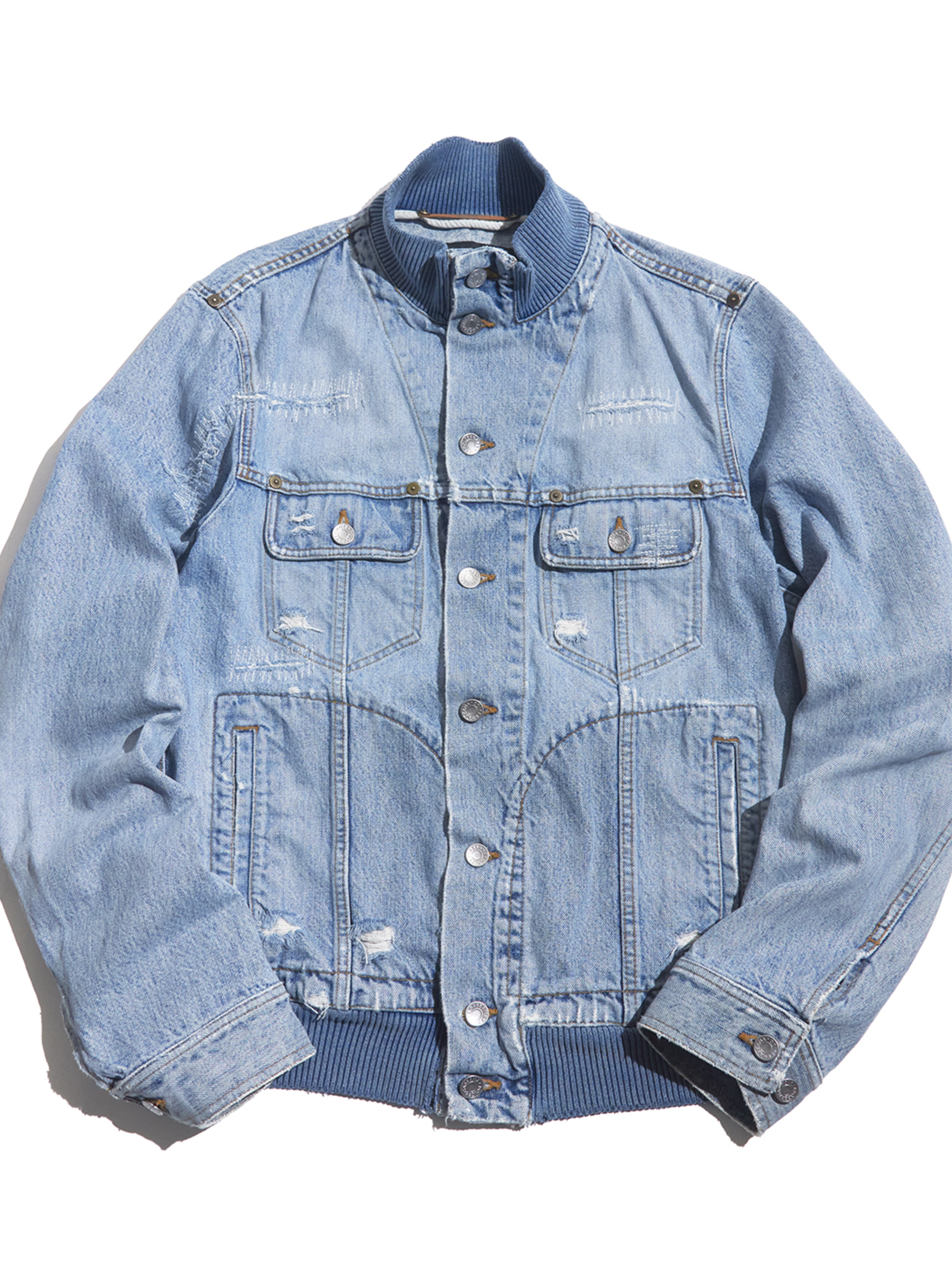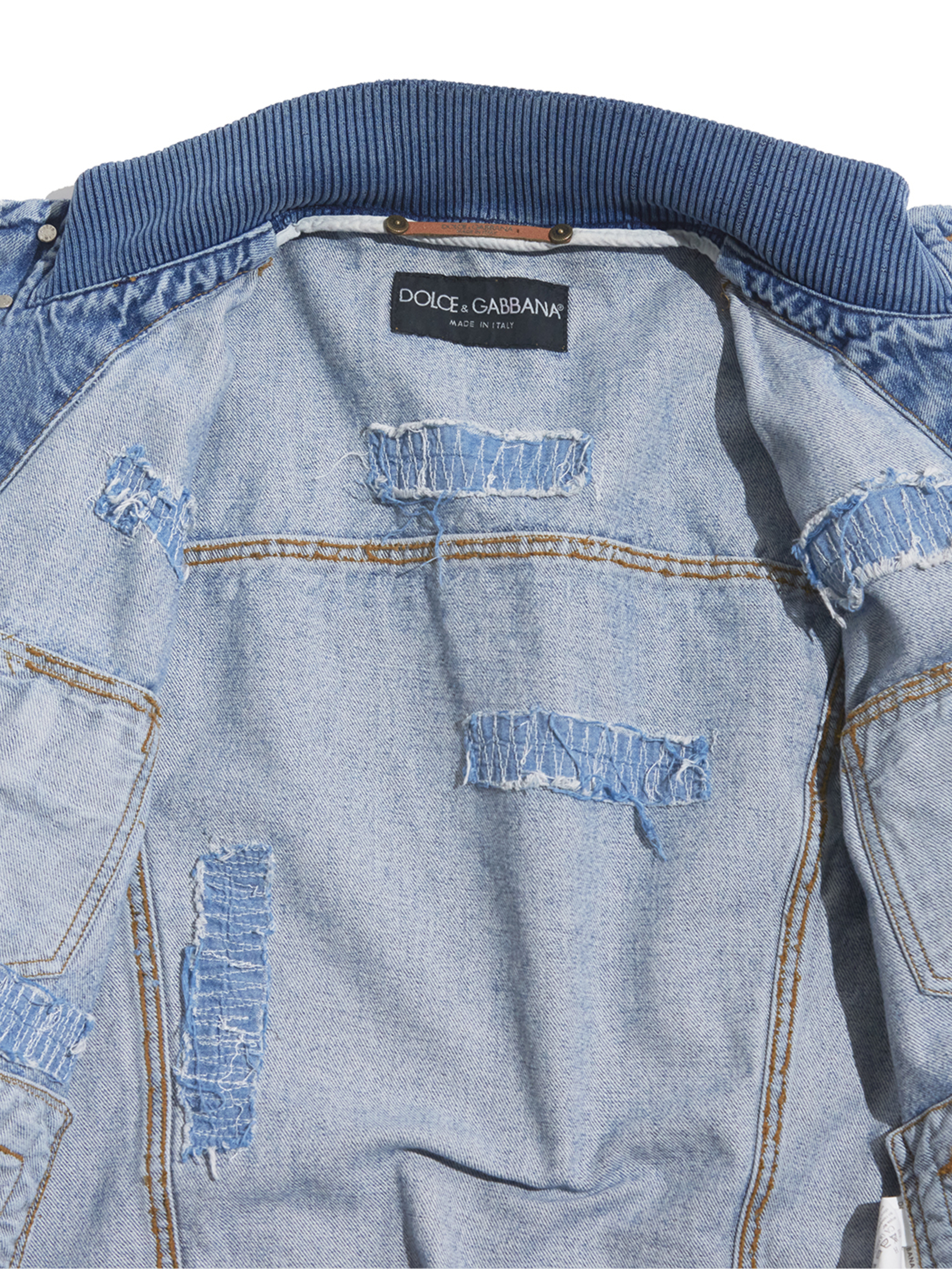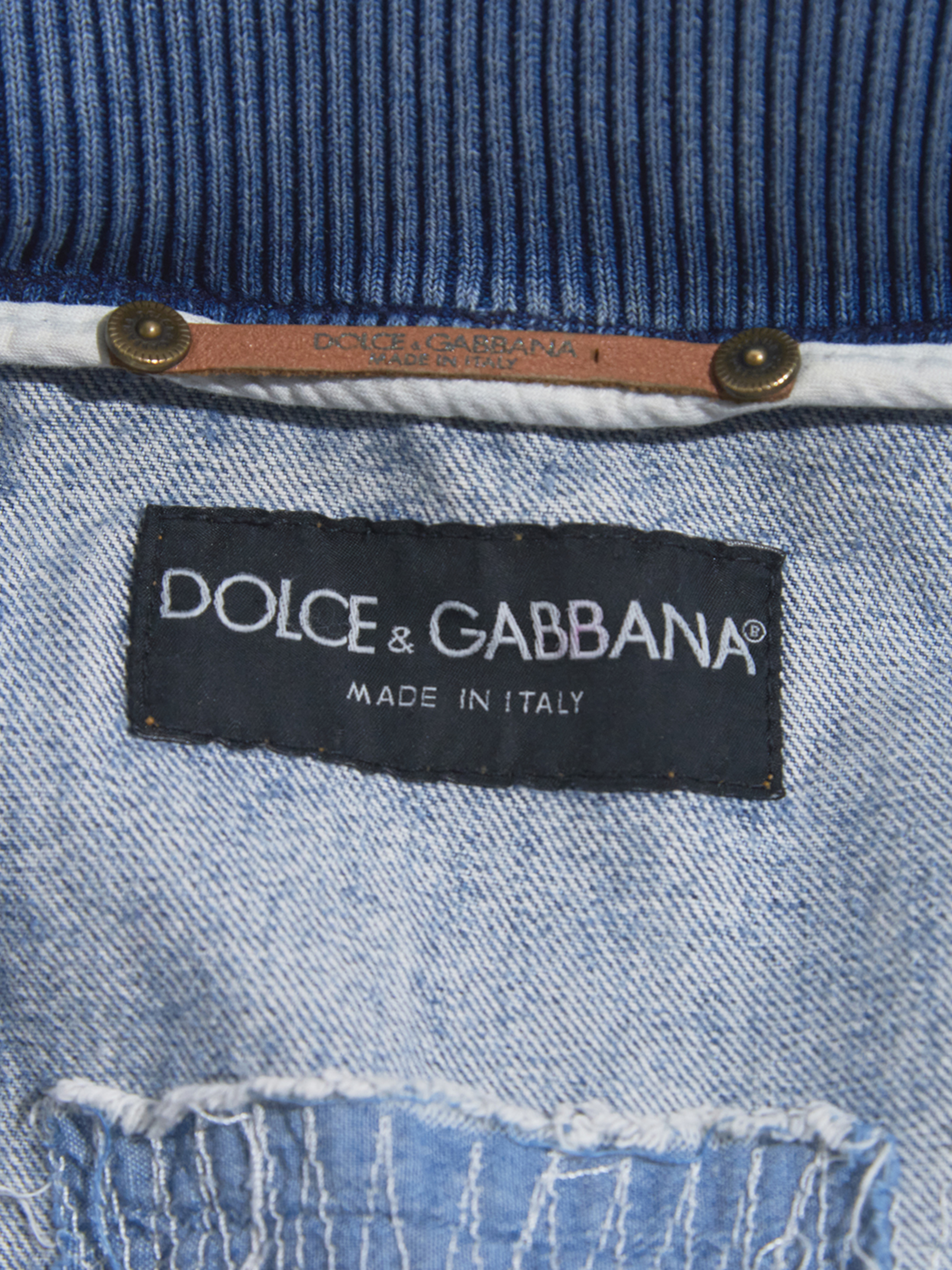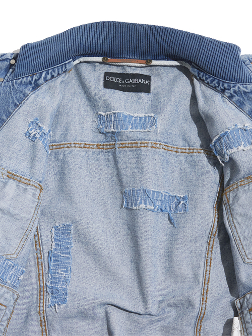 <SOLD OUT> 2000s "DOLCE&GABBANA" distressed design hi-neck denim jacket -FADE INDIGO-
