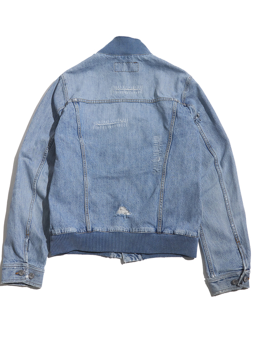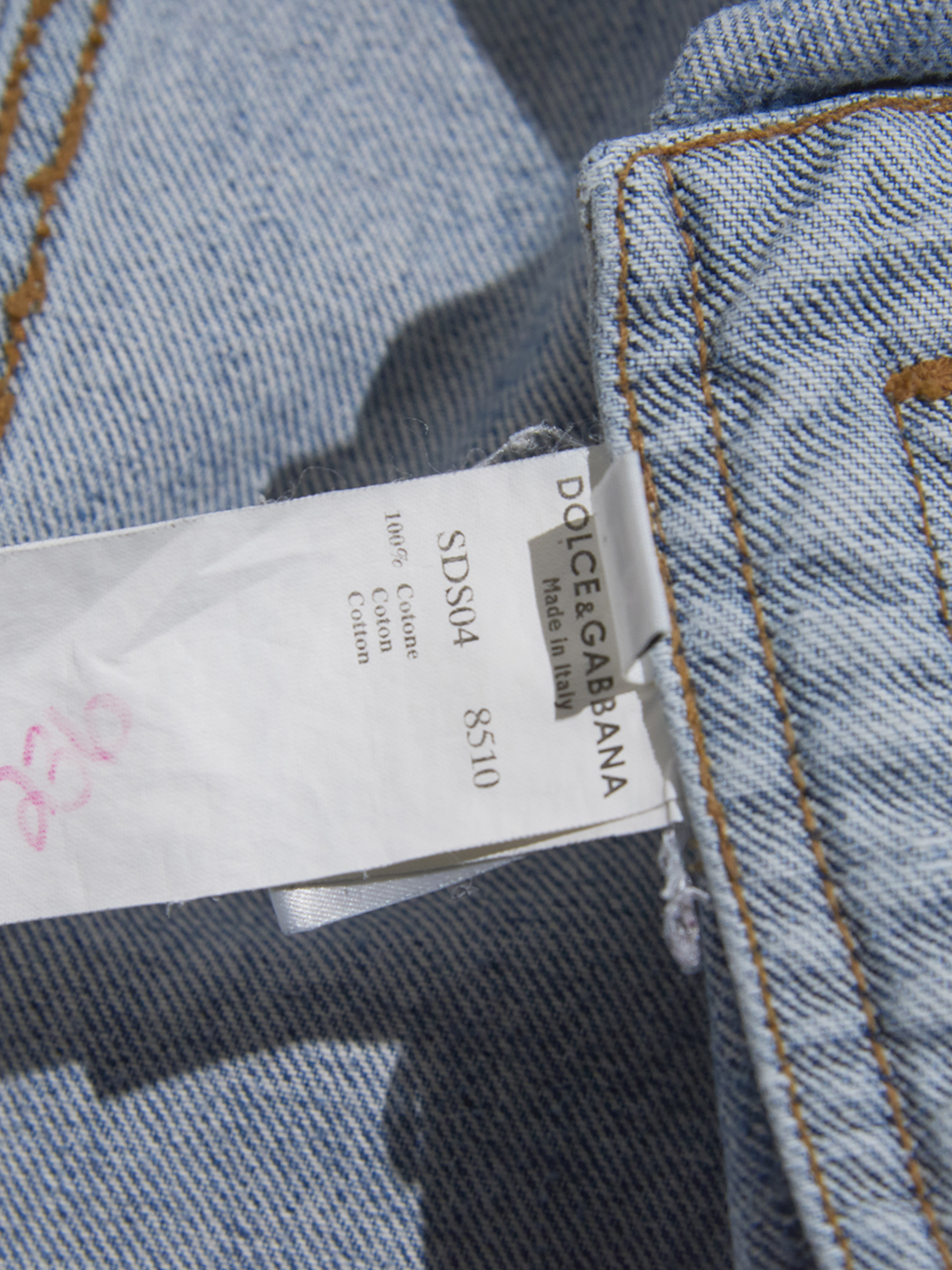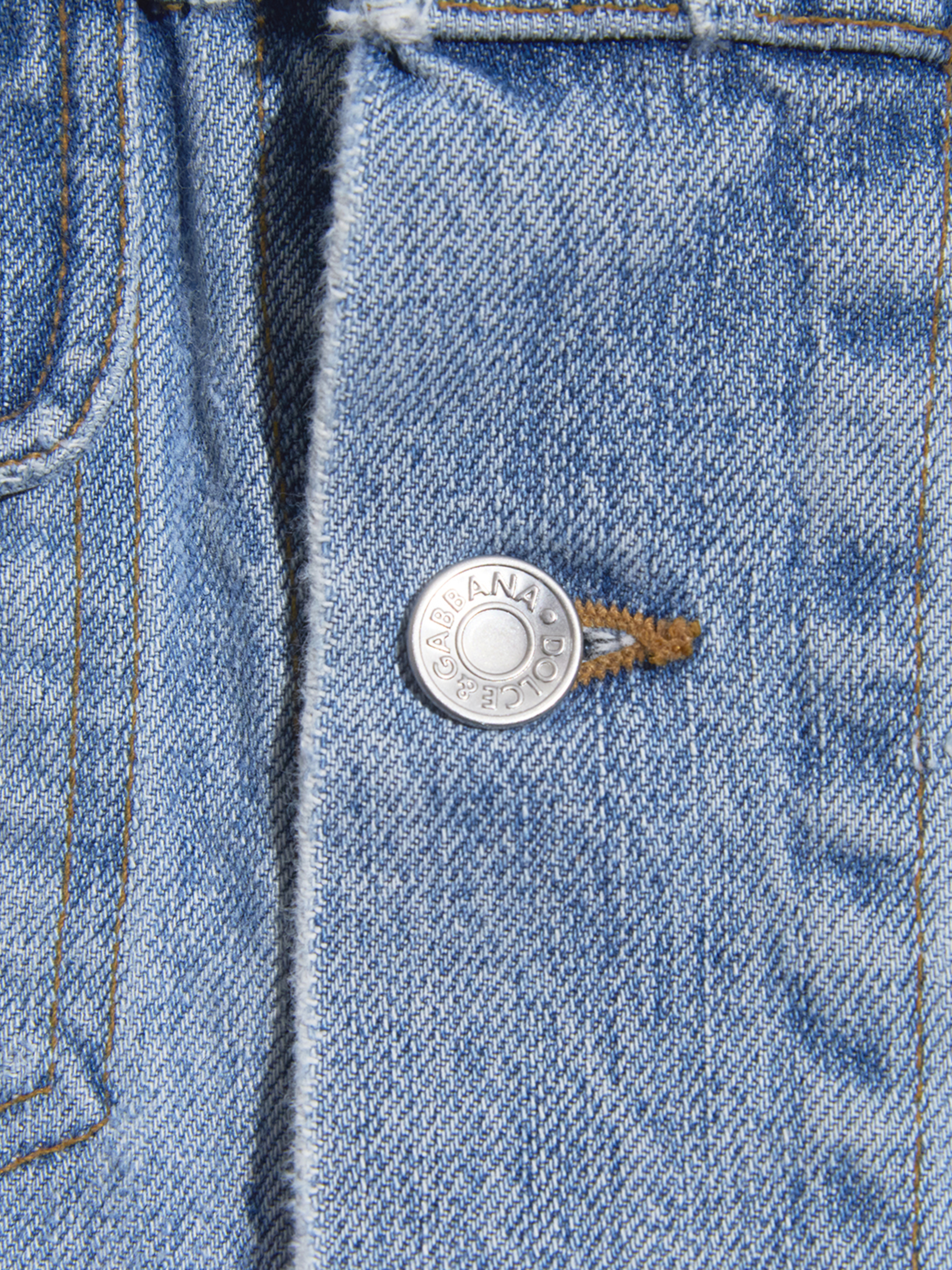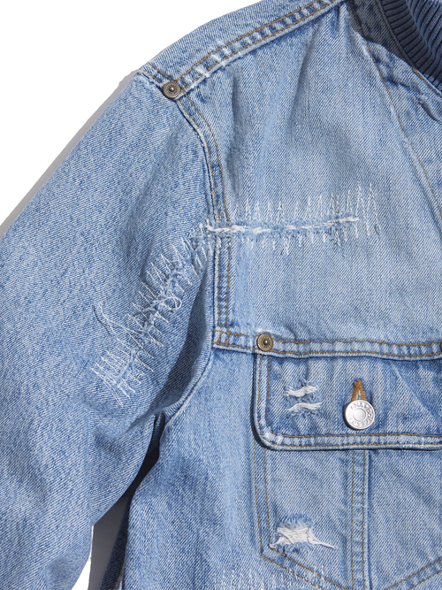 <SOLD OUT> 2000s "DOLCE&GABBANA" distressed design hi-neck denim jacket -FADE INDIGO-
