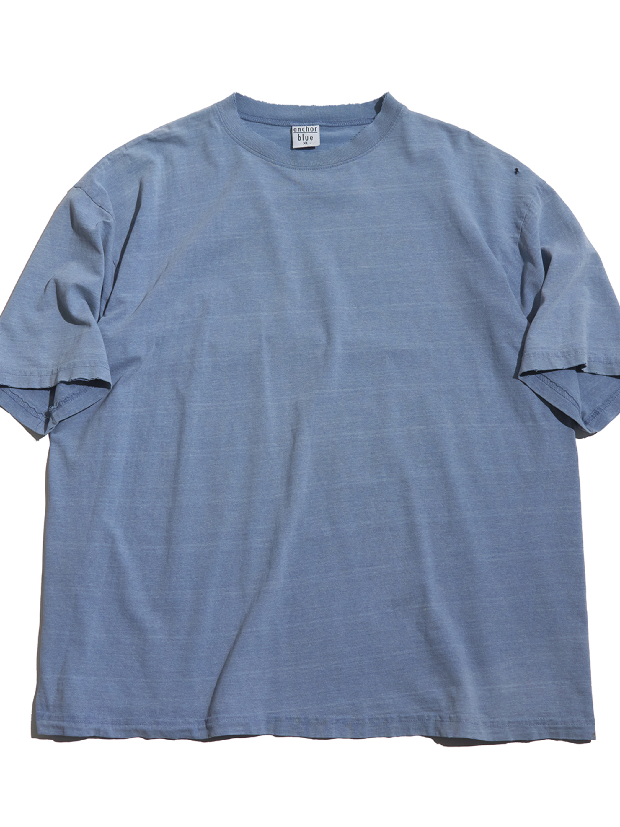 <3.18 UP> Late 1990s "Anchor Blue" cotton blank tee boro -FADE ASH BLUE-