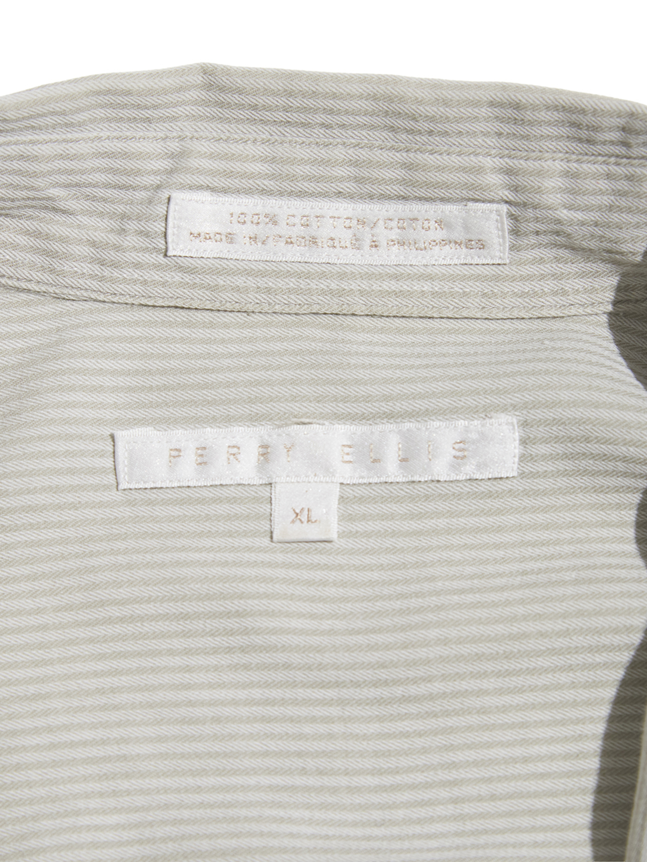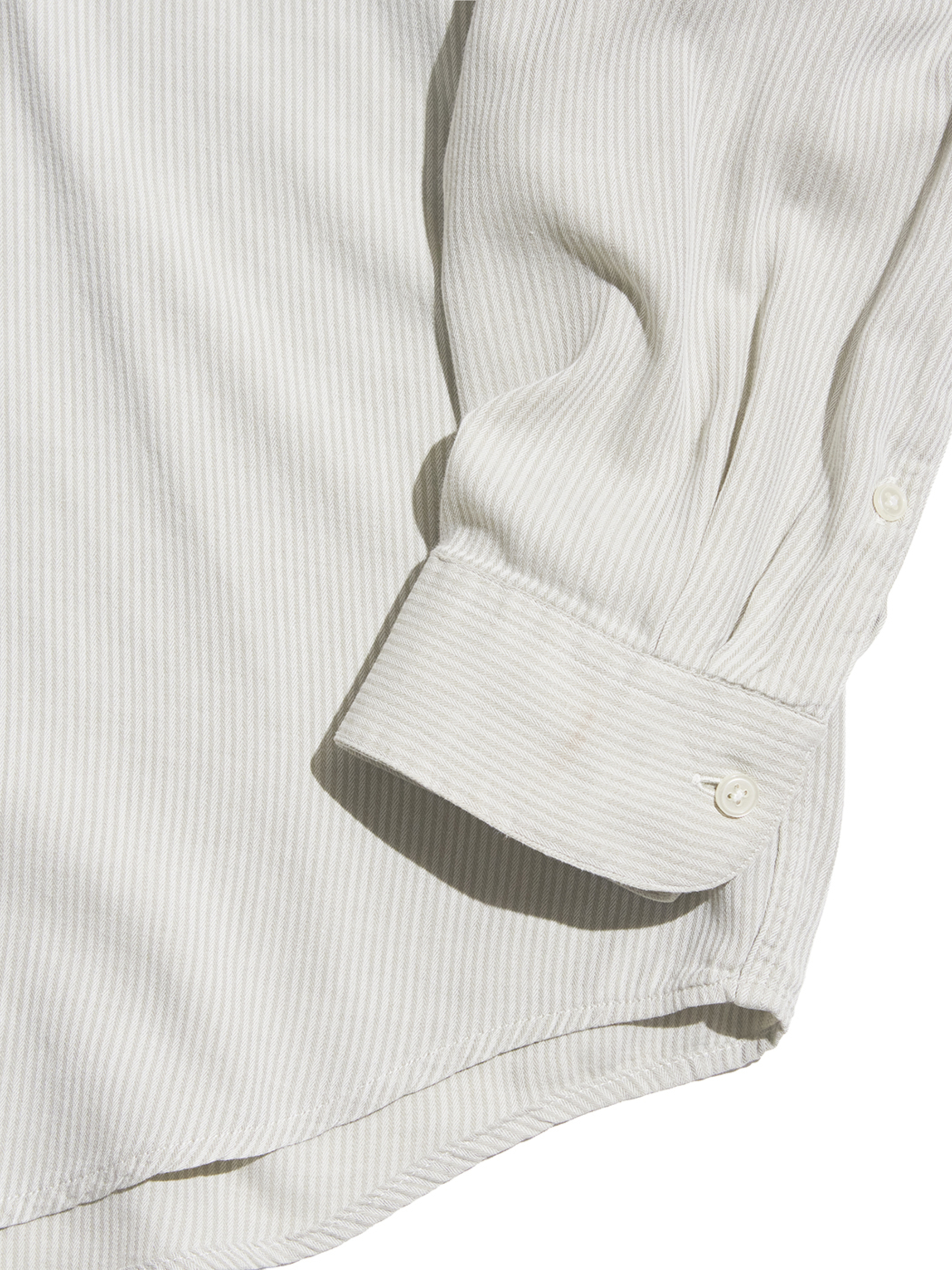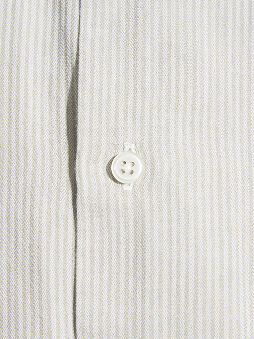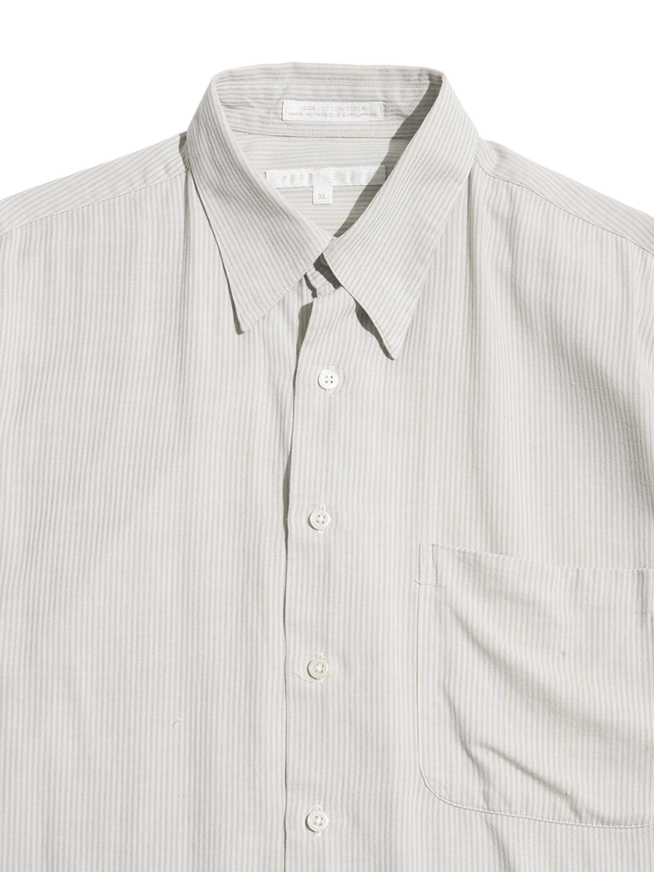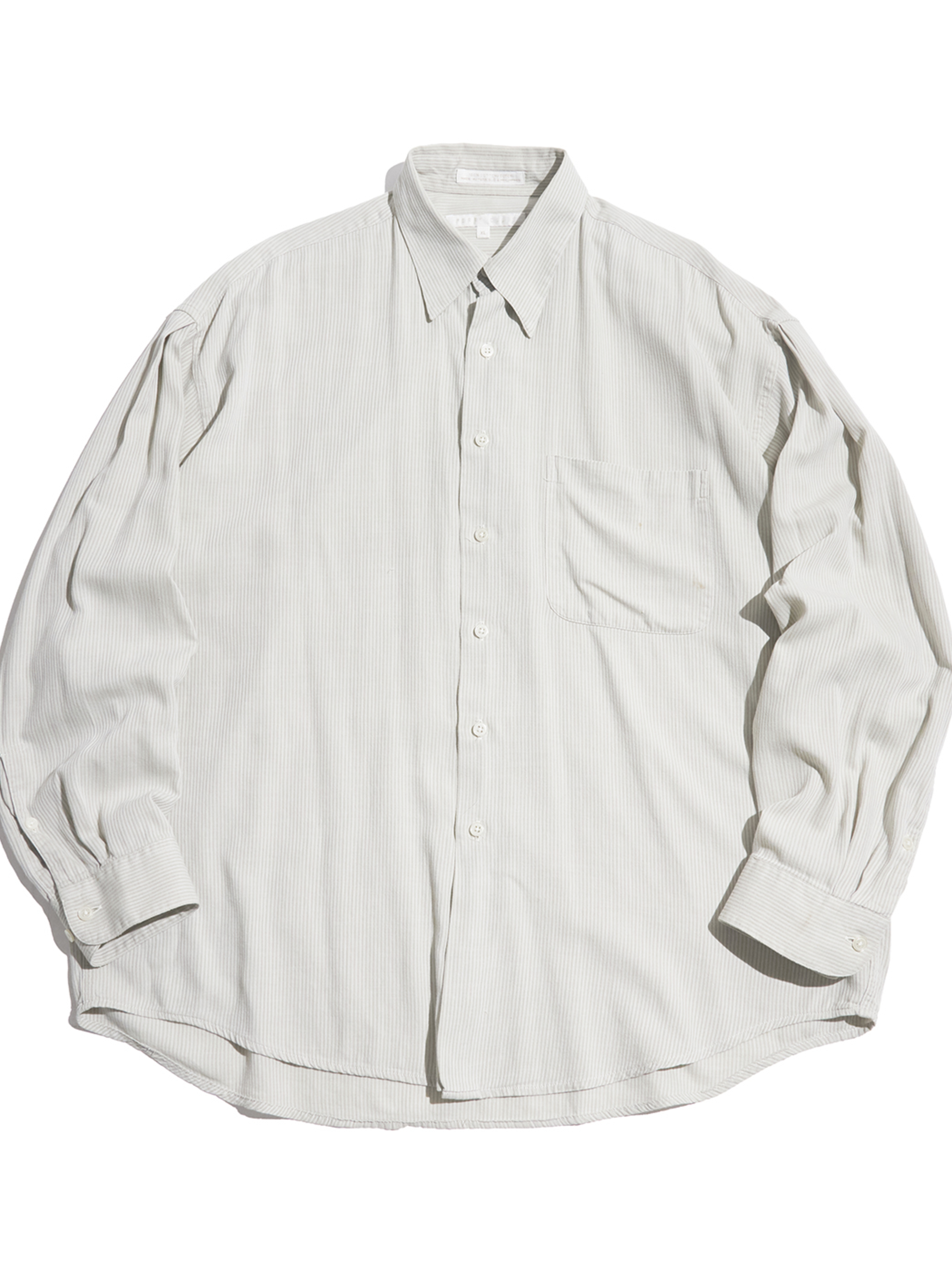 <3.25 UP> 1990-2000s "PERRY ERRIS" cotton herringbone striped snap down shirt -PALE GREY-