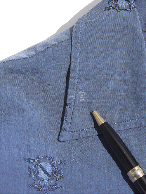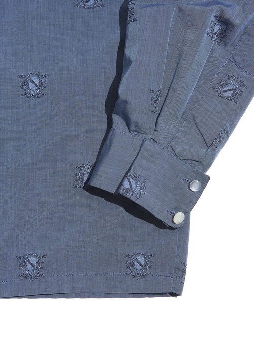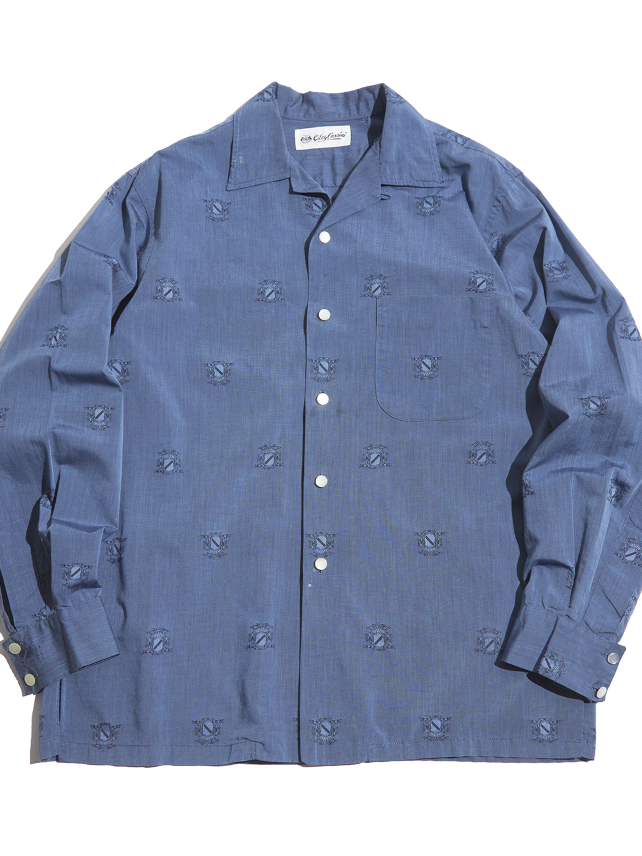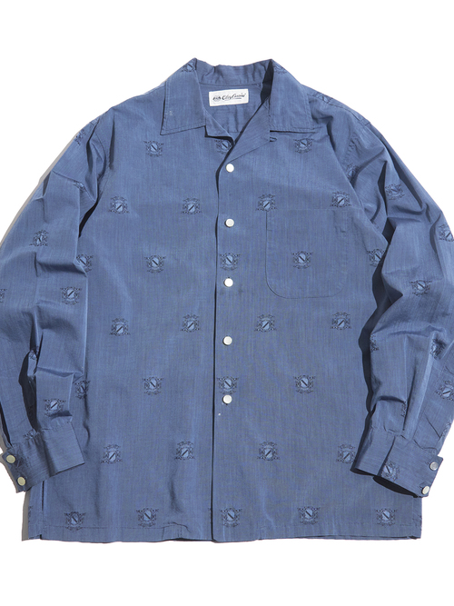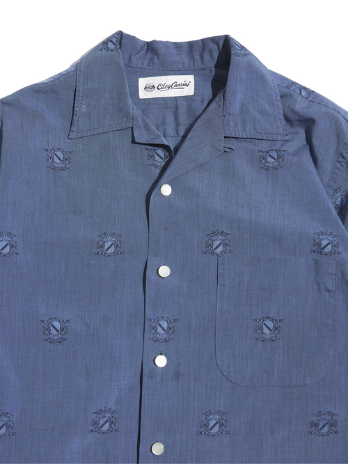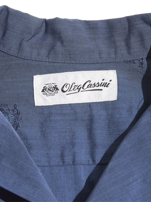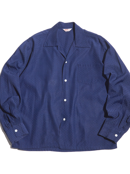 <4.6 UP> 1960s "Oleg Cassini" cotton / silk? open collar shirt -ASH NAVY-