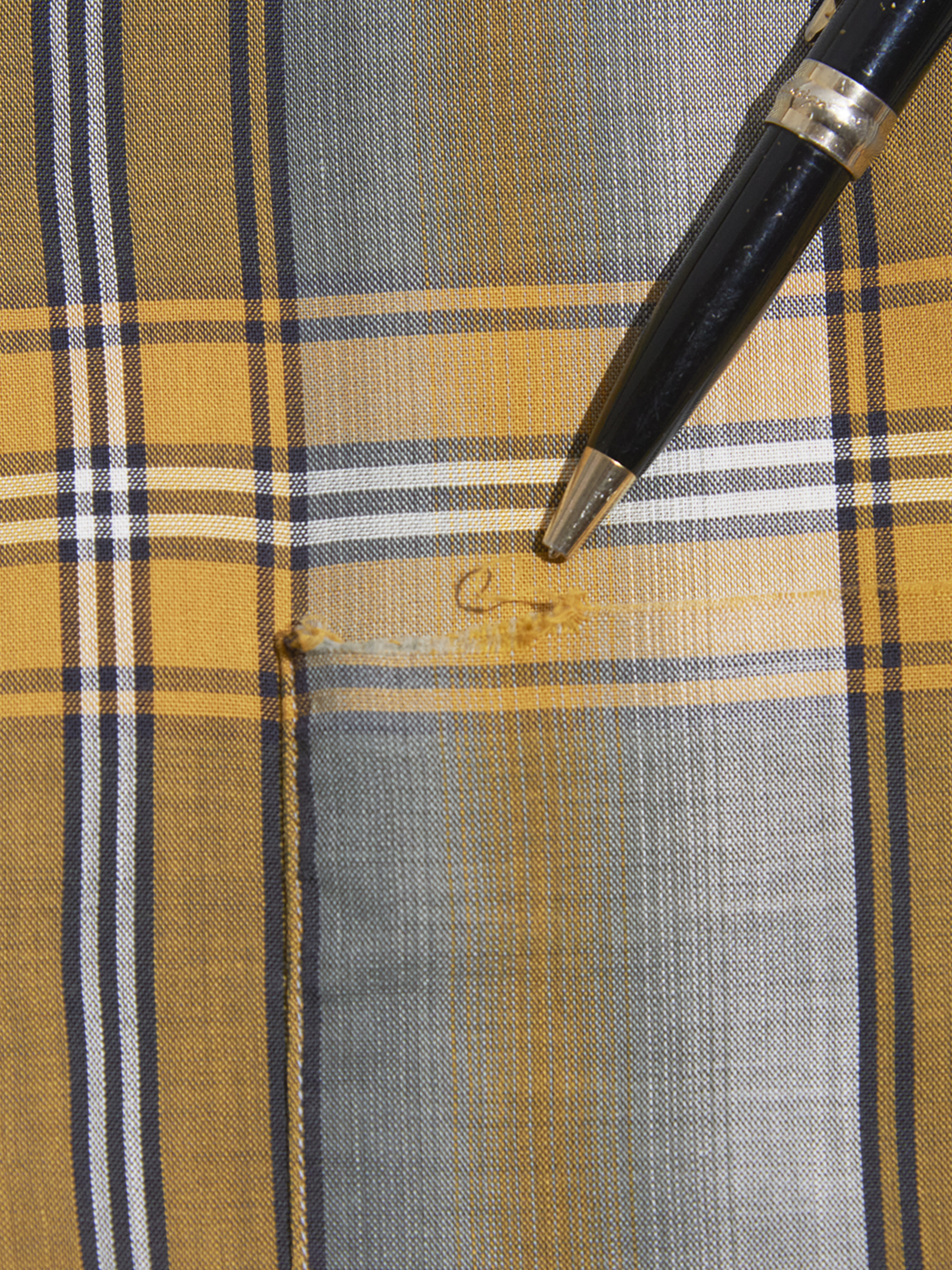 胸ポケット縁に擦れによるダメージがございます。