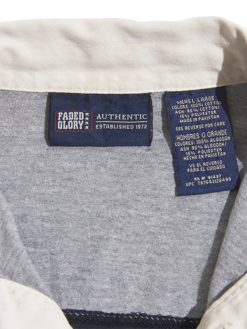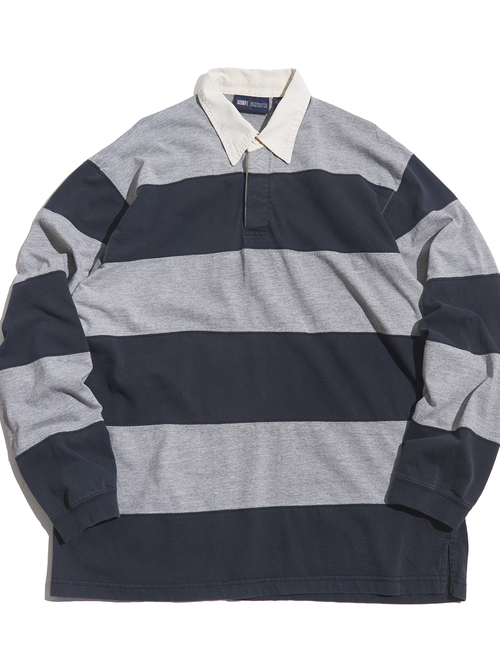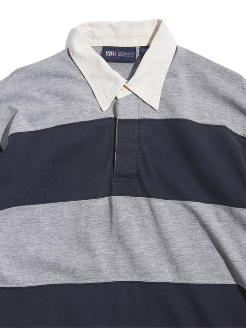 <SOLD OUT> 1990s "FADED GLORY" cotton border Rugger shirt -GREY/Dk NAVY-