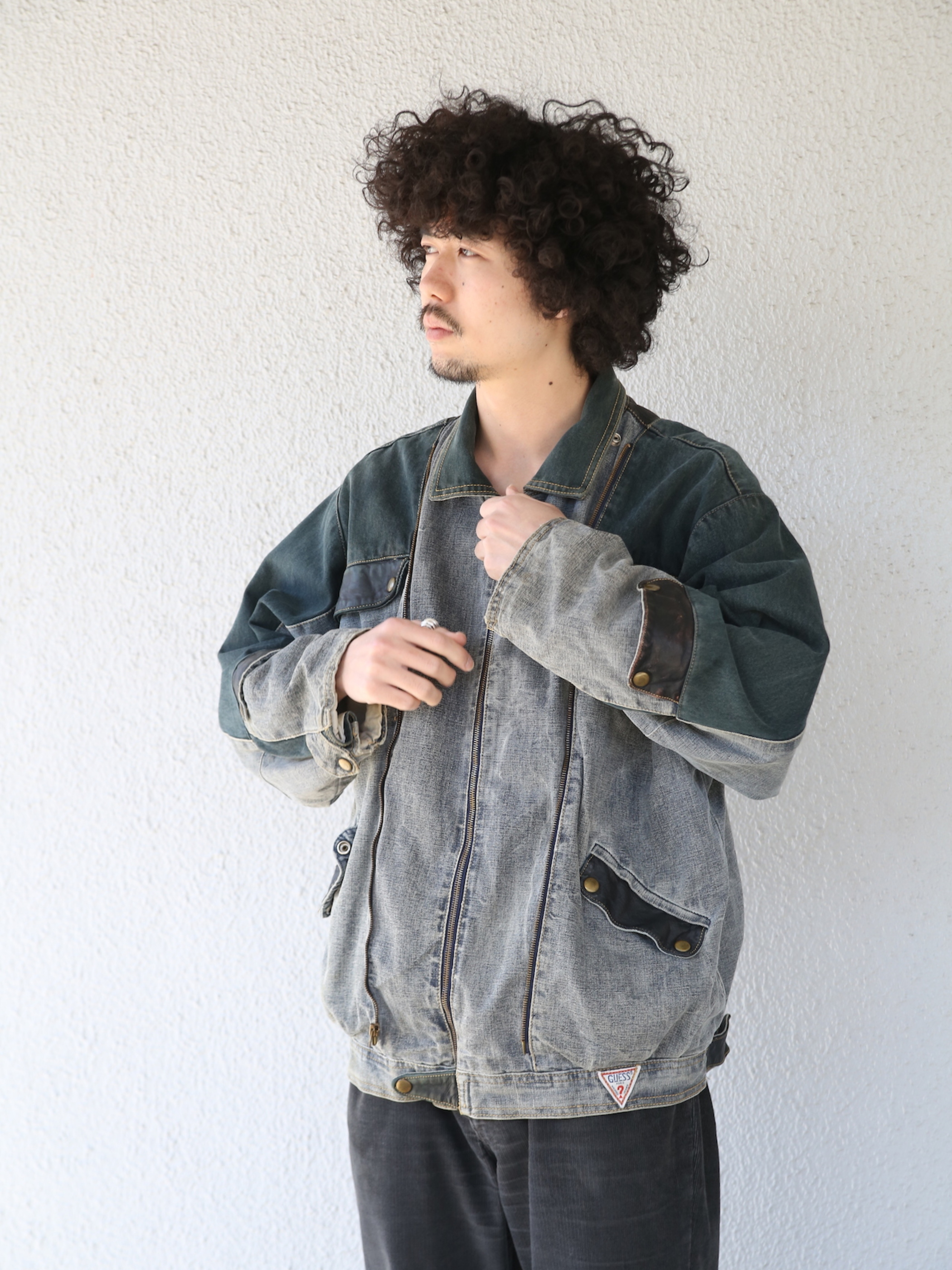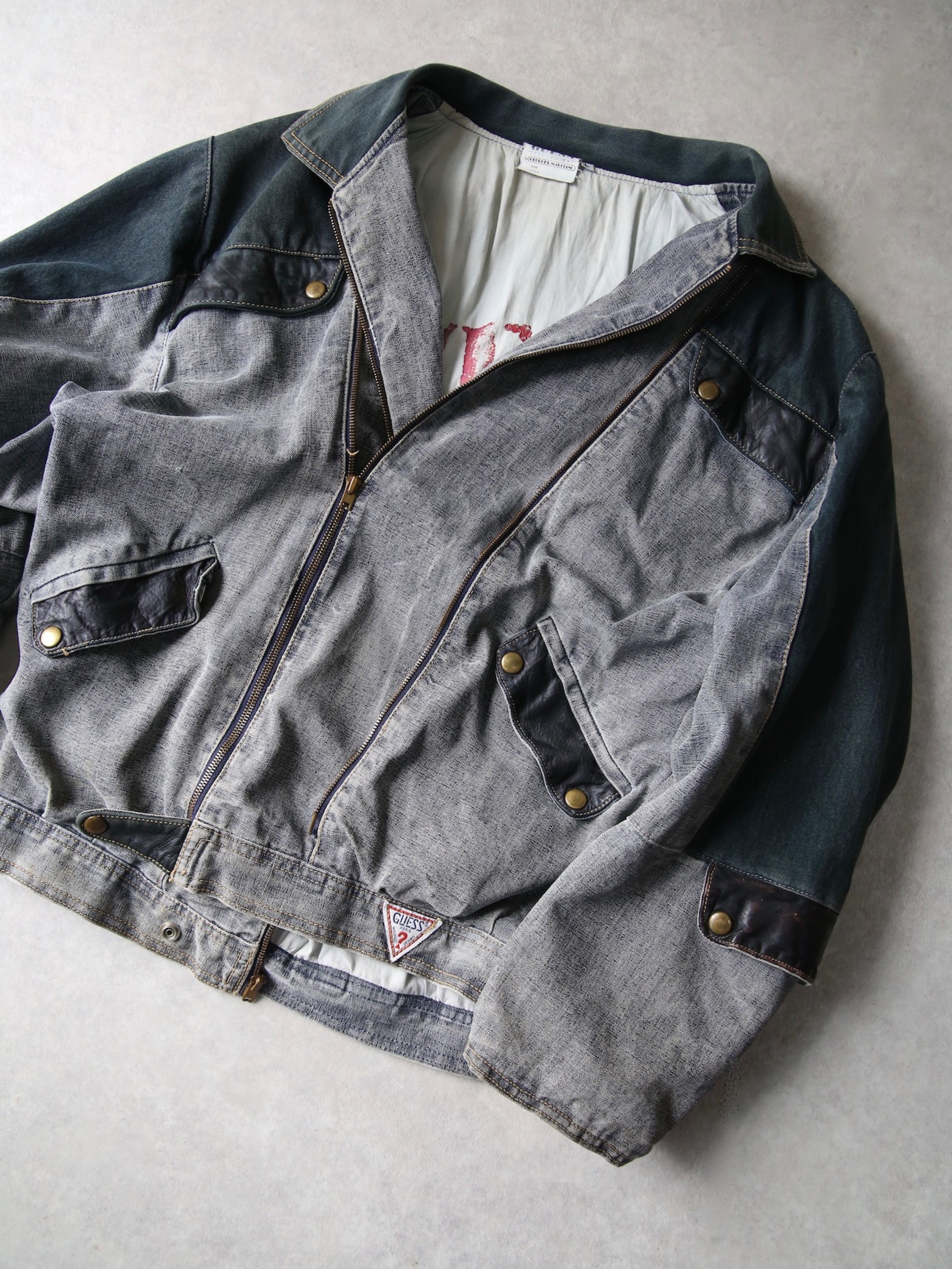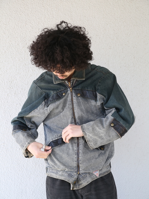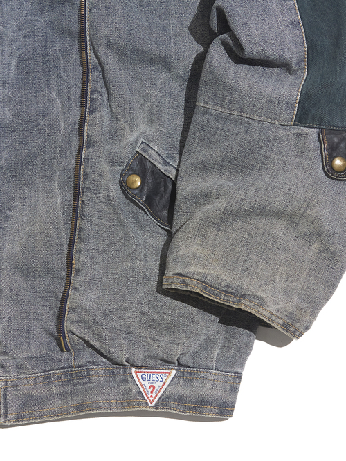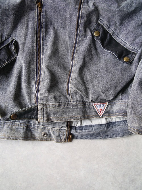 <4.14 UP> 1980s "GUESS" cotton canvas multi gimmick zip up jacket -GREY-