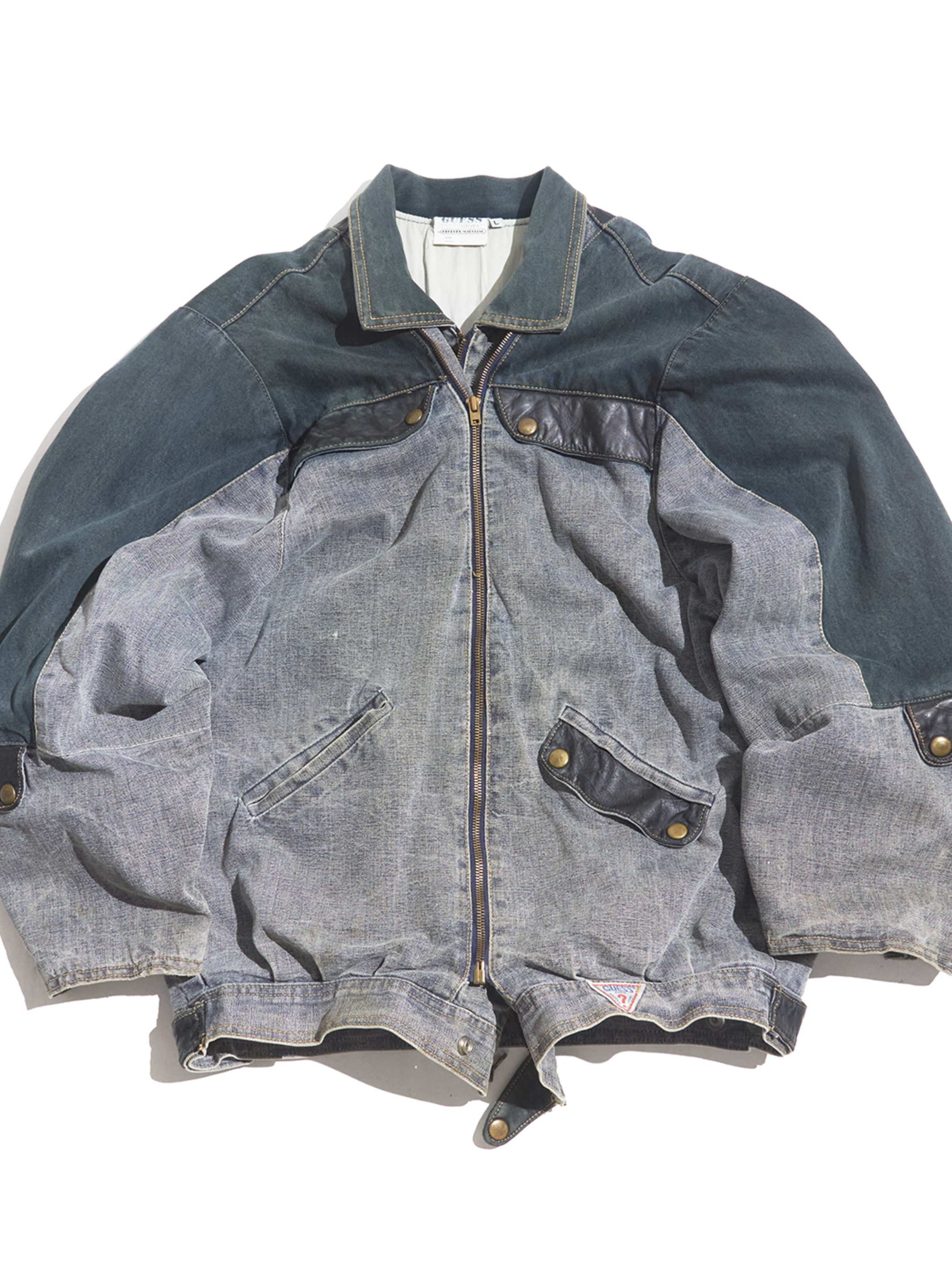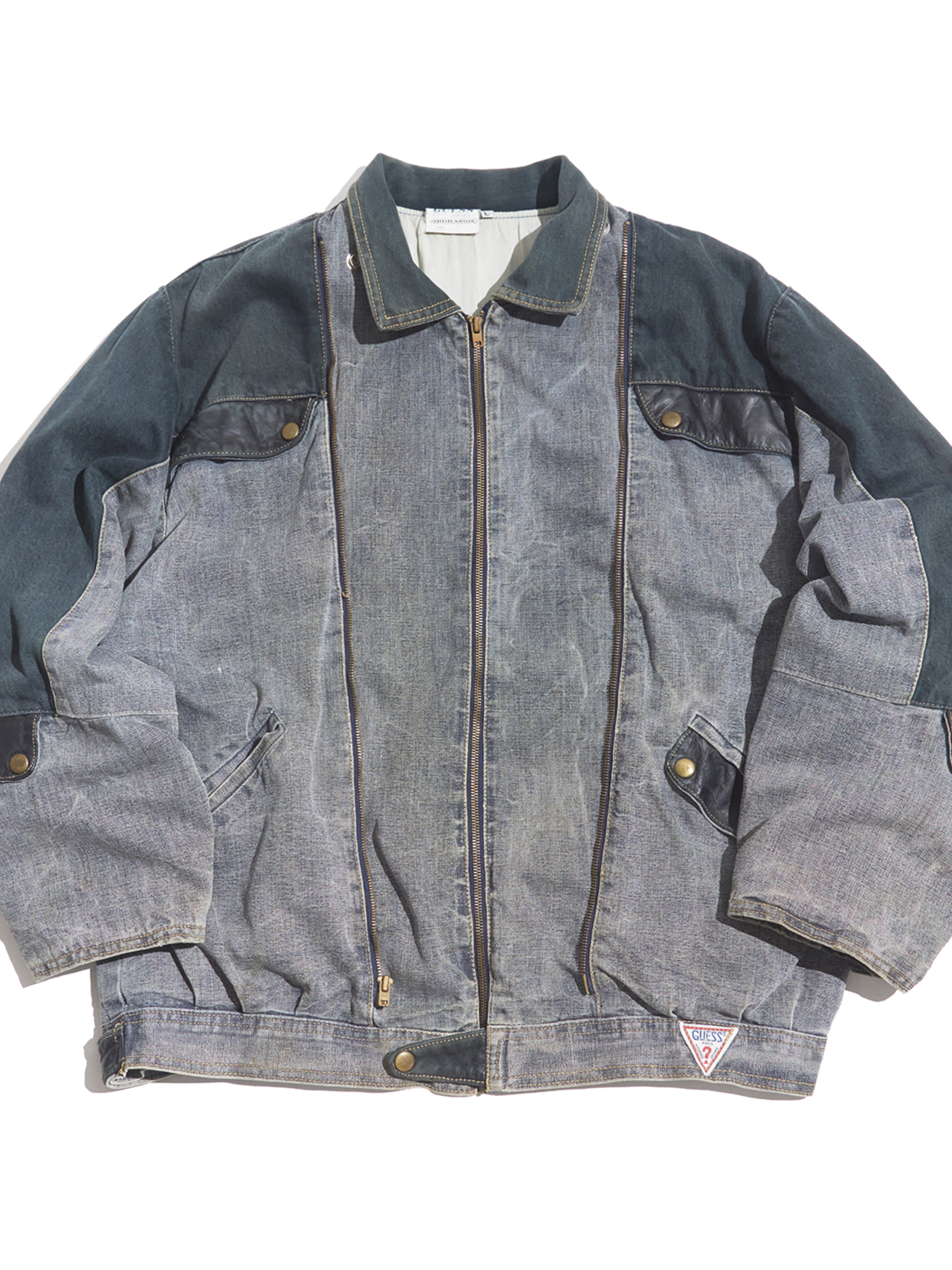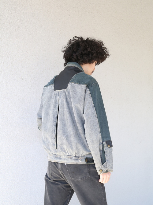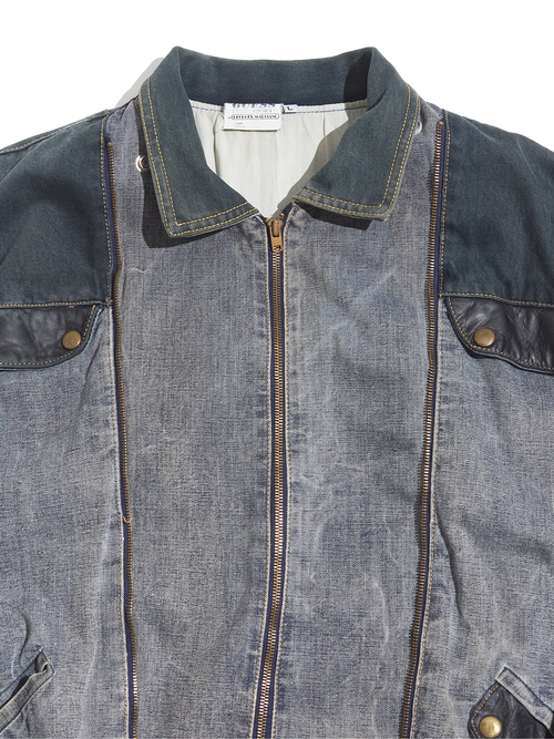 <4.14 UP> 1980s "GUESS" cotton canvas multi gimmick zip up jacket -GREY-
