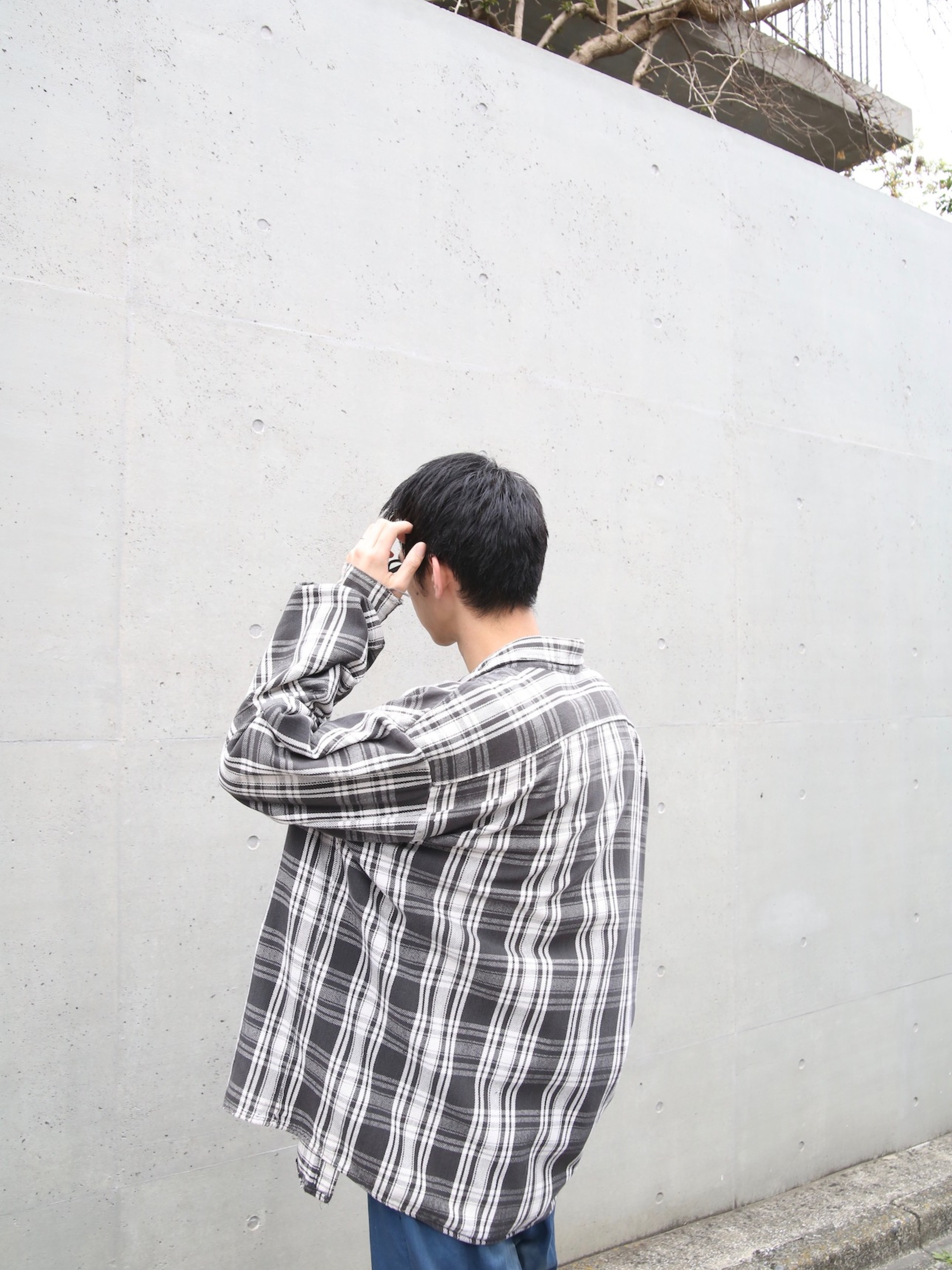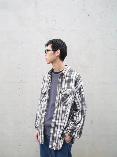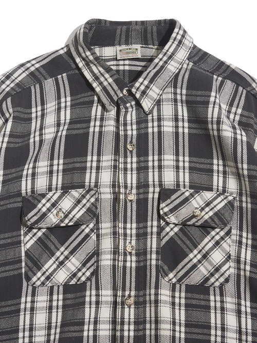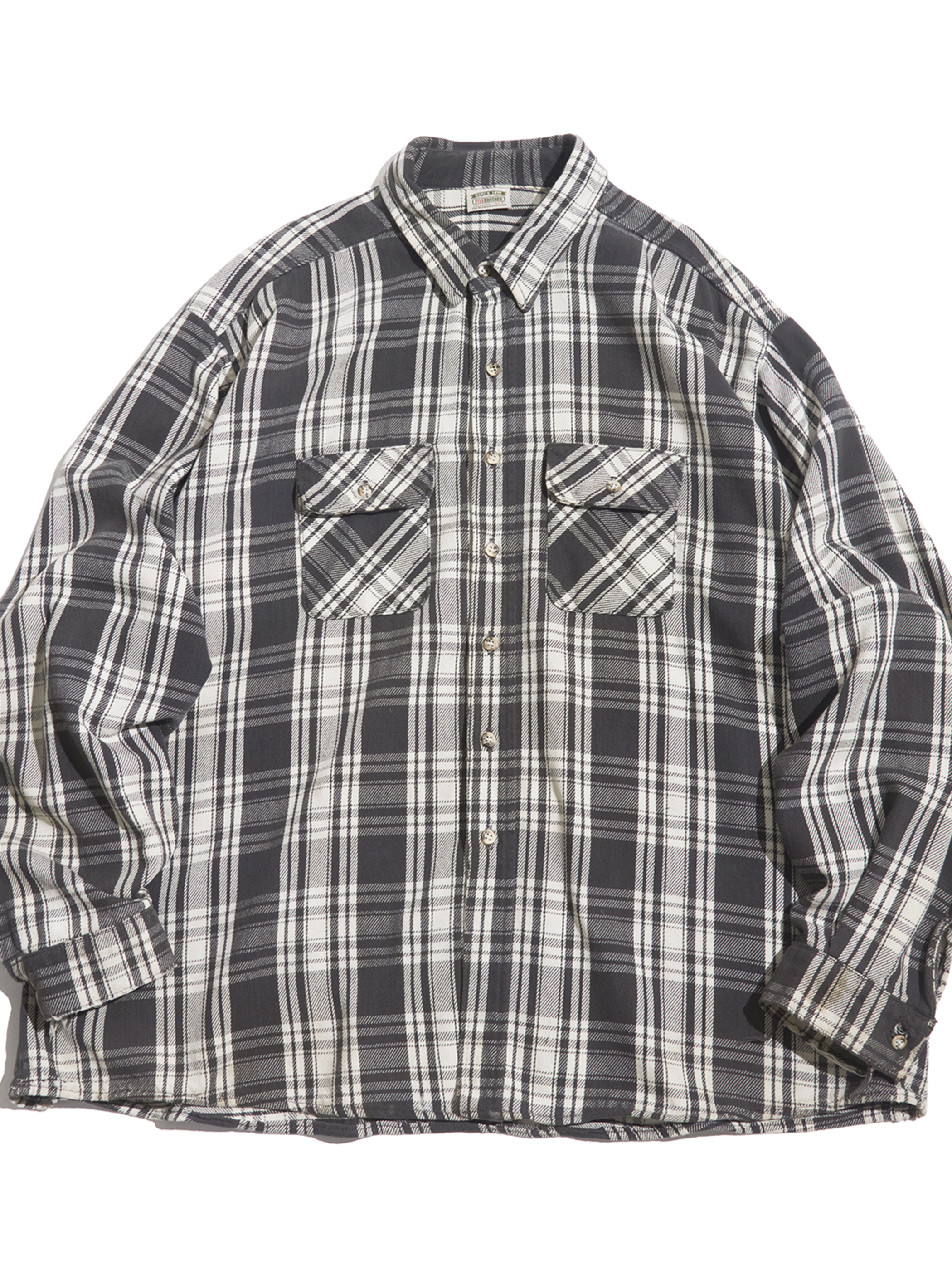 <4.15 UP> 1990s "FIVE BROTHER" big size flannel check shirt -BLACK/WHITE-