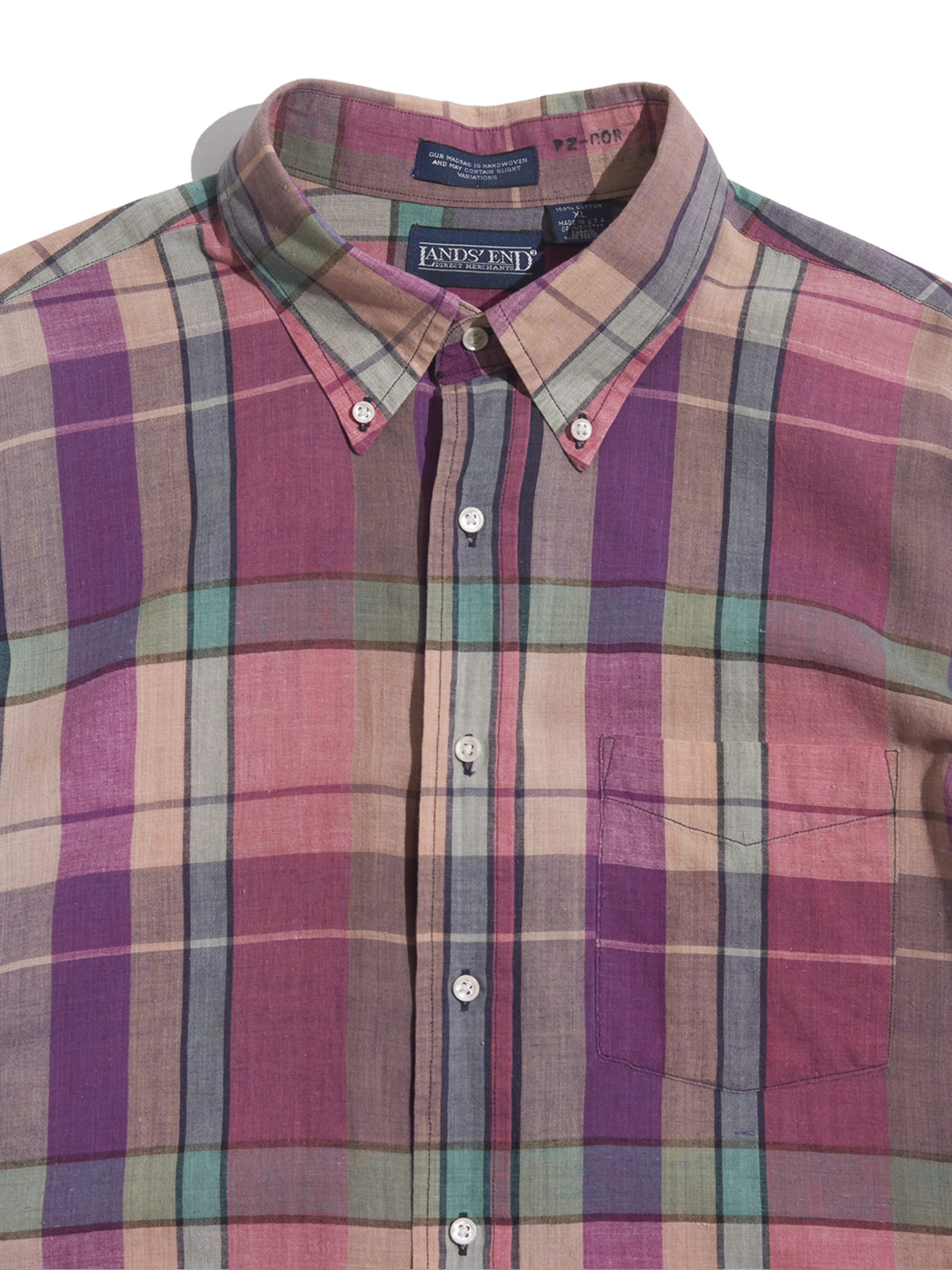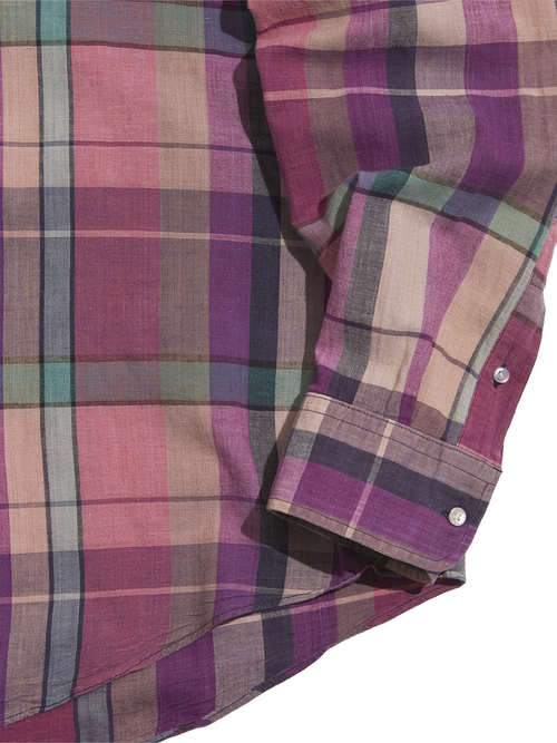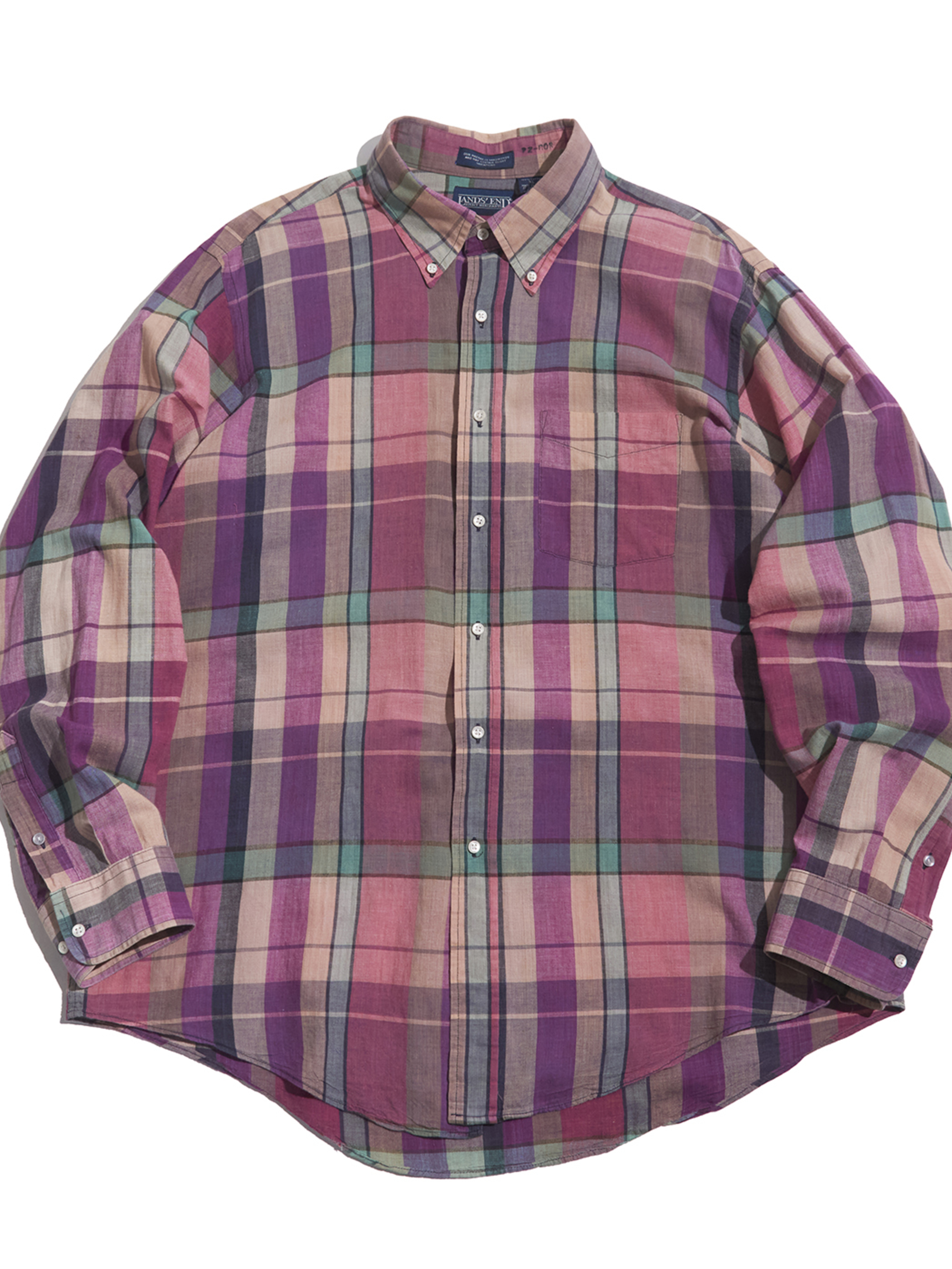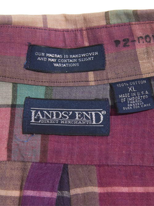 <4.23 UP> 1990s "LANDS' END" cotton madras check B.D. shirt -MIX PINK-
