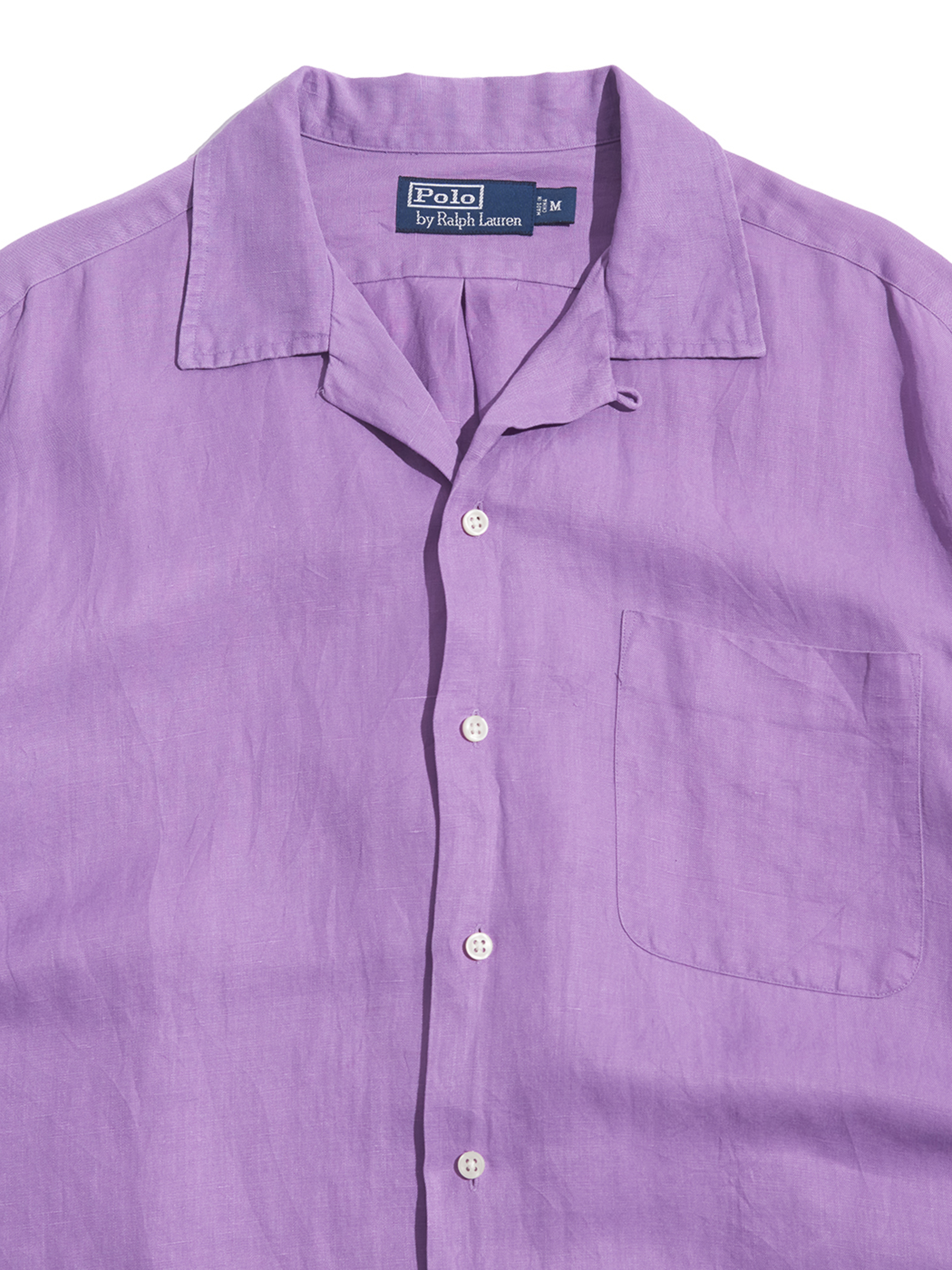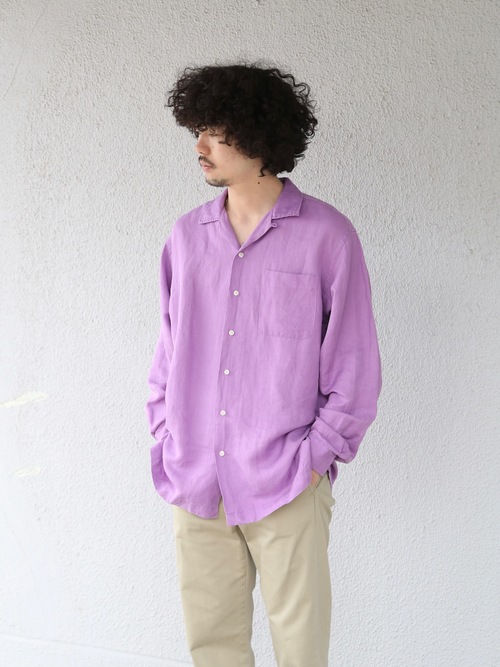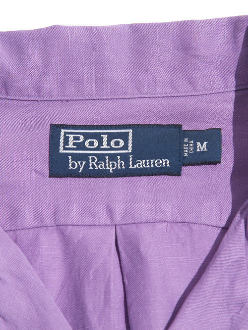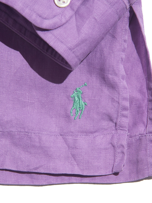 <4.27 UP> 1990s "Polo by Ralph Lauren" silk / linen open collar shirt -PURPLE-