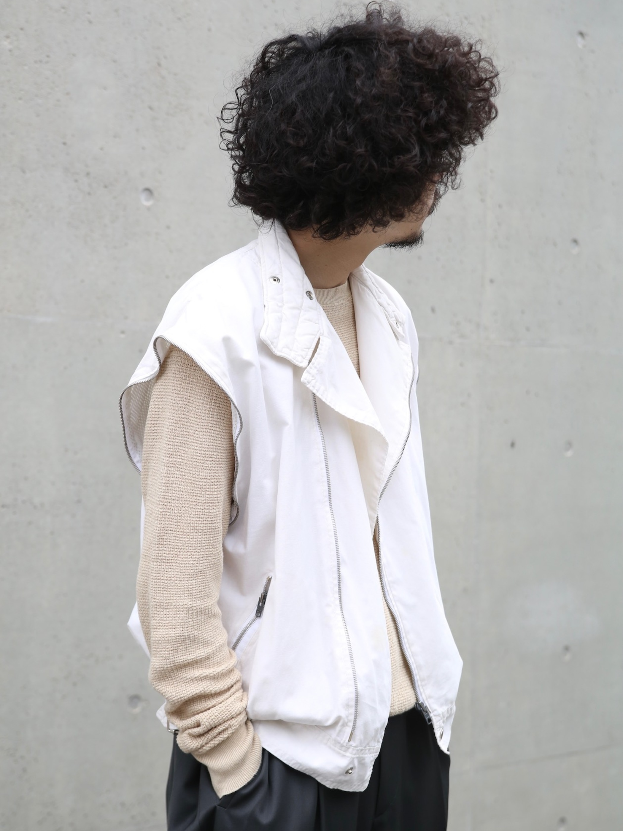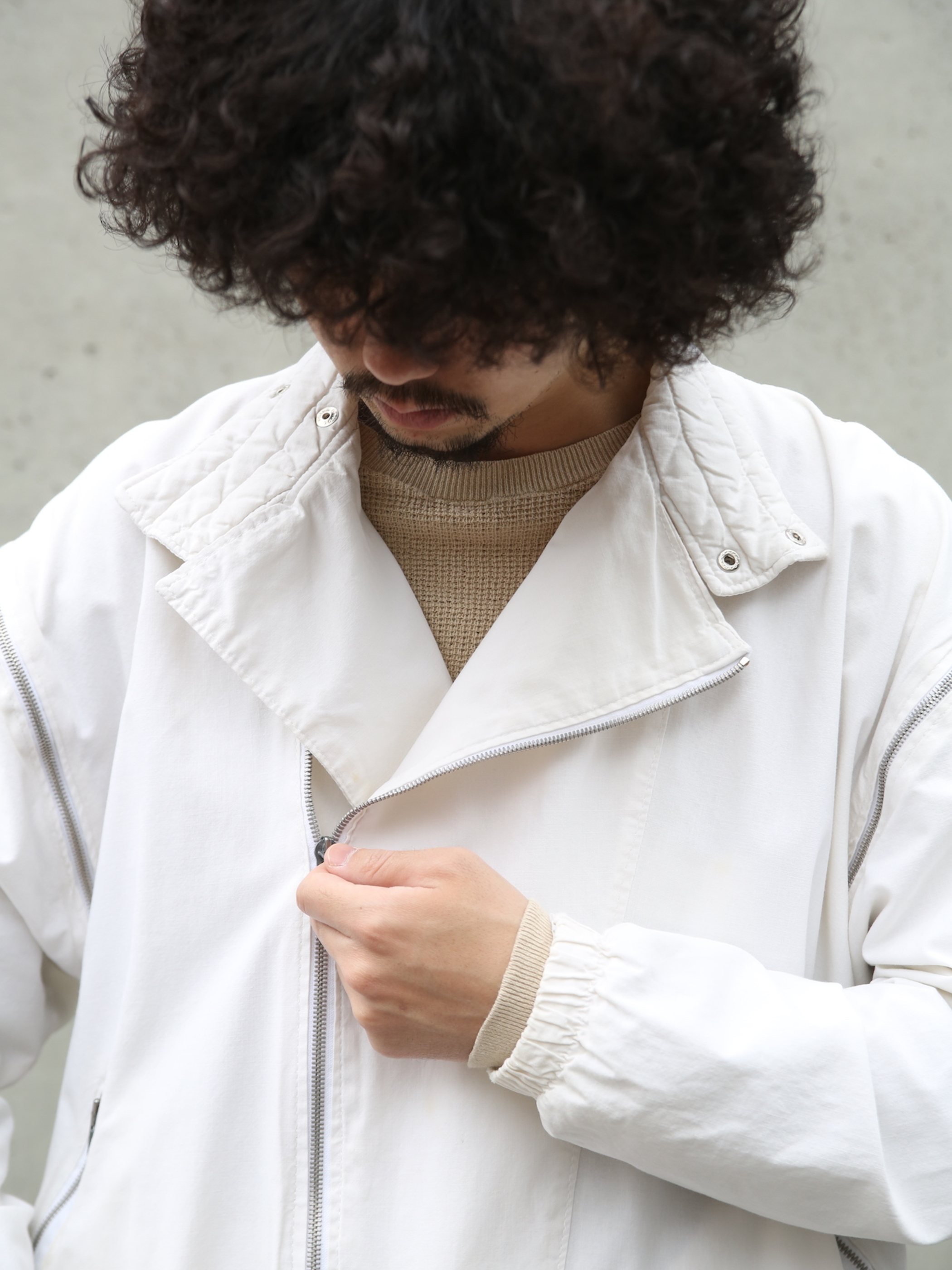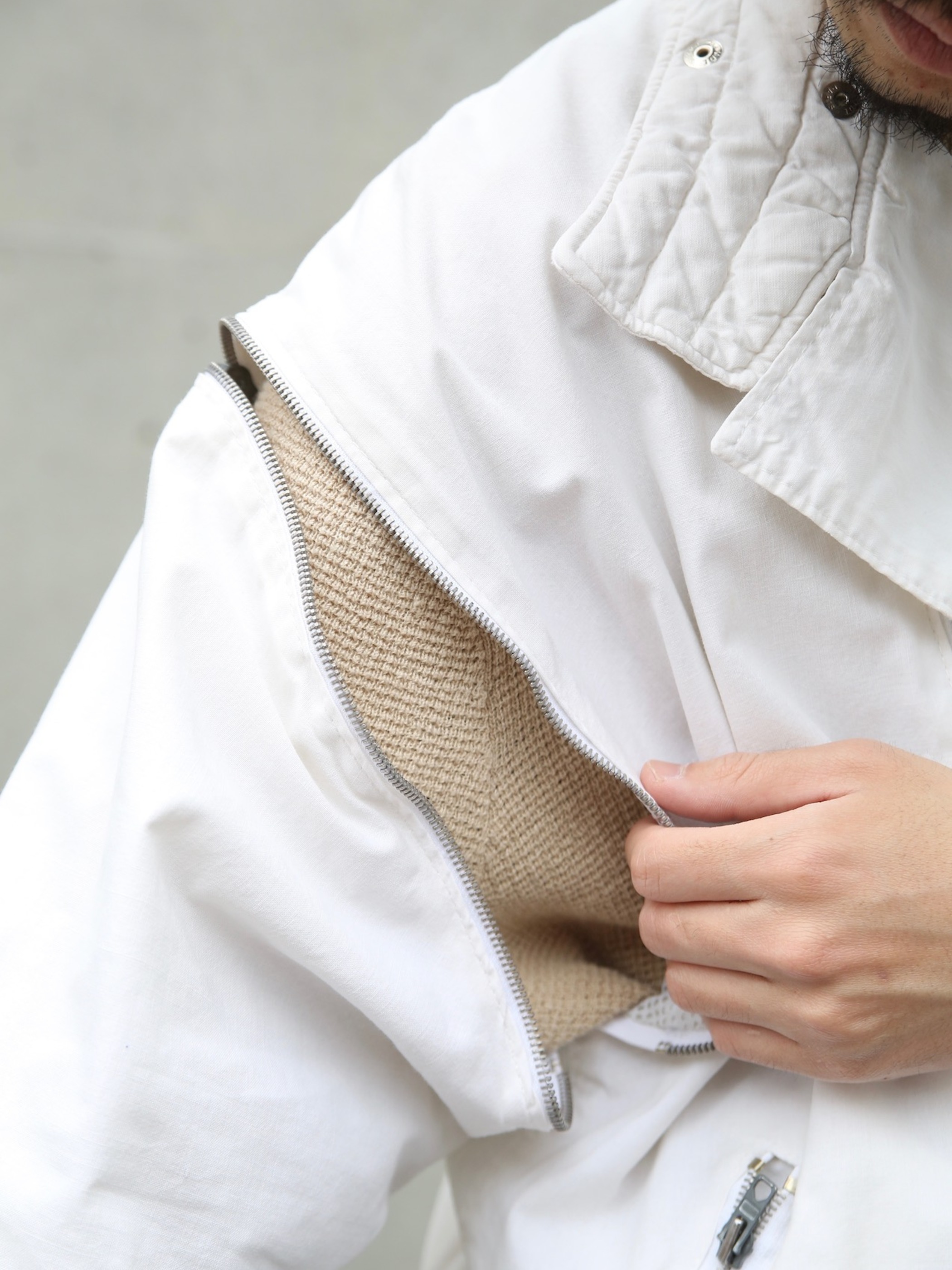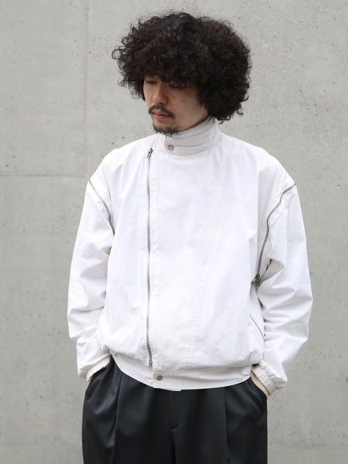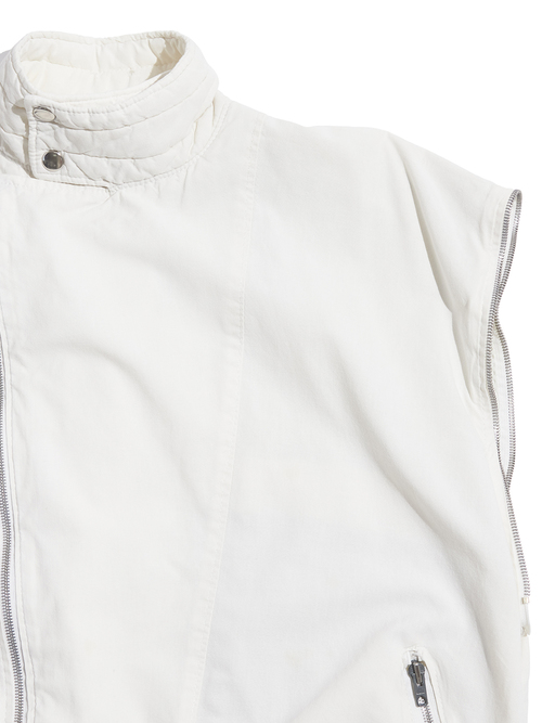<4.27 UP> 1980s "unknown" detachable sleeve cotton riders jacket -WHITE-