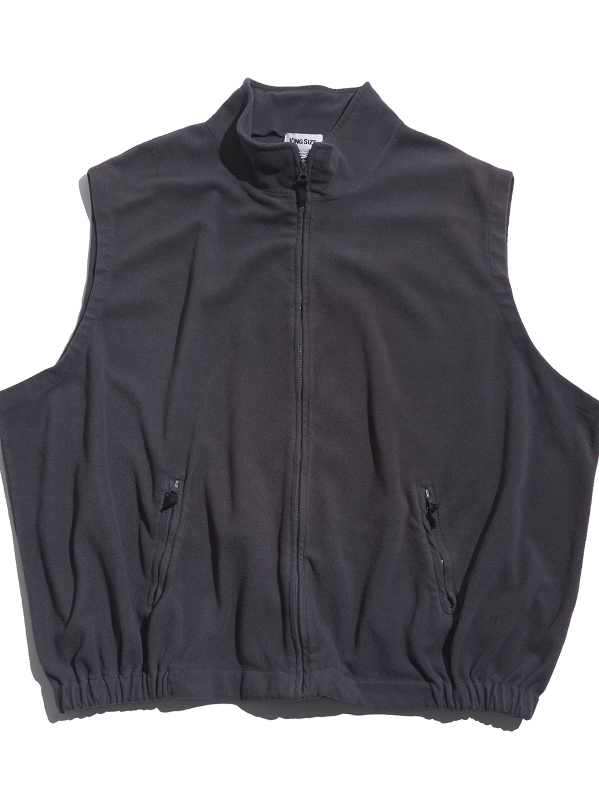 <1.28 UP> 2000s "KING SIZE" Too big size fleece zip up vest -CHARCOAL-