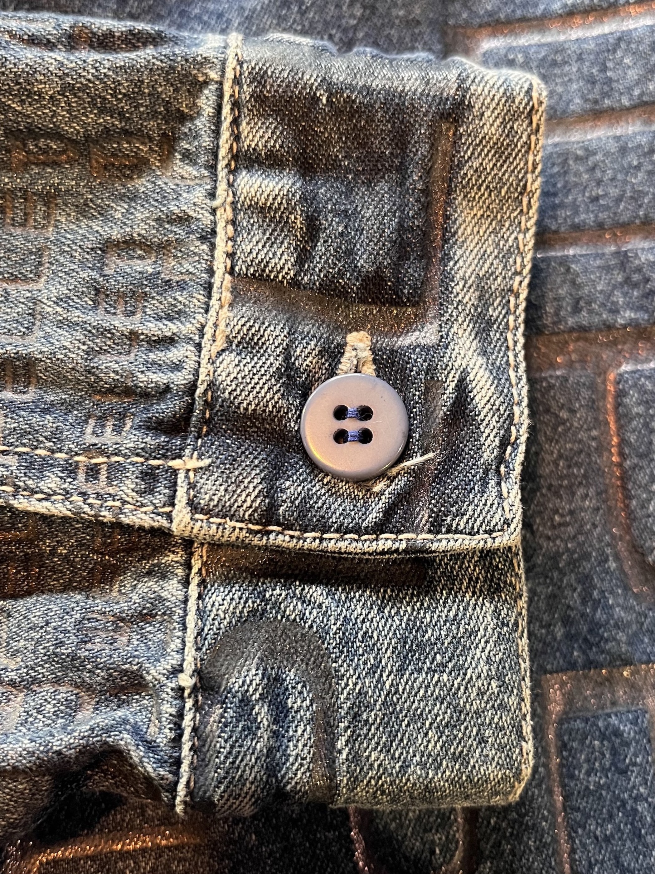 右袖のカフスボタンが欠損していた為、違うボタンで代替しております。