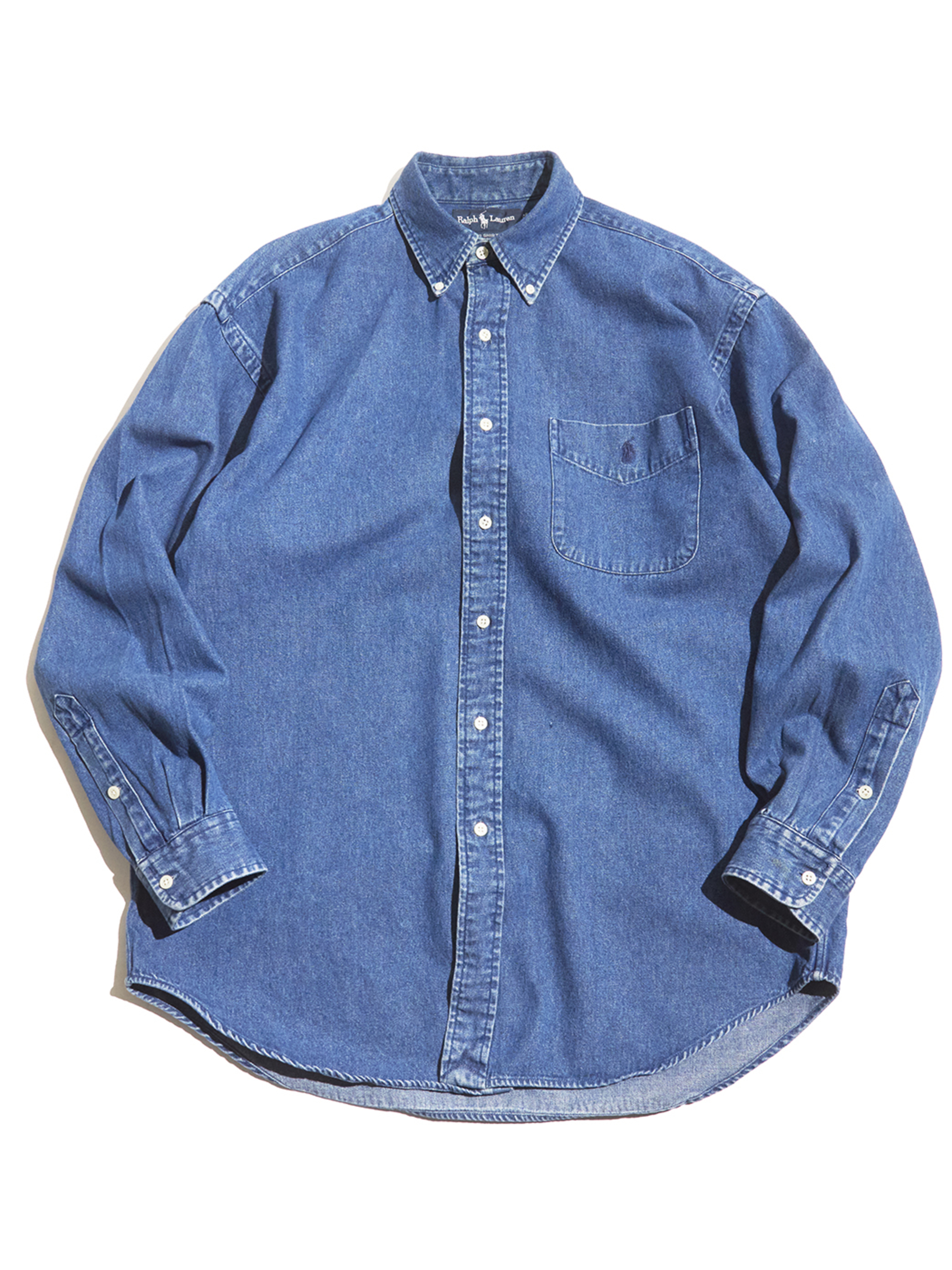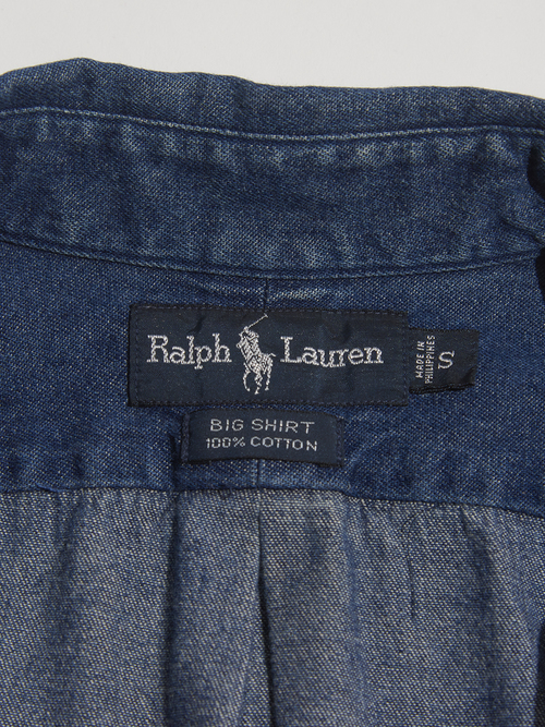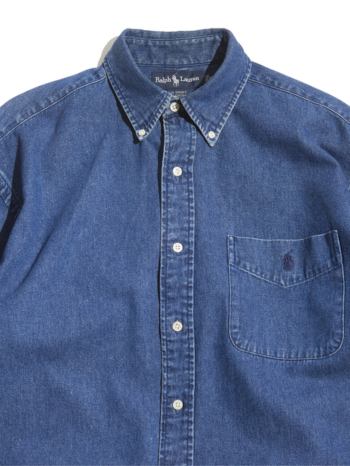 <SOLD OUT> 1990s "Ralph lauren" BIG SHIRT denim B.D shirt -LIGHT INDIGO-