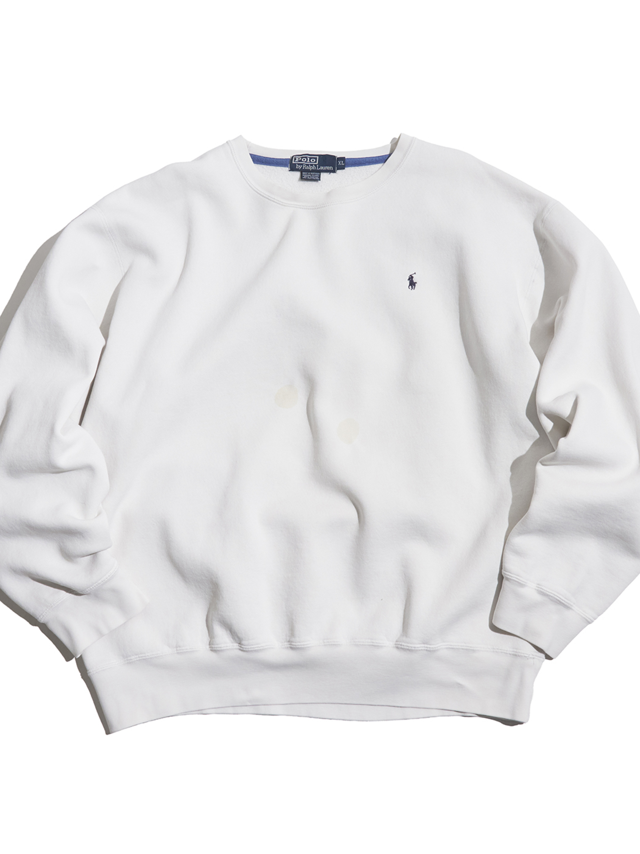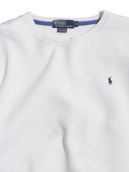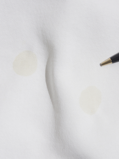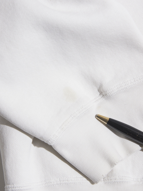 腹部付近や袖先付近にシミ汚れがございます。